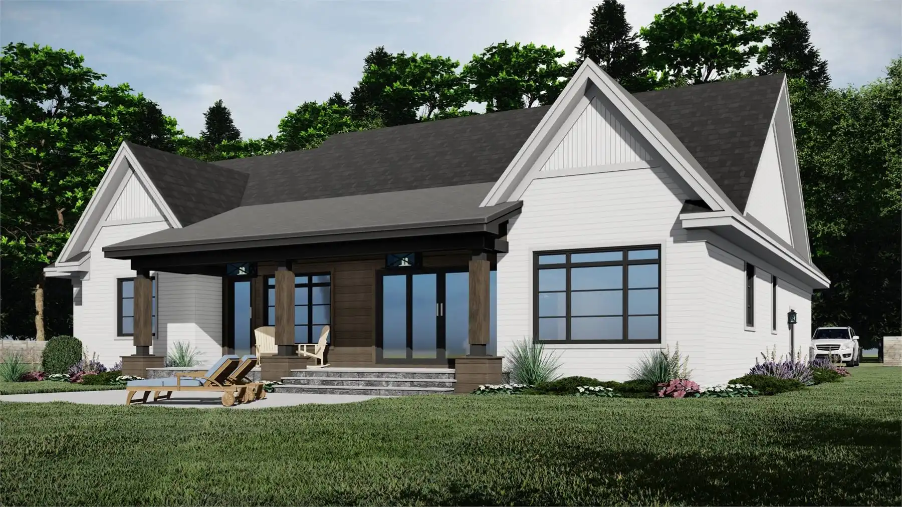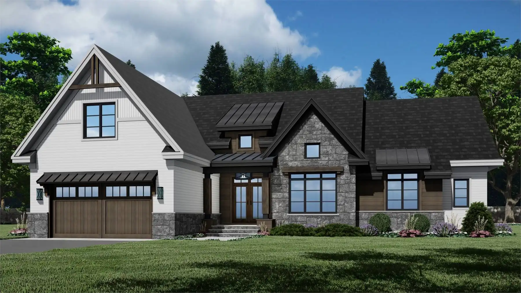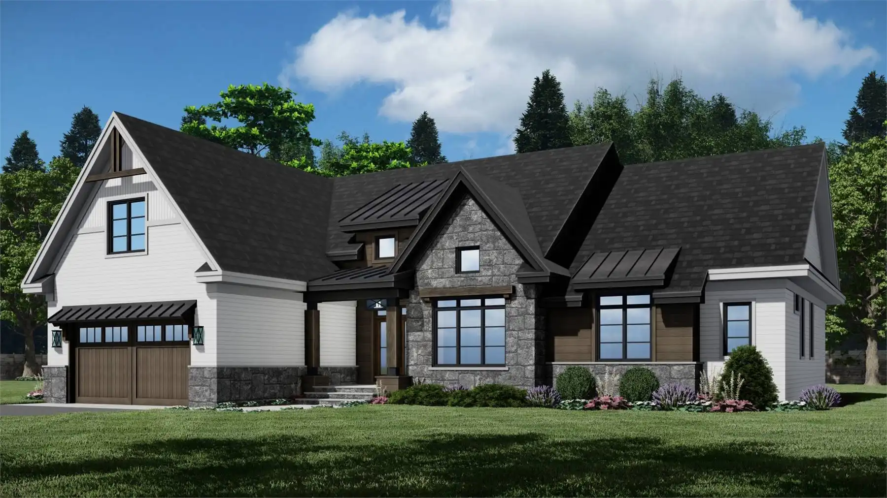 House Plan 10575 delivers effortless elegance and everyday functionality in a 2,277 square foot transitional farmhouse design. This one-story layout features an open-concept great room with a cozy fireplace, a spacious kitchen with a 5-seat island and walk-in pantry, and a formal dining area that makes entertaining a breeze. The private primary suite is a true retreat with a sitting area, access to the rear porch, a luxurious ensuite bath, and a large walk-in closet. Two additional bedrooms share a Jack and Jill bath, ideal for families or visiting guests. A front-facing home office, mudroom, and first-floor laundry add convenience, while the covered front and rear porches create beautiful outdoor living spaces. With a 2-car front-load garage and flexible bonus room, this home combines charm, comfort, and smart design.