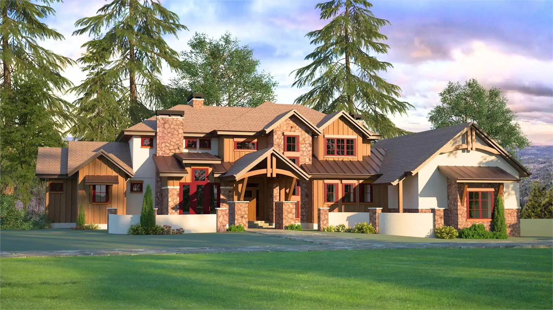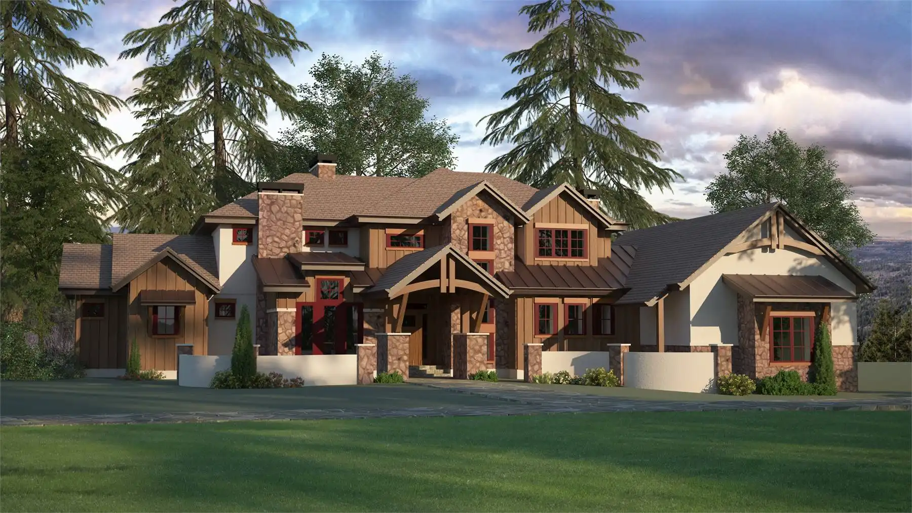 House Plan 10579 blends rugged charm with modern function in this 3,446 sq. ft. Craftsman design. The open-concept main floor includes a soaring vaulted great room, chef’s kitchen, and spacious dining area that leads to an expansive rear deck. The main-level primary suite boasts private outdoor access, a luxe ensuite bath, and dual walk-in closets. A quiet home office sits just off the foyer, perfect for remote work. The finished walkout basement adds two more bedrooms, a large rec room with a wet bar, and access to a lower-level patio. A 3-car angled garage completes the layout with both style and storage. Whether you’re entertaining or enjoying a peaceful mountain retreat, this home checks every box.
