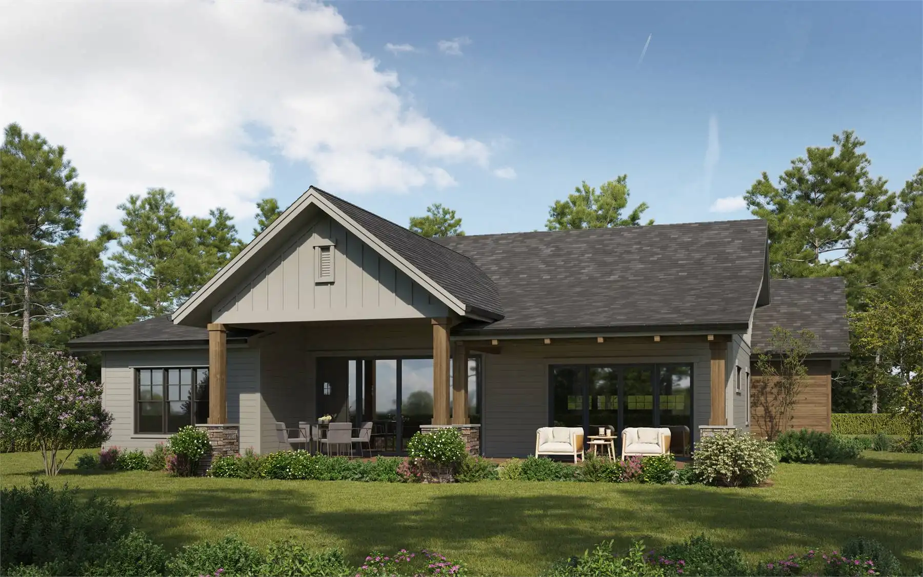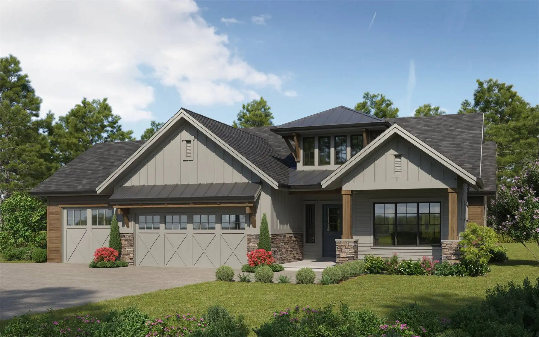 Need a lovely home for a neighborhood and a view lot? See if House Plan 10583 is the perfect fit! This lovely ranch offers 2,516 square feet with three bedrooms and two-and-a-half baths wrapped up in unique transitional curb appeal. Inside, you'll enjoy a split bedroom layout and open-concept living. Make sure to appreciate the size of the primary suite and how it connects to the laundry/mudroom through its walk-in closet! Ample deck space in back invites you to kick back and relax. If you're building on a sloped lot and would like more square footage, the daylight basement foundation option includes two more bedrooms, another bathroom, and rec/game space with a bar!