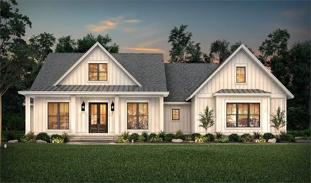 House Plan 10593 is a lovely country ranch with 2,188 square feet, three bedrooms, and two-and-a-half bathrooms. The spacious layout places the dining room beside the foyer while the U-shaped island kitchen overlooks the vaulted great room in back. The bedrooms are split across the common areas, with two bedrooms that share a four-piece hall bath behind the great room's fireplace while the primary suite is privately tucked away down the hall behind the kitchen along with the powder room, laundry room, and entry from the garage. The suite boasts a vaulted bedroom ceiling, a five-piece bath, and a large walk-in closet. But that's not all! The bonus room over the garage expands the possibilities with 471 square feet and another full bath!