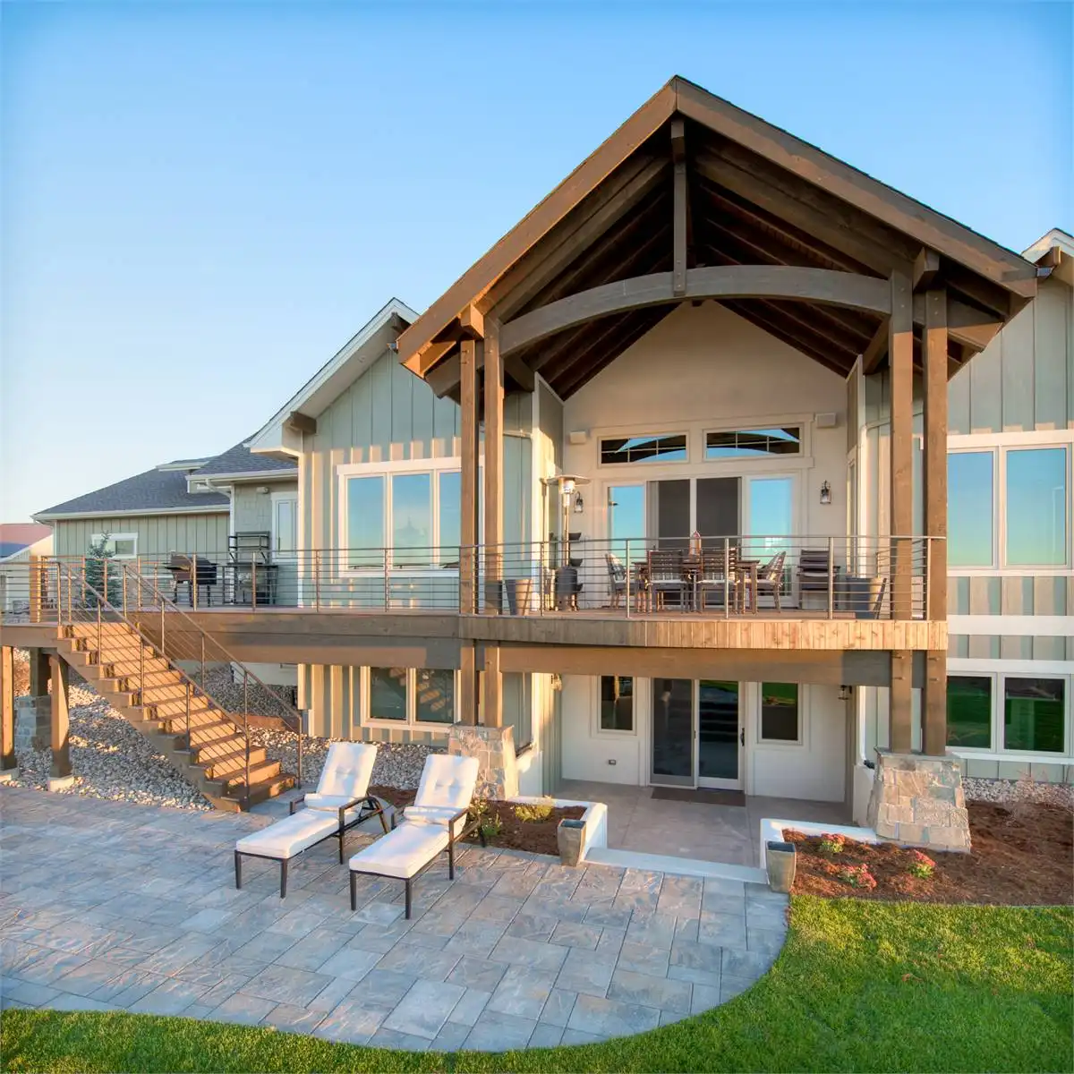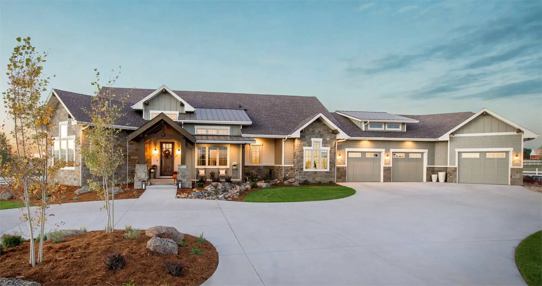 House Plan 10597 offers 2,611 square feet of refined living across a spacious single-story layout with 2 bedrooms, 2.5 baths, and a 3-car garage. A covered front entry welcomes you into a vaulted living area complete with fireplace and direct access to a covered deck. The open floor plan connects a generous dining area and a U-shaped kitchen featuring a huge island and walk-in pantry. The main floor includes a private den, a guest suite with ensuite, and a luxurious primary suite with an expansive bathroom and walk-in closet. Additional perks include a large mudroom, utility space, and a powder room. An optional walk-out basement expands the home with flexible living space, two extra bedrooms, and a patio—ideal for growing families or hosting.