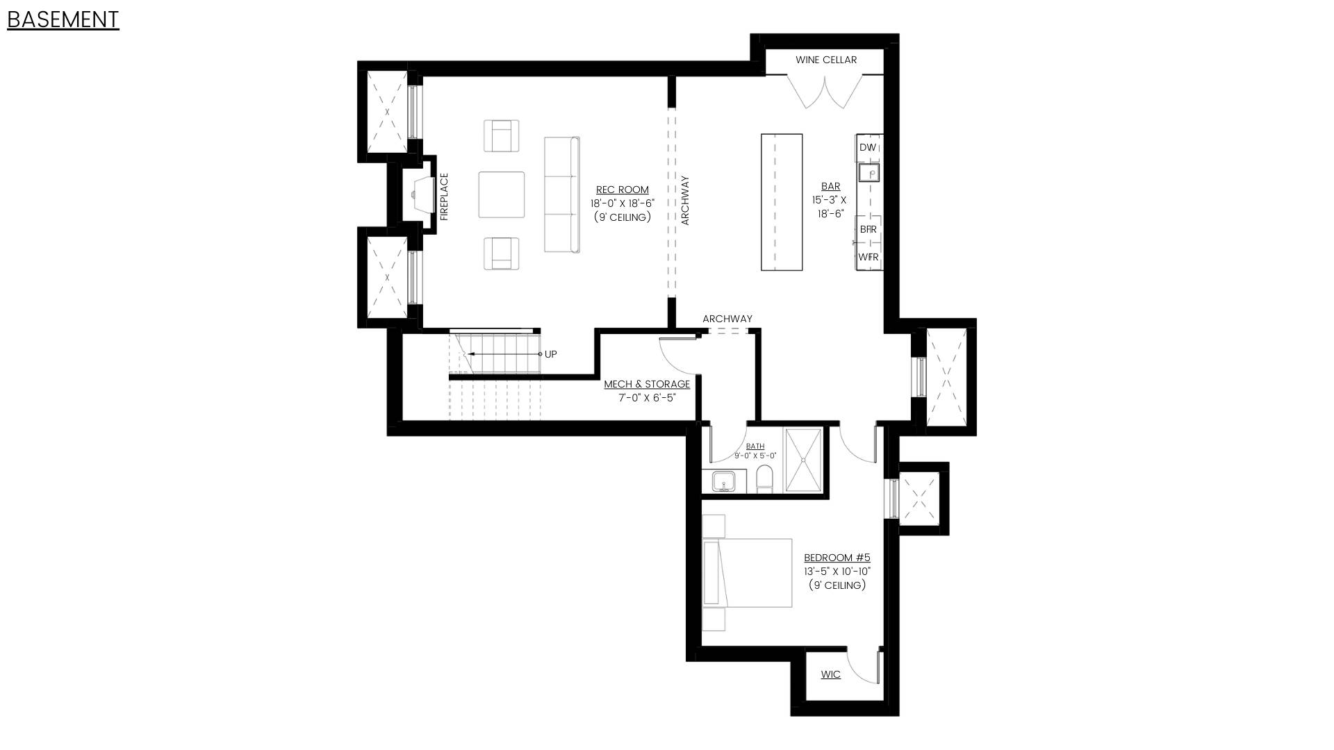 House Plan 10605 is a charming 2-story country home with 2,931 square feet of thoughtfully designed space. A grand two-story foyer sets the tone upon entry, leading to a private den or study just off the front. The heart of the home features an open-concept layout with a cozy living room and fireplace, spacious dining area, and a large kitchen complete with a generous island and a walk-in butler’s pantry — all with easy access to the expansive rear patio, perfect for entertaining. Upstairs, four bedrooms each offer walk-in closets, including a relaxing primary suite with a spa-style ensuite that includes a soaker tub and separate shower. A second-floor laundry room adds everyday convenience. Need more space? An optional basement adds a fifth bedroom, rec room, and a stylish bar area to complete this versatile family home.