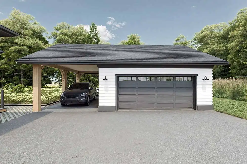 Plan 10613 is a detached garage perfect for adding more parking to your home. It parks two in the naturally bright garage while one carport space on the side can keep another vehicle handy. This design has simple style from the front, but you'll love the crafty touches on the sides!