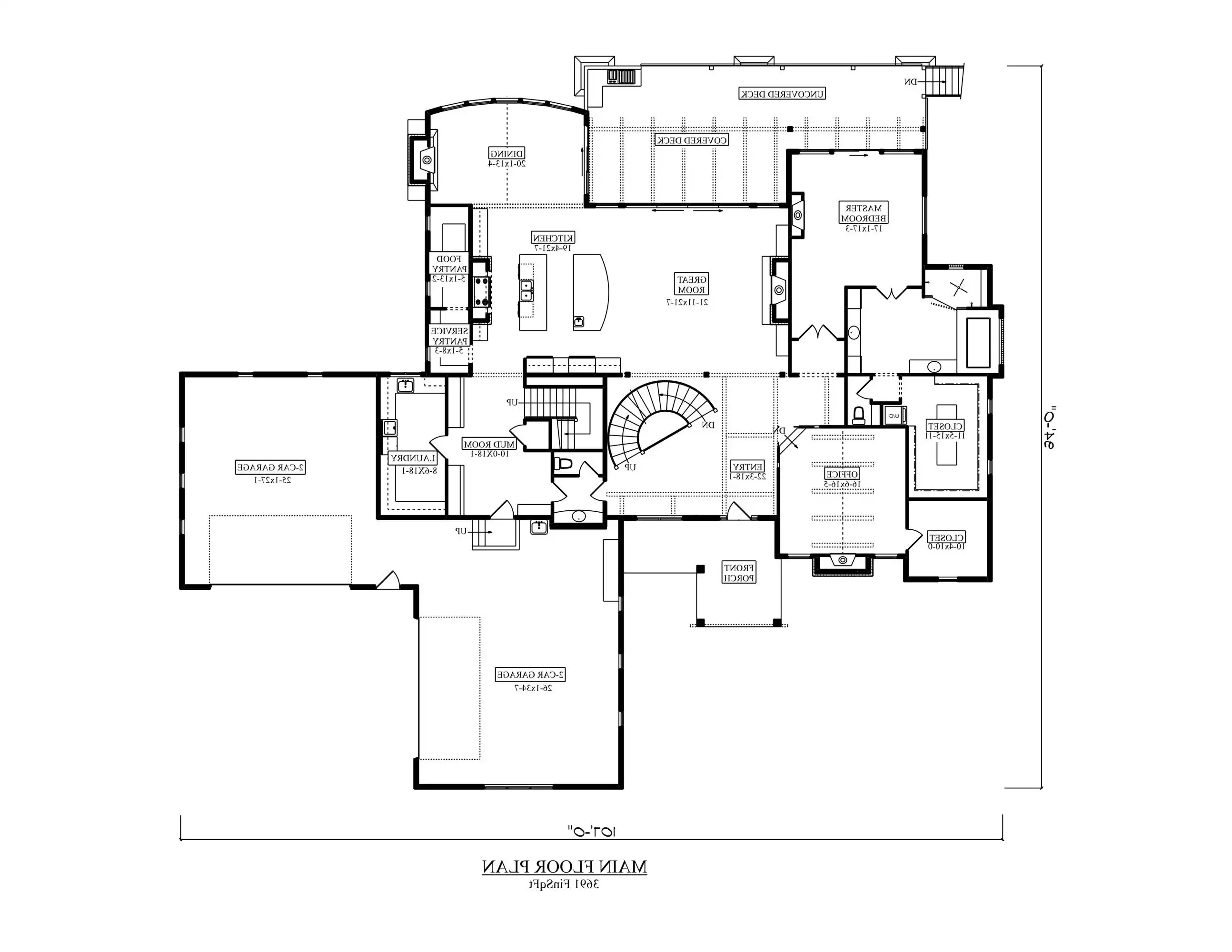 House Plan 10618 offers 5,002 square feet of refined living with 4 bedrooms, 3.5 baths, and a split 4-car courtyard garage. The covered front entry opens to a grand spiral staircase and leads into an airy, open-concept design. Highlights include a two-story great room, a chef’s kitchen with double islands and a large walk-in pantry, and a stunning window-lined dining area. The main-level primary suite impresses with outdoor access, a luxurious ensuite, and a massive walk-in closet, while three spacious bedrooms upstairs provide comfort and flexibility for family or guests.