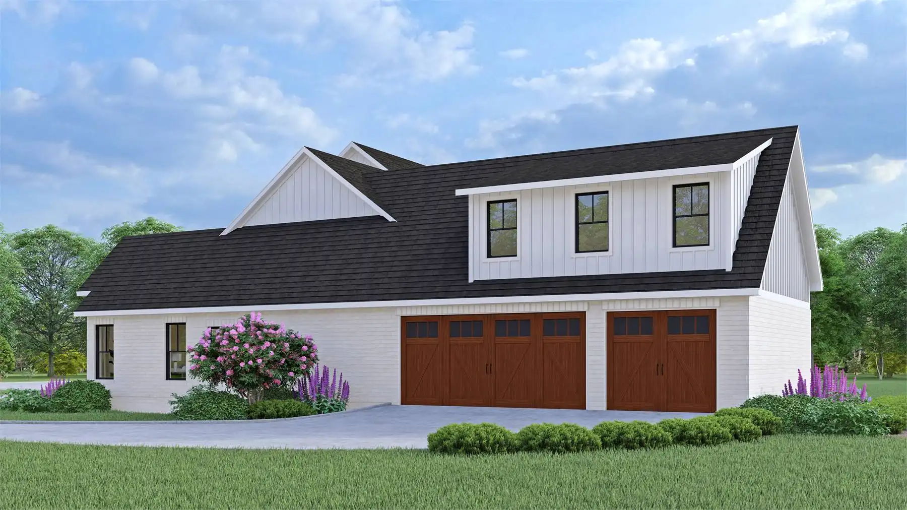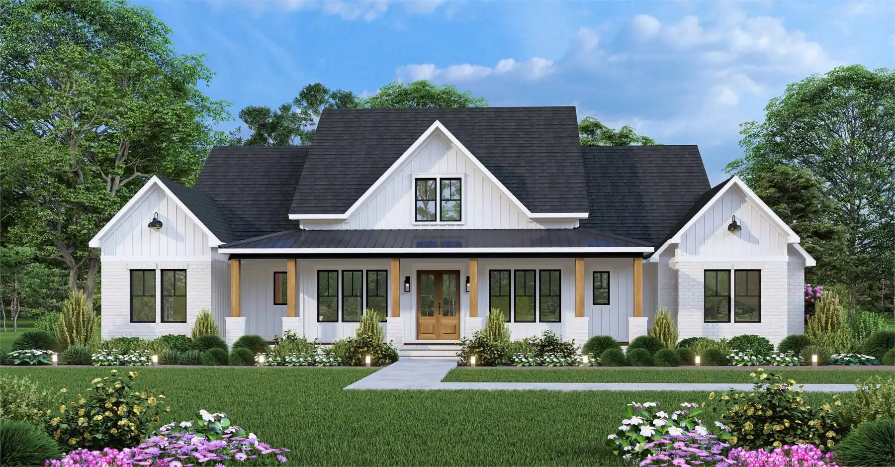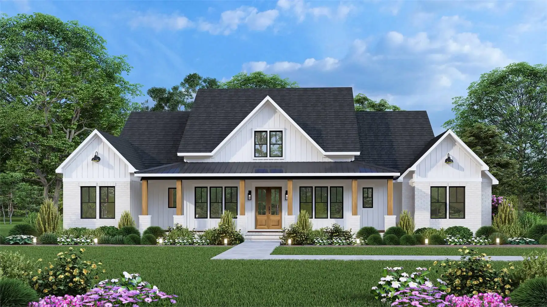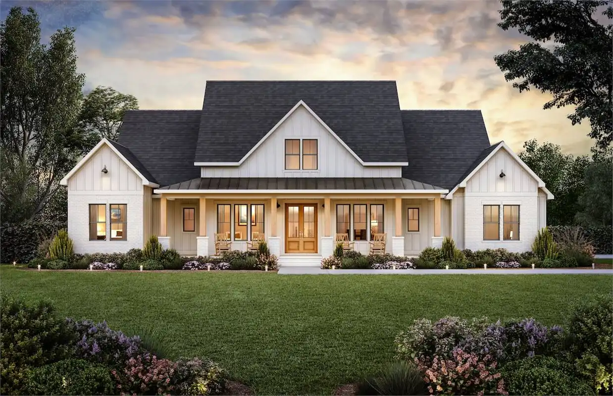 Looking for a spacious Modern Farmhouse that can accommodate a large family? Look no further than the Black Creek 2! This family-friendly design offers 4 bedrooms and 3 1/2 bathrooms, all with an understated elegance that will make you feel right at home. The open-concept floor plan features a large family room with a vaulted ceiling and fireplace, a beautiful gourmet kitchen with an expansive walk-in pantry, a formal dining room, an office, and 3 generously sized secondary bedrooms. You'll also love the wonderful outdoor space complete with its own cozy fireplace - the perfect place to celebrate any occasion and make memories with your loved ones.