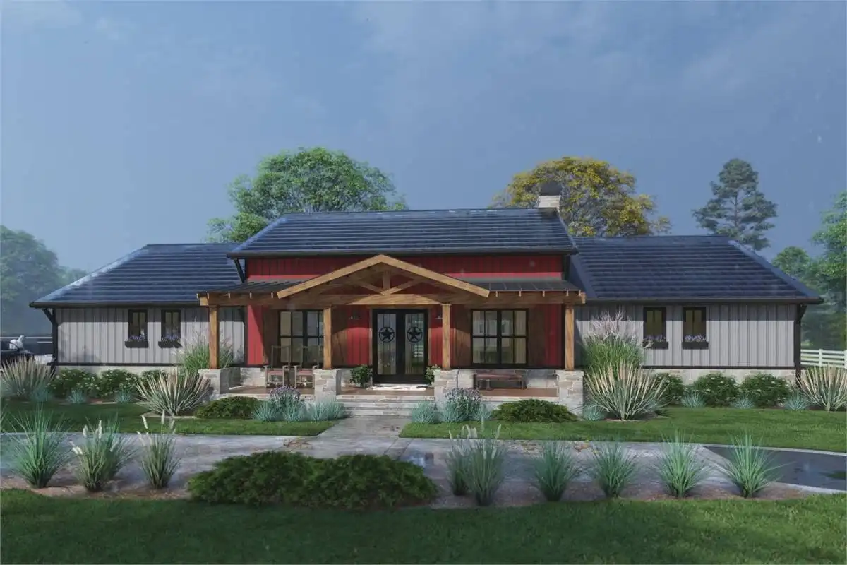 Featuring the utmost style and durability, this modern farmhouse is made to withstand the test of time! Offering 2,400 square feet of space all within a single accessible level, the stylish design provides 3 bedrooms, 2.5 bathrooms, and tons of other amazing features. While each bedroom has its own walk-in closet for added convenience, you'll definitely want to pay special attention to the master suite. Beyond having a stunning resort-style bath, it also has a huge walk-in closet of its own, complete with a hidden safe room for protecting you and your family. And speaking of protection, this home also has a full metal-framed design meaning that it is ready for anything. Even in the midst of all this the home still manages to be so beautiful. From the cathedral ceilings and natural light that floods the living room and kitchen to the covered front and back decks that make outdoor living a dream come true, there isn't anything that hasn't been thought of!