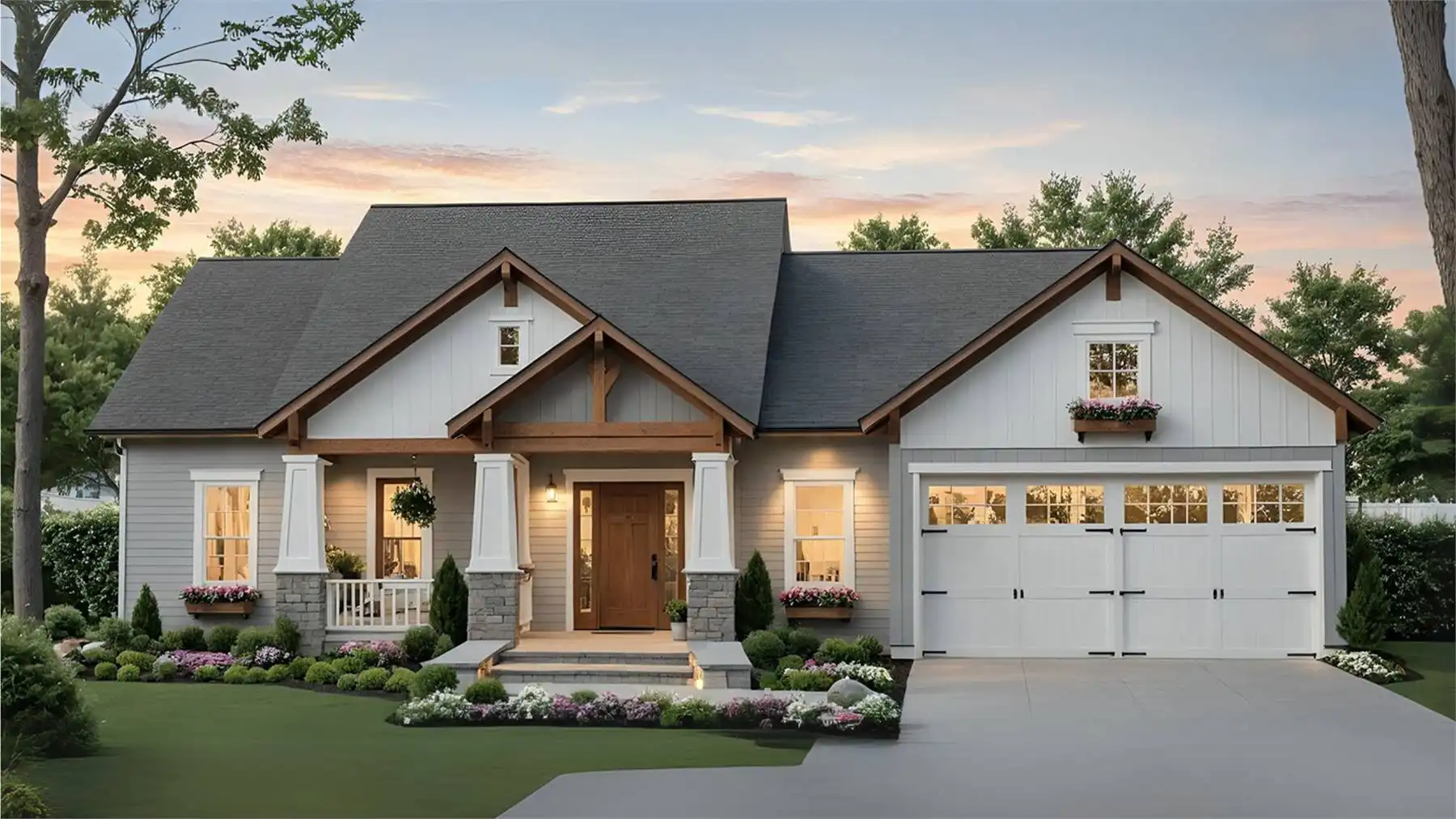 House Plan 10658 offers 1,509 square feet of single-level living with a layout designed for comfort and style. The vaulted great room with a fireplace creates a spacious yet cozy heart of the home, while the separate kitchen provides ample counter space and functionality. A dedicated dining area opens to a covered rear porch, perfect for enjoying meals outdoors or hosting gatherings. Two secondary bedrooms and a full bathroom are located on the right side of the home. The left side is dedicated to the primary suite, where you'll find tray ceilings, two walk-in closets, and a luxurious ensuite with a separate soaking tub and shower. A covered front porch adds charm, and the two-car garage ensures convenience and storage.