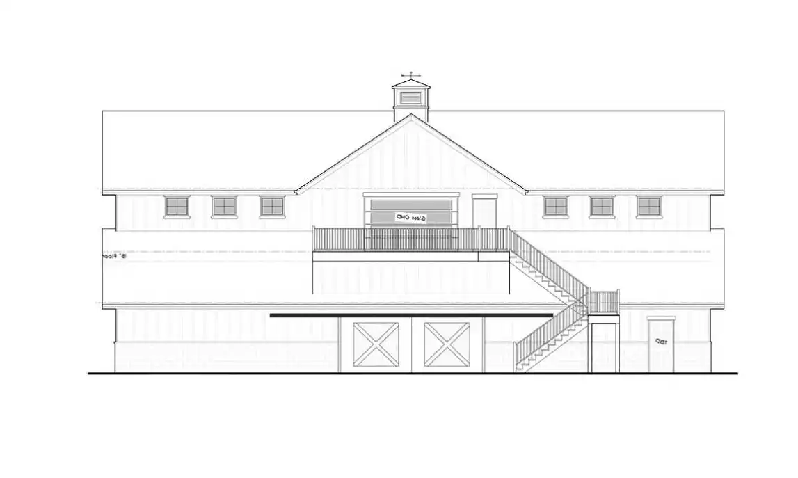 If you're looking for a barn to complete your property, check this one out! Plan 10674 is a super spacious barn for all your storage needs. It has a 4,575-square-foot main level with sliding barn doors on two sides and a 1,950-square-foot bonus above with an overhead door.