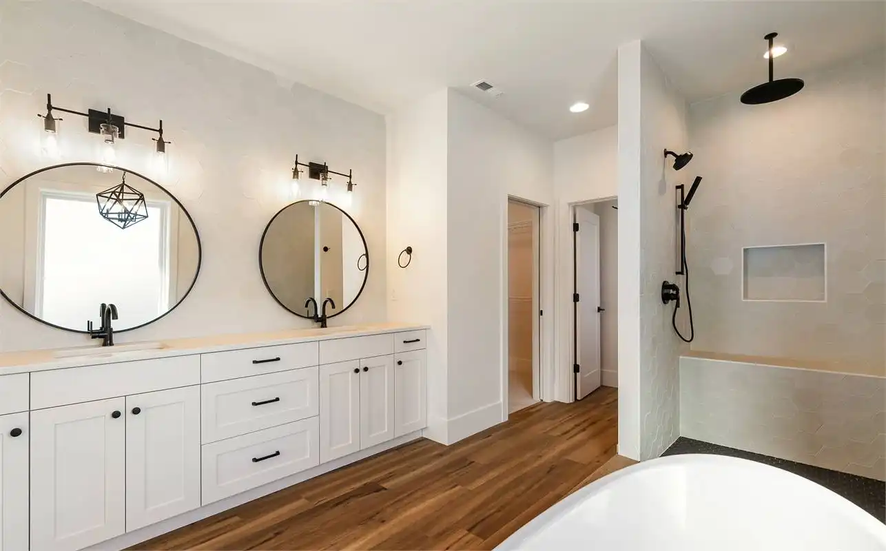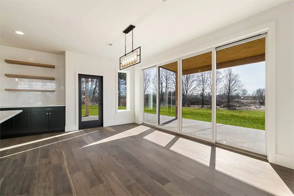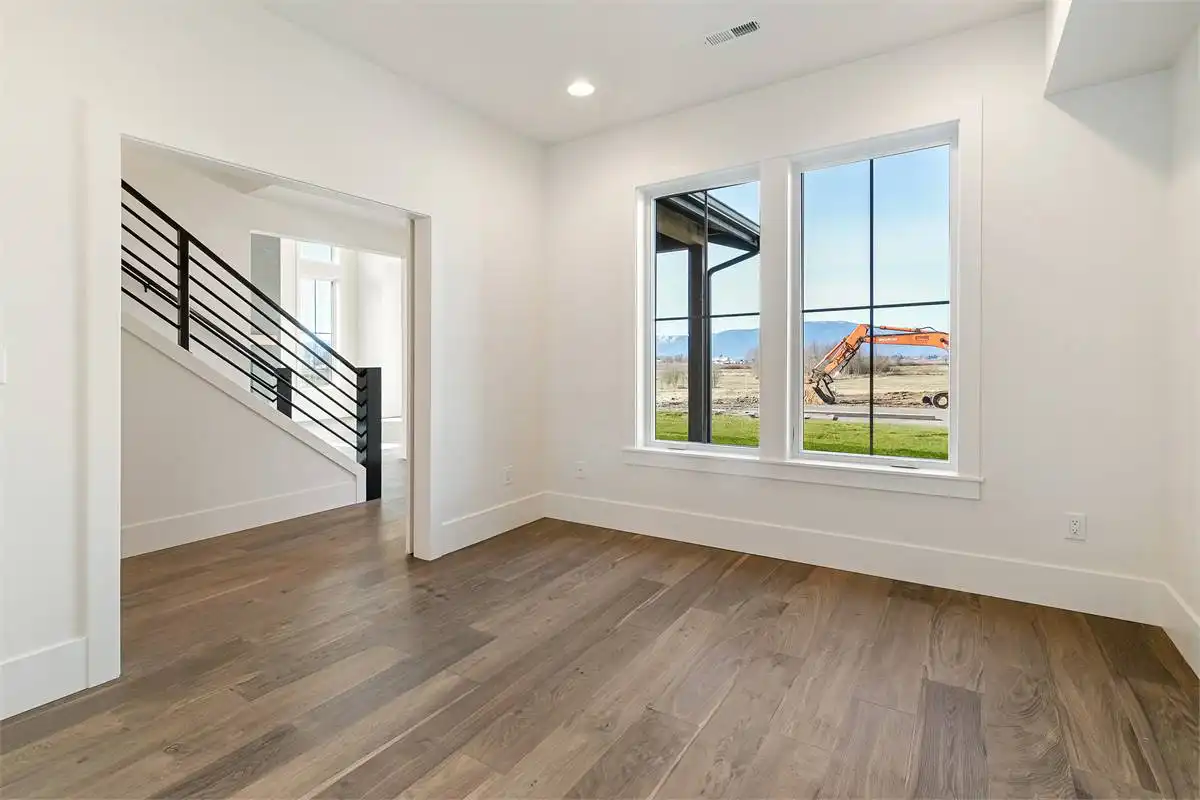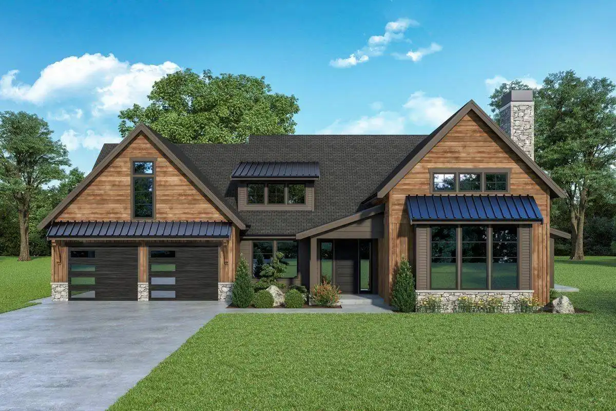 This Craftsman home merges modern amenities with rustic appeal that spans 3,279 square feet. The open layout connects the kitchen, dining, and two story great room, delivering seamless flow and a welcoming ambiance. The primary suite is secluded, boasting a large walk-in closet and an en-suite bathroom complete with a deluxe shower and a lavish soaking tub. Upstairs, two sizable bedrooms share a full bathroom. A den with large barn doors offer a versatile area suitable for a home office or guest bedroom.
