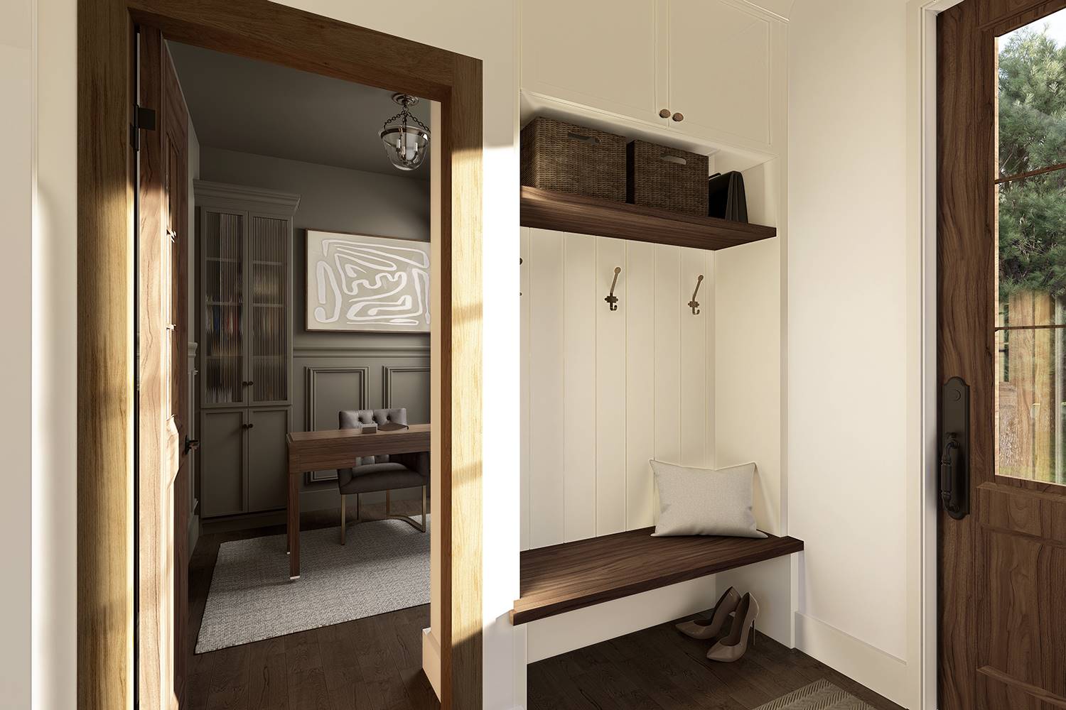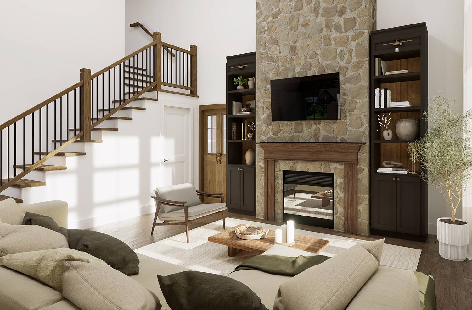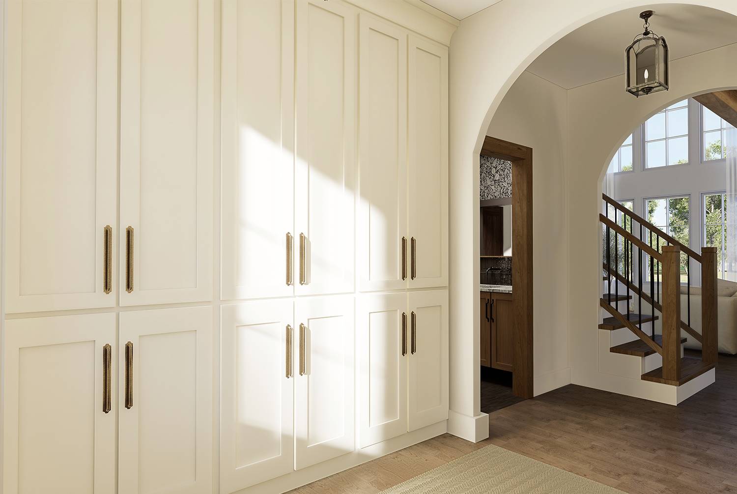 Designed for both beauty and livability, this home features 2,268 square feet of heated space with 3 bedrooms and 2.5 baths. An open main level connects the family room and dining space to a bright kitchen equipped with an island, breakfast nook, butler’s pantry, and generous walk-in pantry storage. The main-floor primary suite serves as a peaceful retreat with a sitting area, dual walk-in closets, and a well-appointed bath featuring a separate tub and shower. Arched openings and a two-story volume ceiling add character and openness to the central living areas. Secondary bedrooms are located upstairs, offering comfortable separation for family or guests. Outdoor living is a standout feature with a wraparound porch complemented by covered front and rear porches that extend the living space beyond the walls. Thoughtful details such as a home office, mud room, and first-floor laundry make this home as practical as it is inviting.
