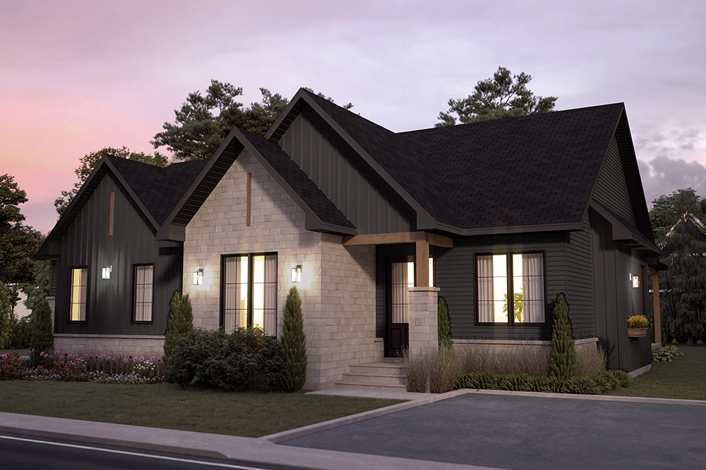 Take a look at House Plan 10693 if you need an amazing modern farmhouse for multigenerational living! This 2,238-square-foot ranch offers three bedrooms and two bathrooms in total, split between two units of 1,478 and 760 square feet. The main unit has a lovely kitchen and dining setup with an island with bar seating, a built-in dinette nook, and room for a dining table. The cozy living area invites you back with a fireplace and connection to the back covered terrace. The bedrooms are split in front and back, with the front hallway hosting a bedroom, the laundry room, and access to the five-piece bath that the primary bedroom in back enjoys direct access to. The secondary unit places its bedroom and bathroom in front while the eat-in kitchen is open to the living area in back. The units have exterior access on the front and left sides, plus they connect through the front hallway!