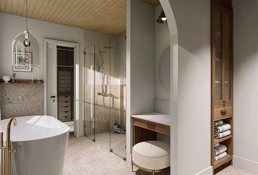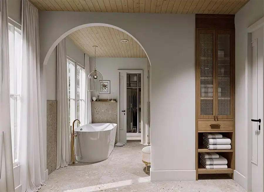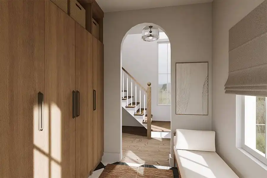 With 1,736 square feet of heated space, this inviting home blends smart planning with comfortable family living. The open main level brings together the family room, dining space, and kitchen, highlighted by a functional island and walk-in pantry. Architectural arches add subtle character while maintaining an open, airy feel throughout the living areas. A home office on the main floor offers a quiet workspace, while the mud room helps keep daily routines organized. Upstairs, the primary suite features his and hers walk-in closets and a spacious bath with a separate tub and shower and double vanity sinks. Additional bedrooms are conveniently located nearby, creating a cohesive and family-friendly layout. Finished with a covered front porch and an attached garage, this home delivers everyday comfort with lasting appeal.