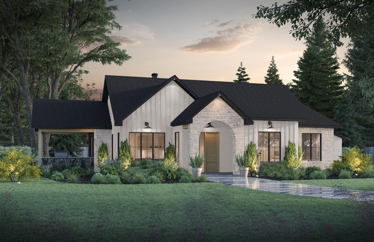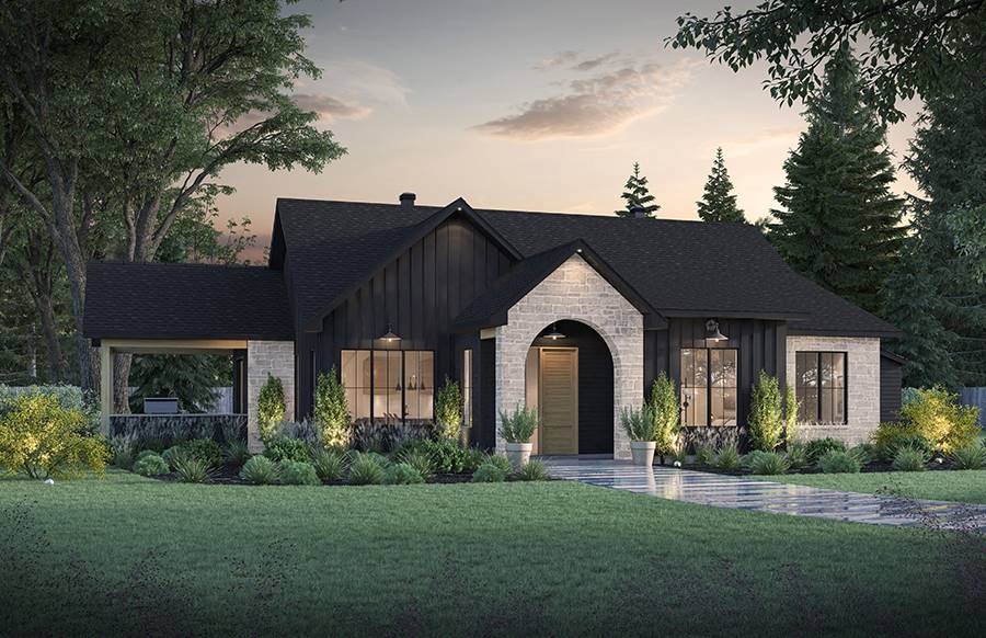 Check out House Plan 10697 if you need a wonderful one-story cottage with a thoughtful interior. This transitional home offers 1,676 square feet with three bedrooms and two bathrooms. The traditionally-inspired layout places the common areas on one side and the sleeping quarters on the other. The great room stands out with a stunning cathedral vaulted living space open to the eat-in kitchen with its own dinette. Plus, it connects to the terrace with the outdoor kitchen! The hallway on the side places two bedrooms in front, a bathroom across the hall, and the luxe five-piece primary suite with a vaulted bedroom in back. The laundry is centrally located but conveniently connects to the suite's walk-in closet, too!