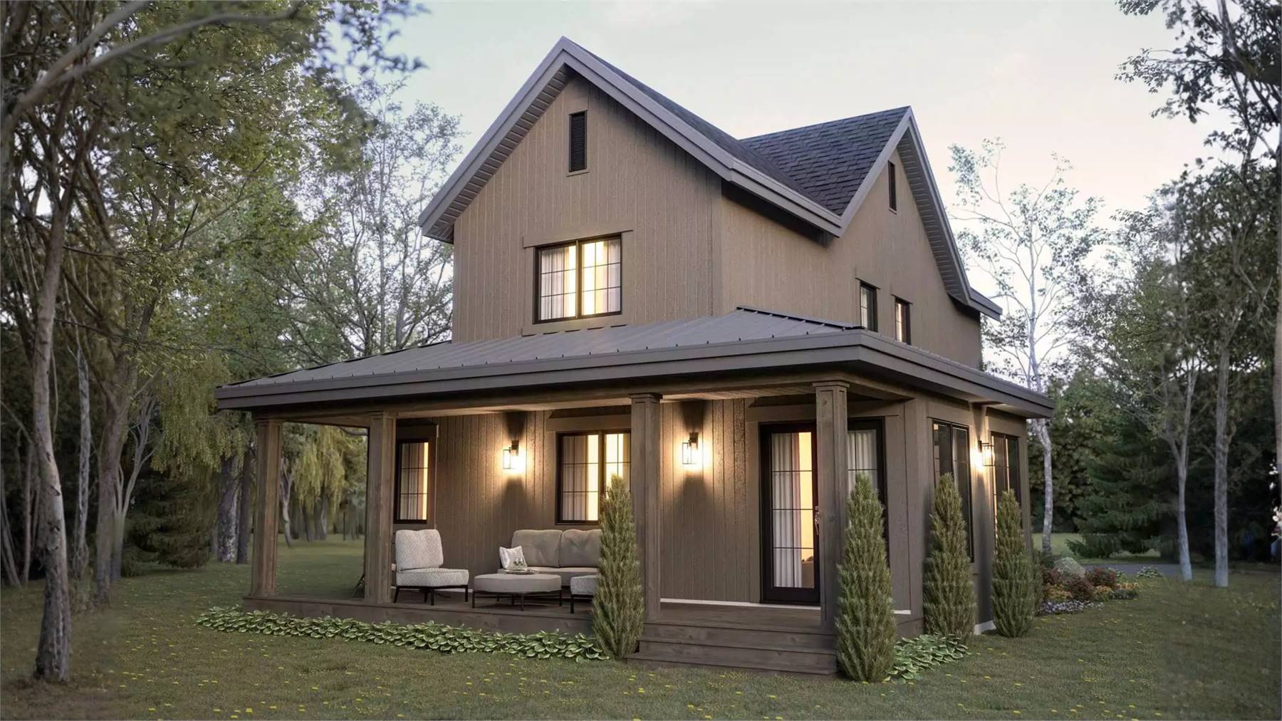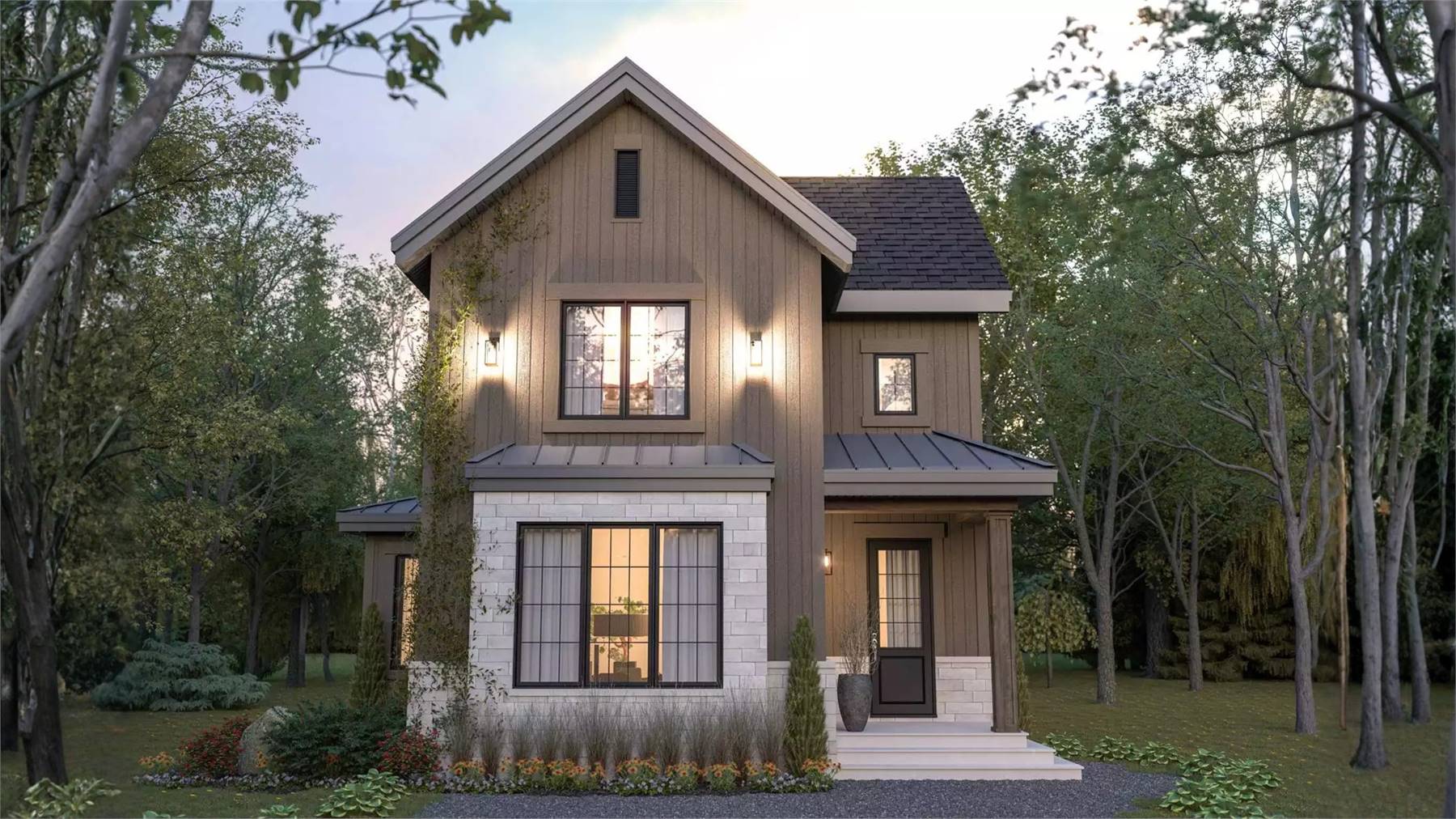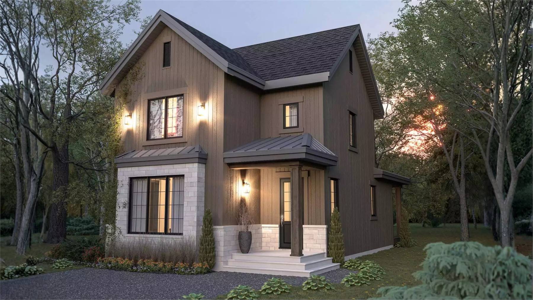 Designed for comfortable family living, this 1,864 square foot home blends function and warmth in a compact yet open layout. The main level centers around a spacious family room that flows naturally into the dining area and kitchen, creating an ideal setting for gathering and entertaining. The kitchen includes a generous island, walk-in pantry, butler’s pantry, and a country-style layout that emphasizes both charm and usability. A foyer with graceful arches welcomes guests, while the mud room and first-floor laundry help keep daily routines organized. Upstairs, the primary suite features a relaxing sitting area, walk-in closet, and a well-appointed bath with a separate tub and shower. Secondary bedrooms are thoughtfully placed nearby for convenience. Finished with a covered front porch, this home offers a warm and inviting design that feels comfortable from the moment you arrive.