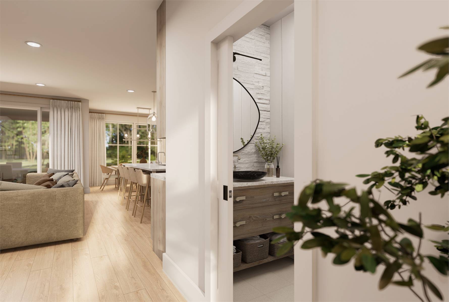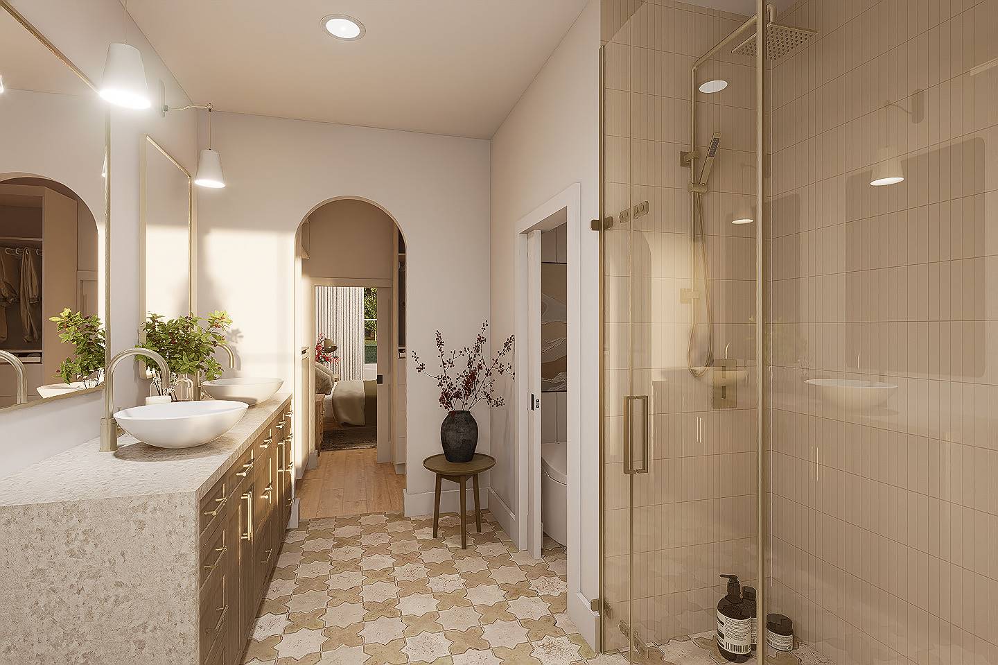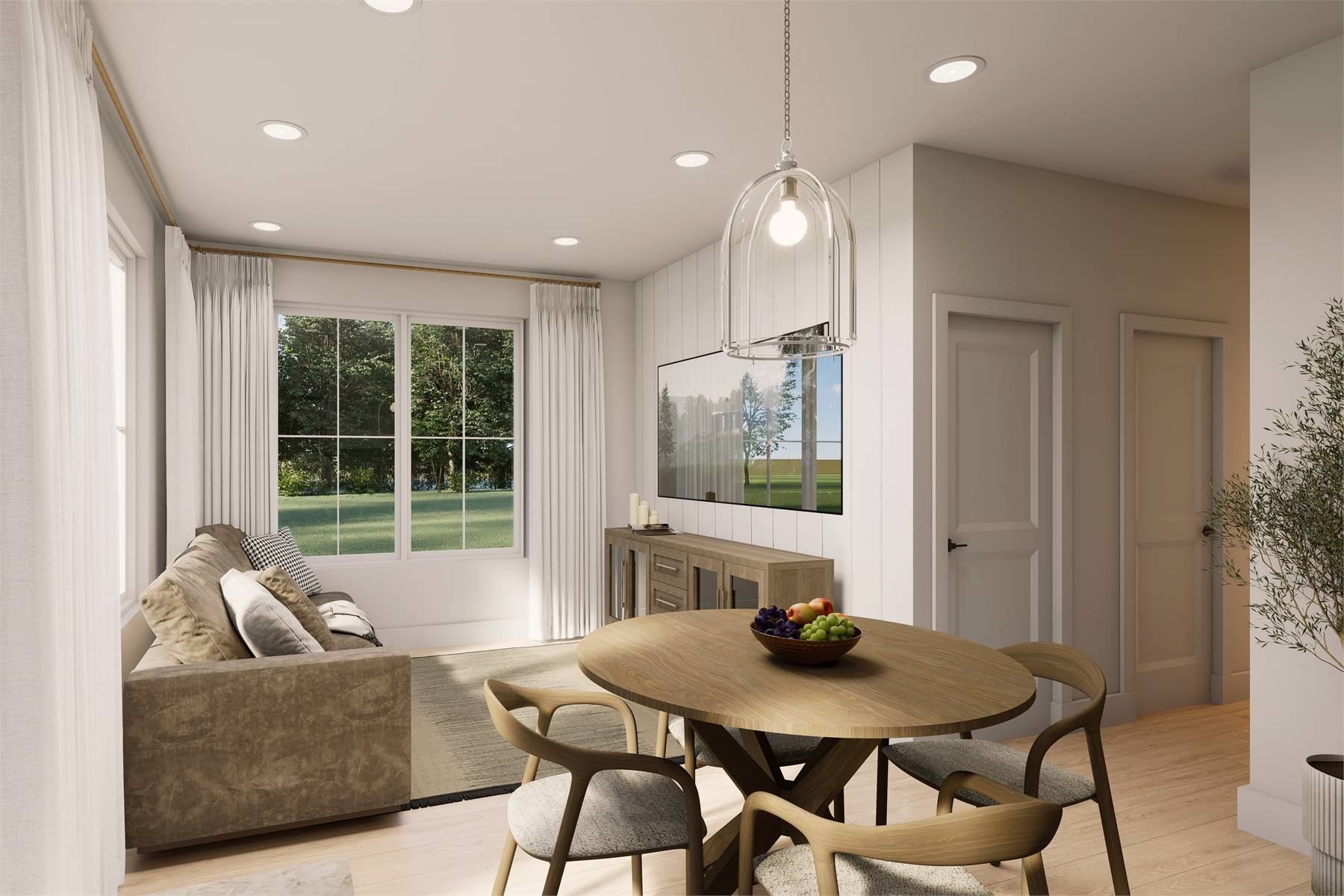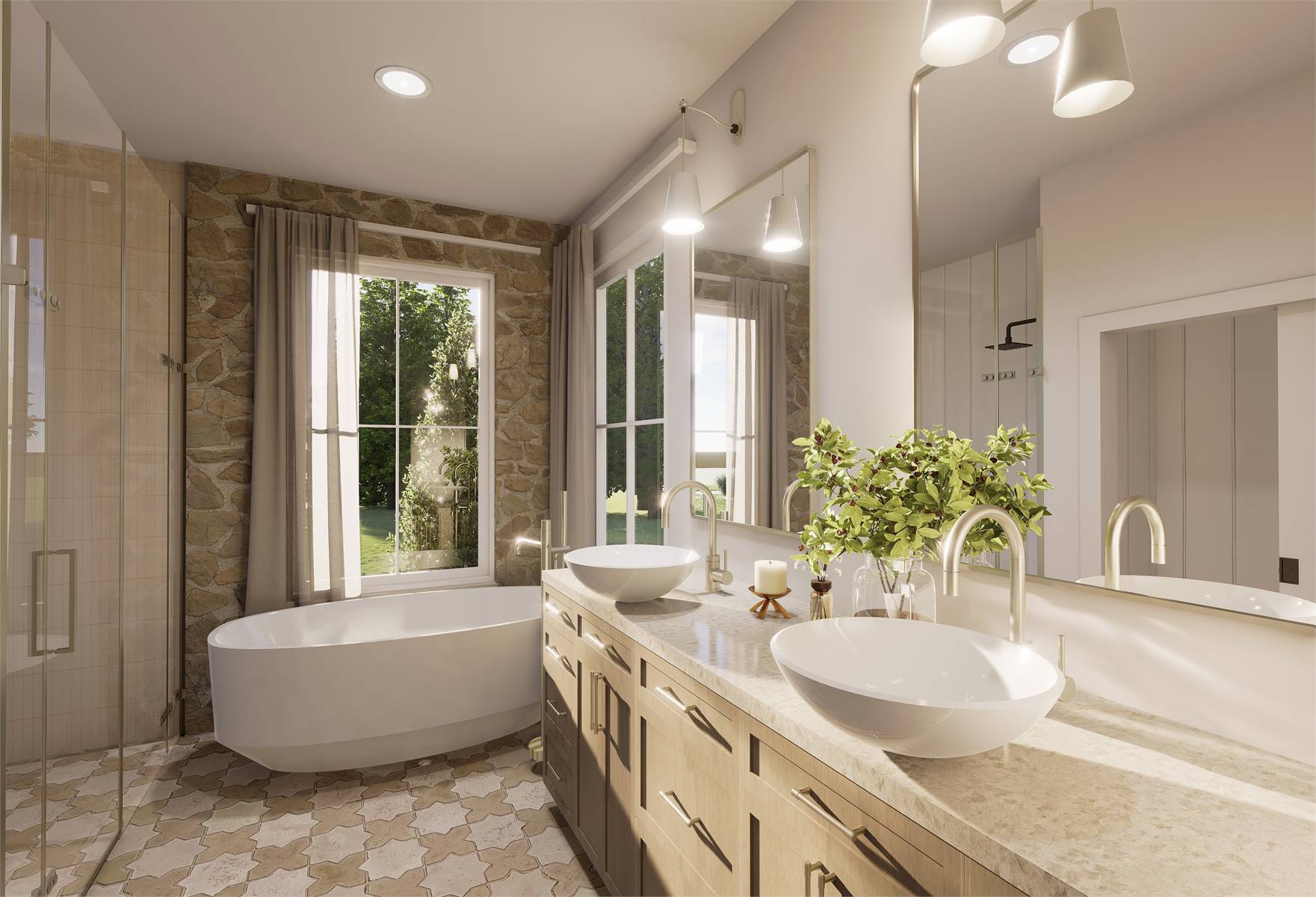 Designed with versatility in mind, this 2,089 square foot home blends open living with well-defined private spaces. The main level welcomes you through a gracious foyer with arched openings that lead into the family room and dining area. The kitchen is positioned for easy entertaining and includes an island and walk-in pantry to support daily routines. A split-bedroom layout places the primary suite on the main floor, complete with his and hers closets and a bath featuring a separate tub and shower. An additional guest suite offers comfort and privacy for visitors or multi-generational living. Upstairs, secondary bedrooms provide ample space, while covered porches extend the living area outdoors and create a warm, inviting feel throughout the home.