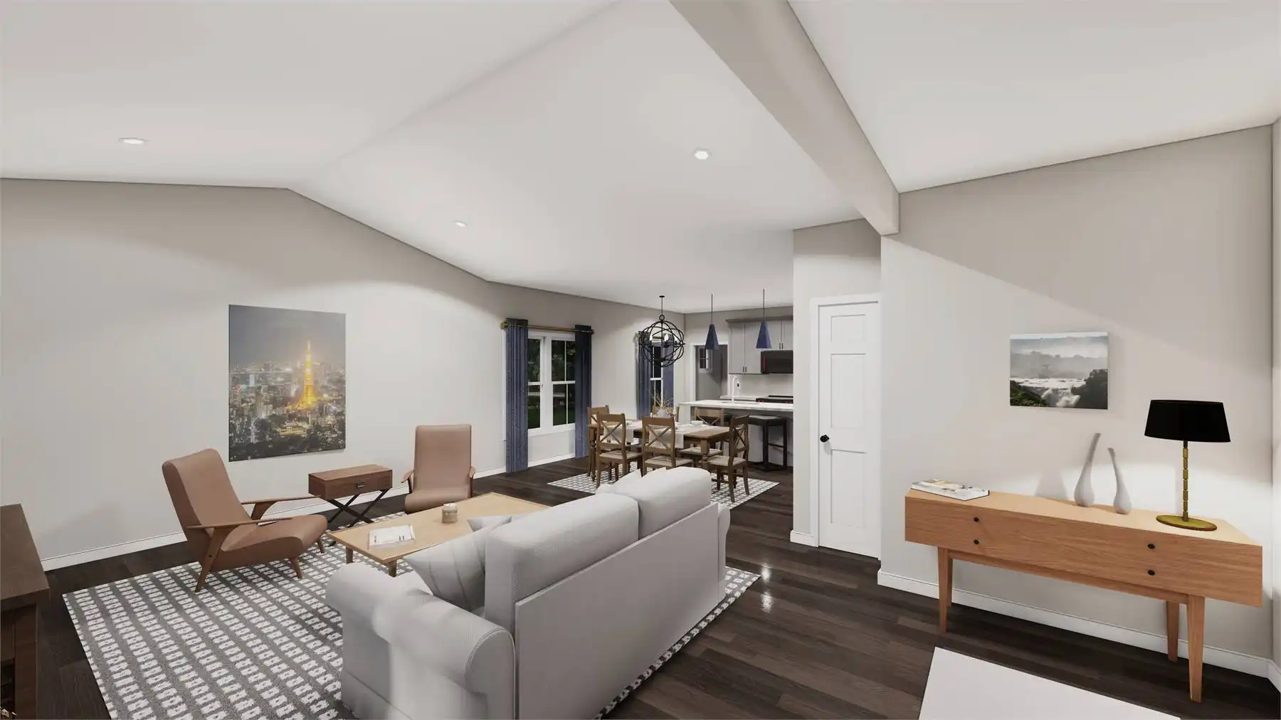 House Plan 10708 is a lovely little ranch for a budget! It offers 1,656 square feet, three bedrooms, and two bathrooms. The layout places the bedrooms together on one side and the living areas on the other. The hallway with the bedrooms is off the front entry. There's a bedroom in front, then a hall bathroom, another bedroom, and then the three-piece primary suite with a walk-in closet in back. The laundry room is also in this hallway for convenience. On the other side of the house, the vaulted family room sits up front while the island kitchen is in back. The open layout helps make the most of every square foot!