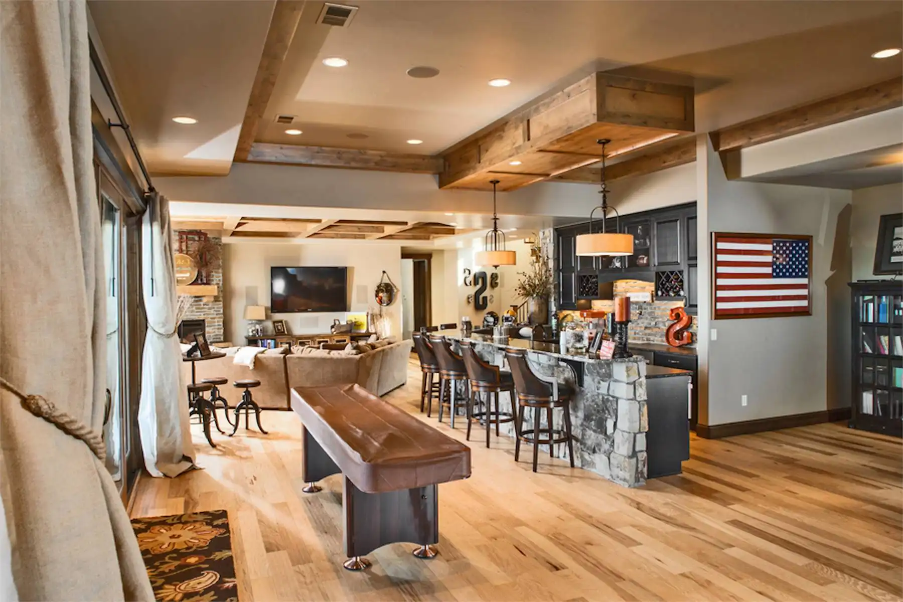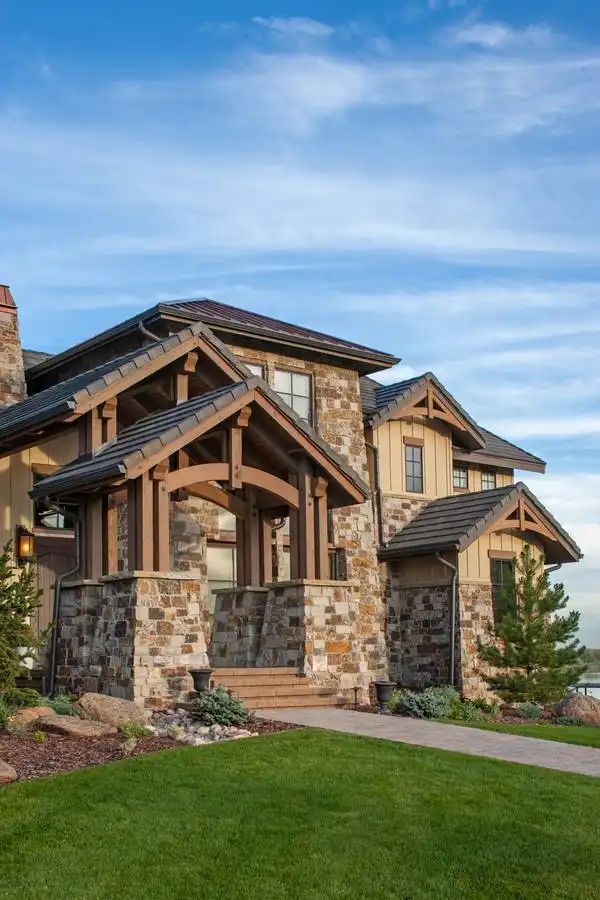 House Plan 10711 is a luxury Craftsman retreat offering 4,531 square feet of warm, inviting lodge-style living. With 3 bedrooms and 3.5 baths, this design features a dramatic vaulted great room with timber beams and panoramic rear-facing windows. The open-concept layout connects the great room, dining space, and gourmet kitchen for seamless entertaining. The primary suite is privately located on the main level and features a deluxe bath and dual walk-in closets. Two upstairs bedrooms with a Jack-N-Jill bath create ultimate guest comfort. Outdoor living is elevated with deep porches and room for a built-in grill or fireplace. A generous 4-car garage completes the layout, ideal for families needing space and storage in a home that feels like a getaway.