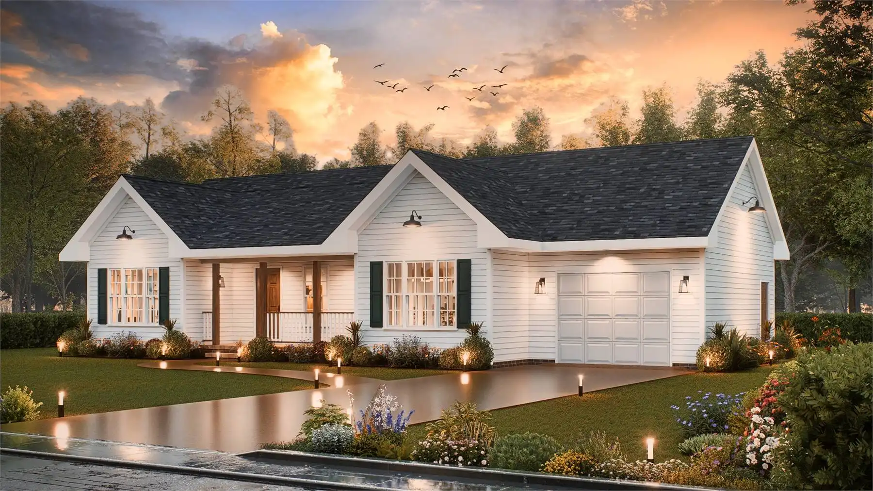House Plan 10720 offers 1,101 square feet of smartly arranged living space with three bedrooms, two full bathrooms, and a cozy yet open feel. The kitchen includes a large walk-in pantry, while the primary suite is privately located for extra comfort. With 8-foot ceilings and a stick-framed 8:12 roof, the home feels light and spacious. A welcoming front porch and a rear deck offer great outdoor living space, and the 308 square foot single-car garage adds everyday convenience. Perfect for small families, empty nesters, or anyone looking for an efficient and charming home design.