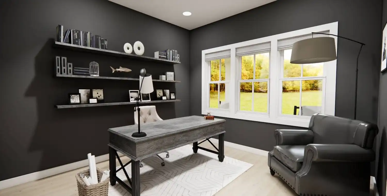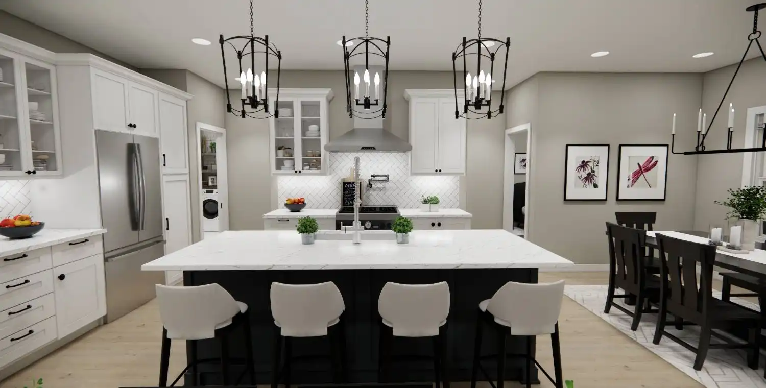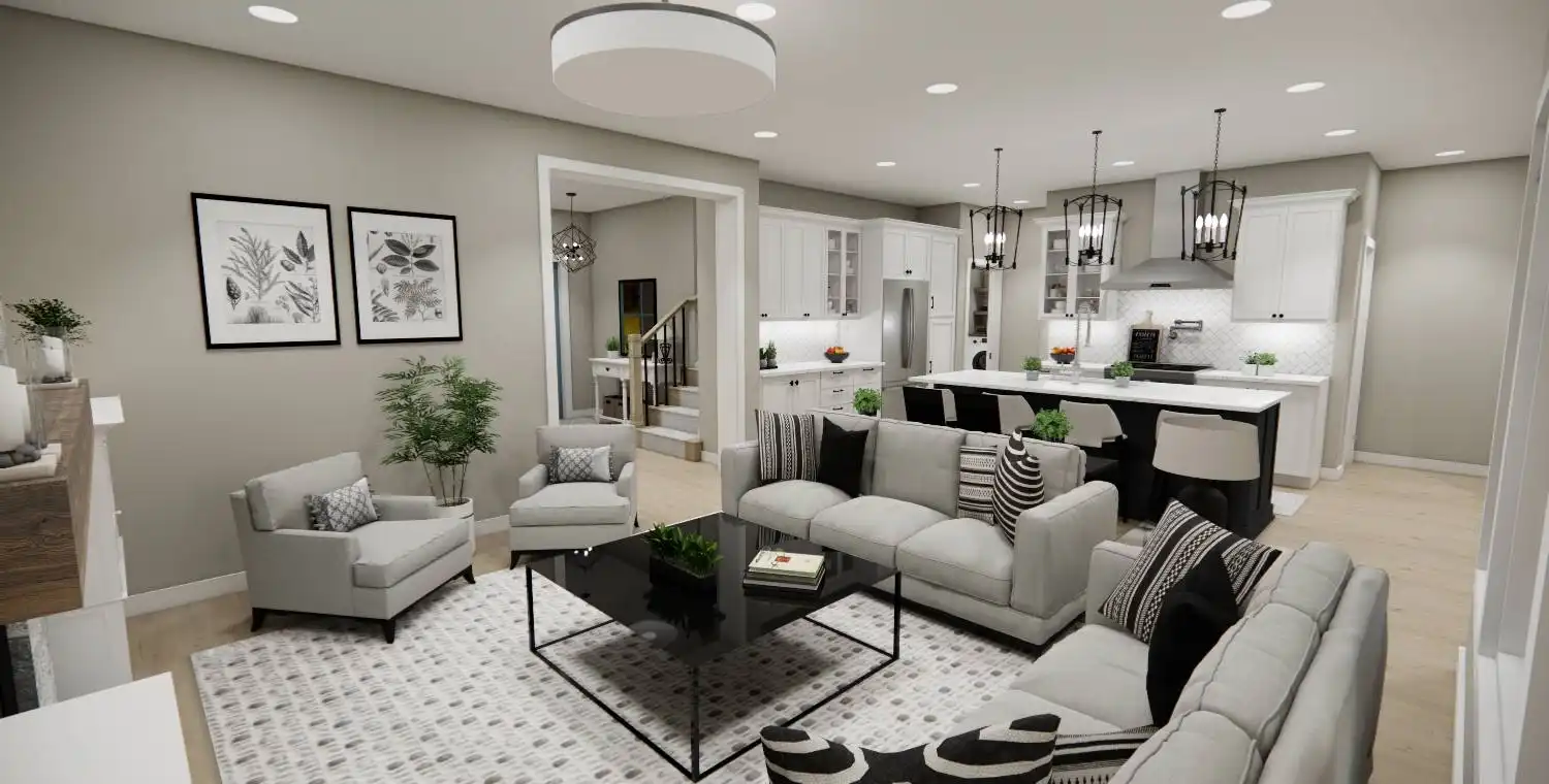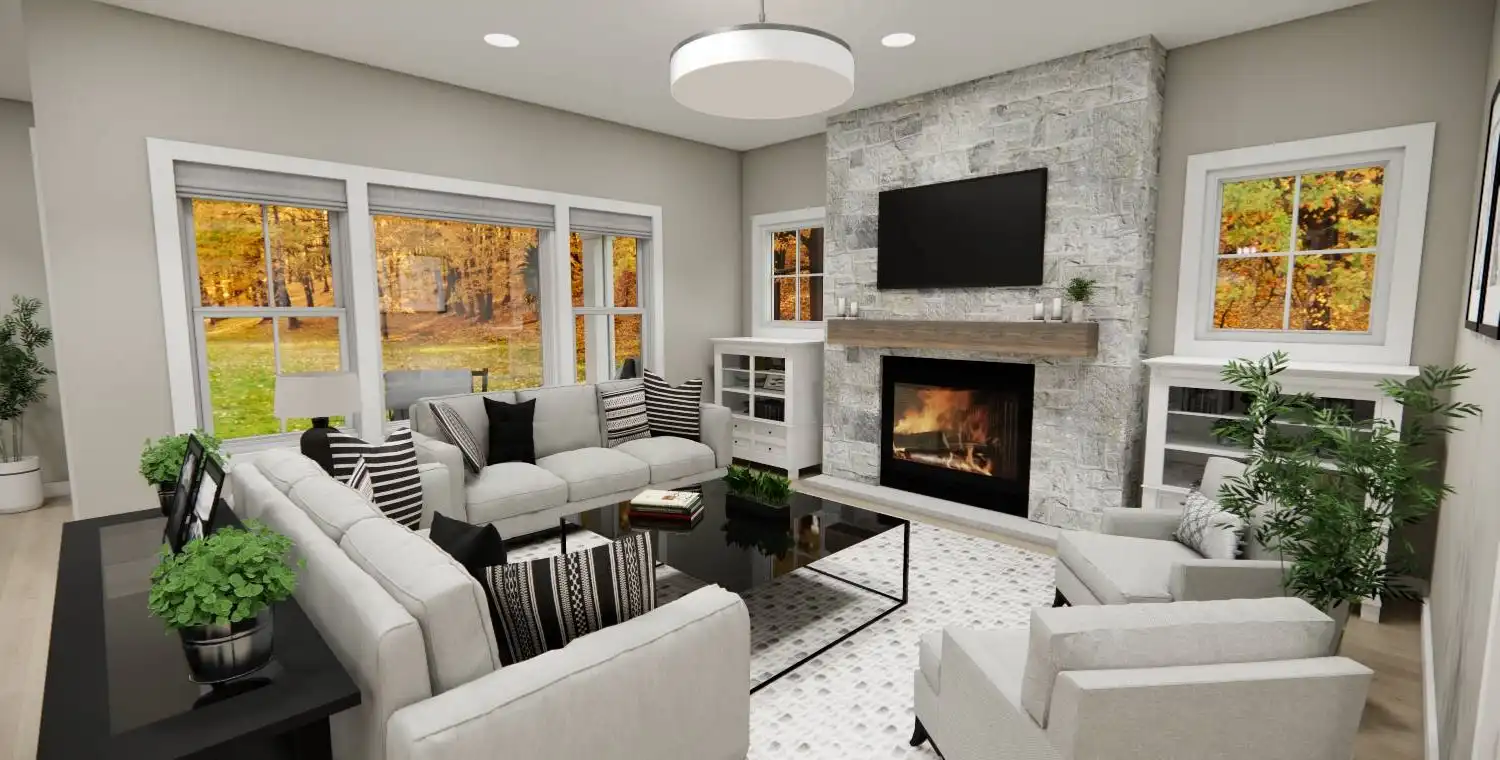 House Plan 10738 delivers the perfect blend of farmhouse charm and modern functionality in a smart two-story design. This 3-bedroom, 2.5-bathroom home welcomes you with a classic front porch and a bright foyer with 9-foot ceilings throughout the main level. Just off the entry, a versatile office provides a comfortable work-from-home space. The kitchen is a true centerpiece, featuring a large 8-foot island, ample counter space, and seamless connection to the dining area and cozy great room with a fireplace—ideal for gatherings and everyday living. The main-floor primary suite serves as a private retreat with a spacious walk-in closet and a luxurious ensuite bath with double vanities, a soaking tub, and a separate shower. Upstairs, two additional bedrooms with walk-in closets share a full bath and surround a spacious loft that offers flexibility for a media room, game area, or lounge. Additional features include a mudroom with laundry off the 2-car garage and plenty of storage throughout, making House Plan 10738 perfect for families, entertainers, and those who value a warm and functional home.