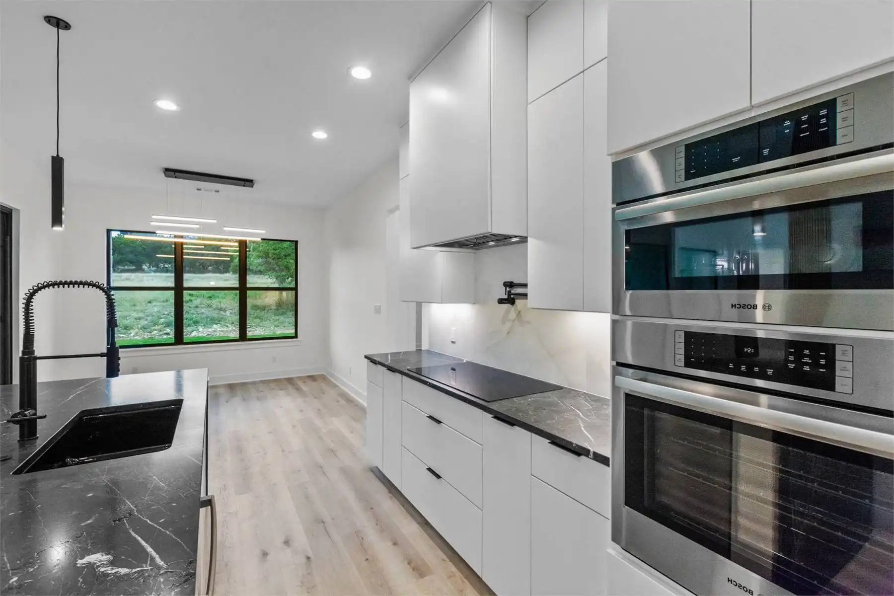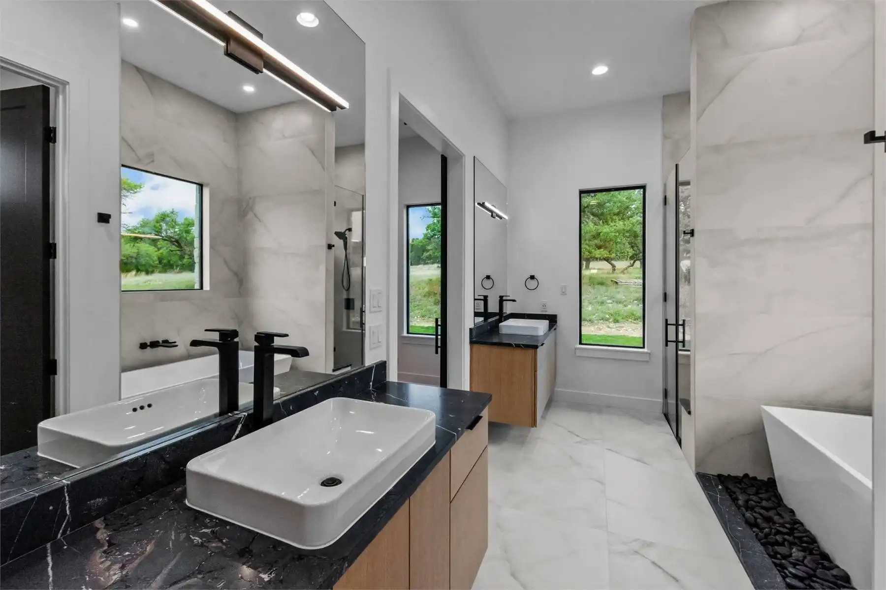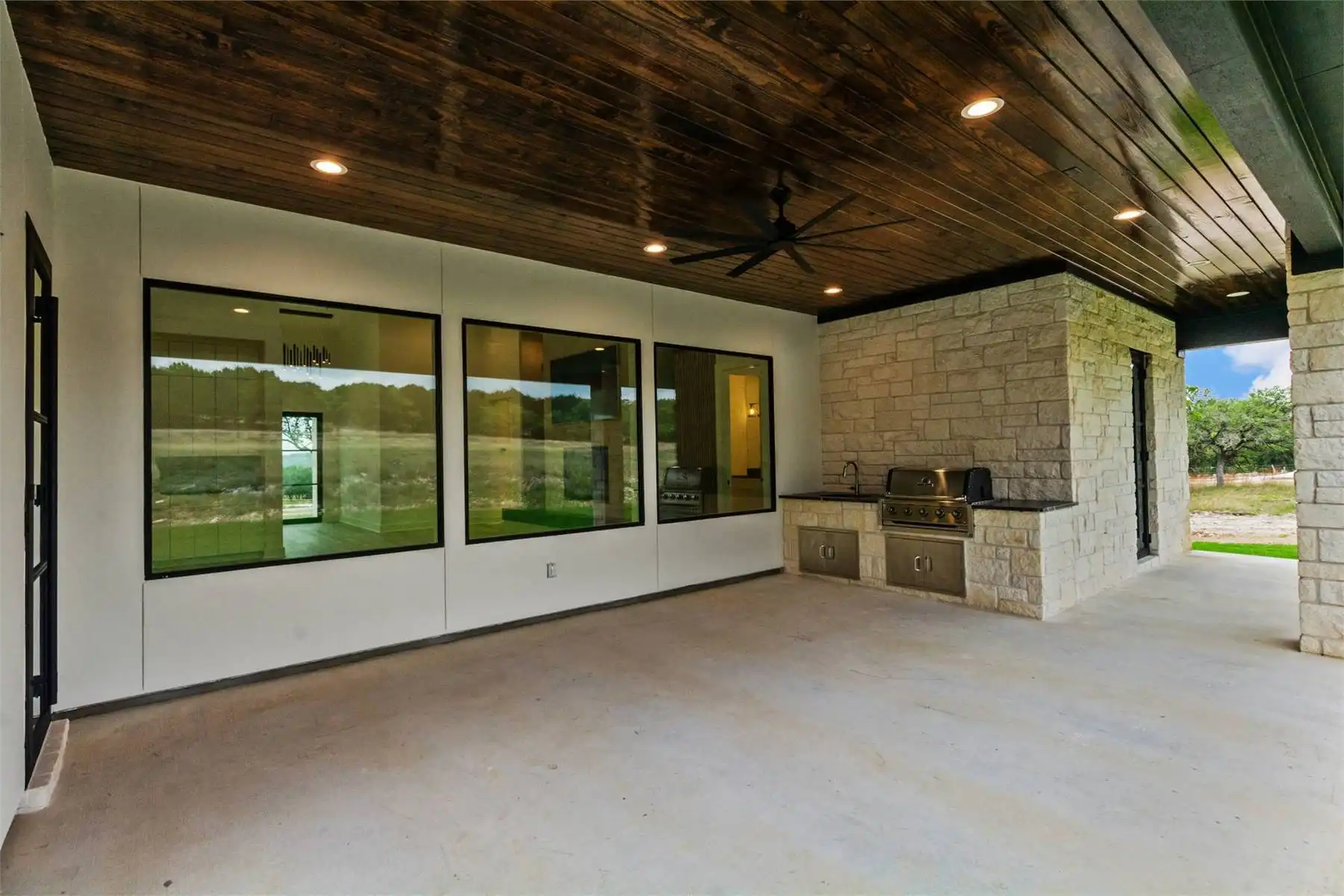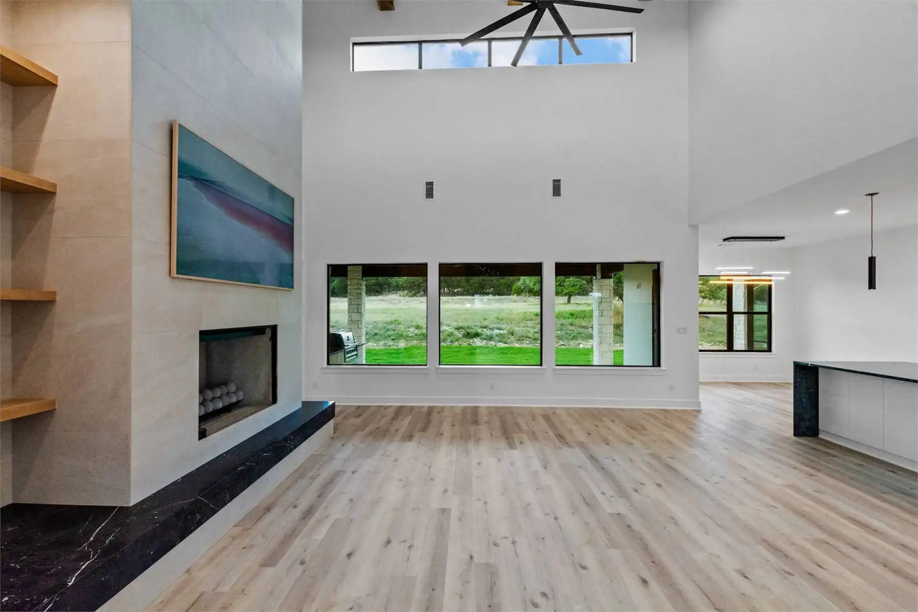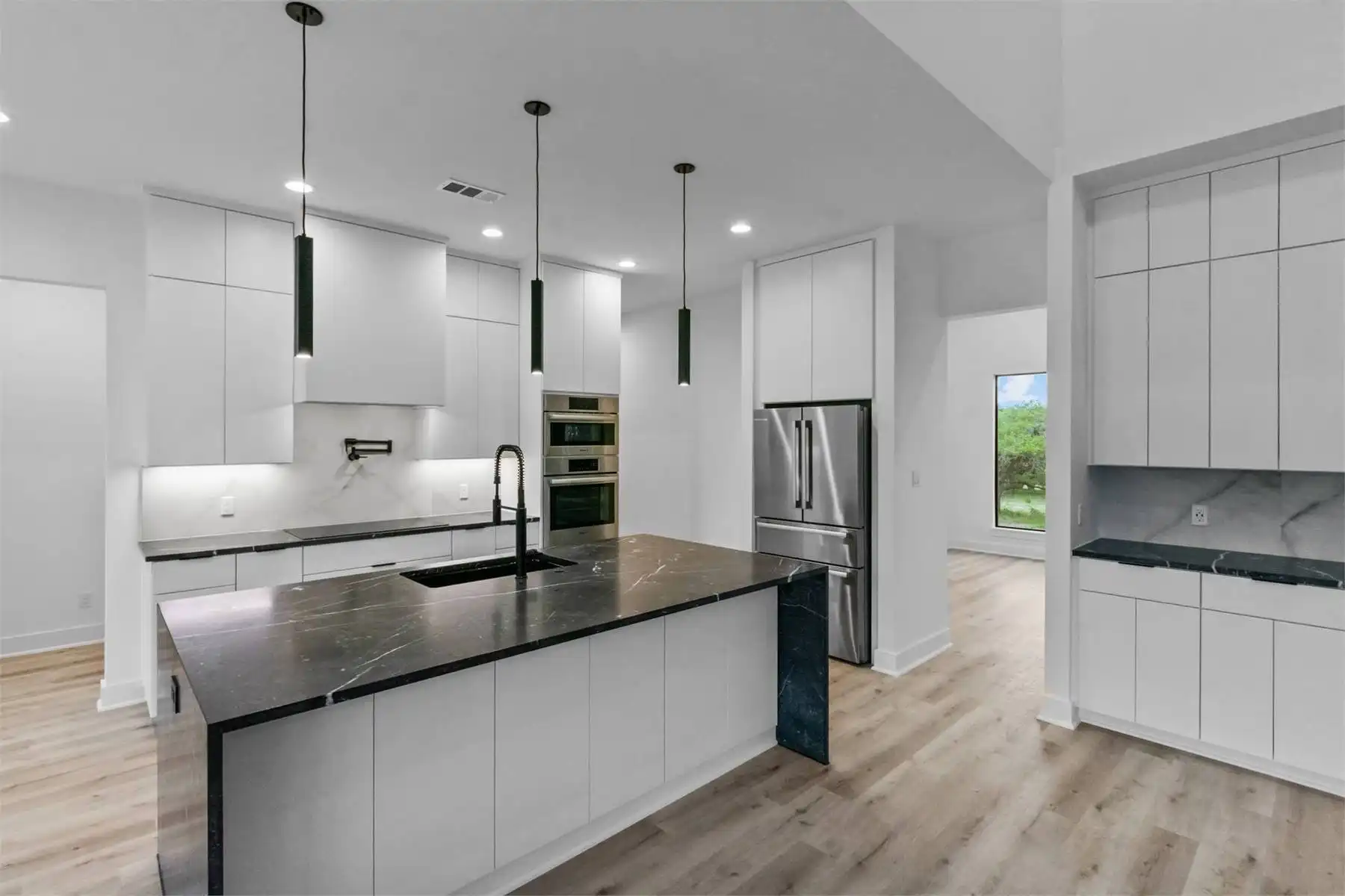 House Plan 10741 delivers over 4,000 square feet of elevated living across two levels, featuring 4 bedrooms, 5 bathrooms, and a flexible layout made for modern families. A formal dining room greets you off the foyer, while two private offices offer dedicated spaces for work or hobbies. The main level also includes a guest suite with an ensuite bath and a fitness room with its own full bath. The heart of the home is the vaulted great room with a statement fireplace, which opens to a sprawling covered patio and connects seamlessly to the contemporary kitchen with a large island and casual breakfast area. The private primary suite provides a peaceful retreat with a spa-inspired bath and a large walk-in closet. Upstairs, two bedrooms with private baths and a central bonus room offer plenty of space for kids, guests, or entertainment. A side-entry three-car garage adds convenience and curb appeal.