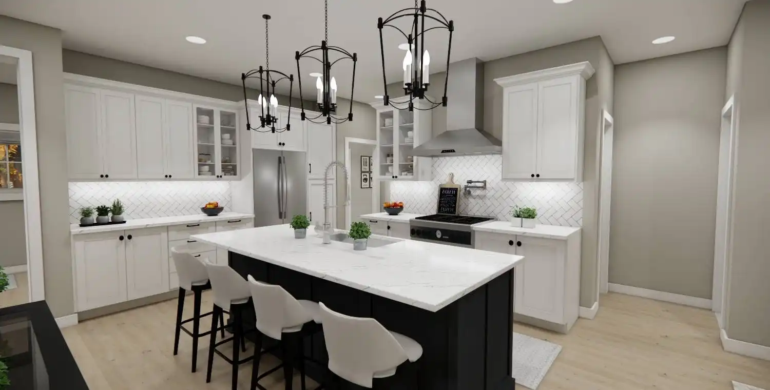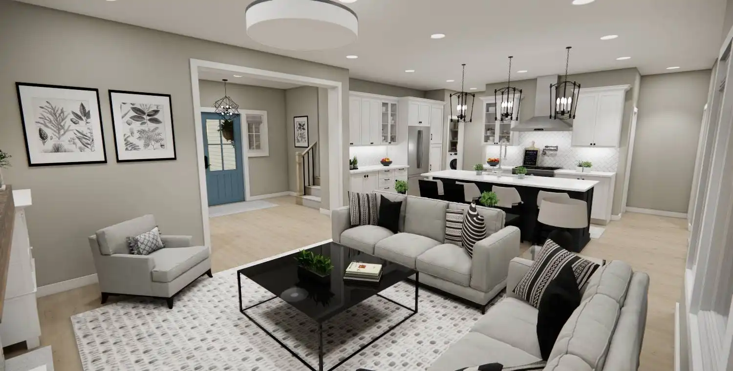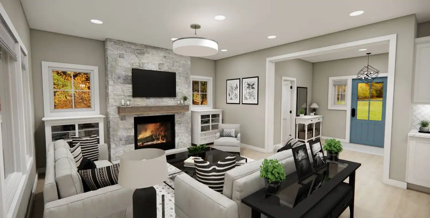 House Plan 10746 is a charming two-story Modern Farmhouse with 3 bedrooms, 2.5 bathrooms, and open-concept living designed for today’s busy households. The spacious main level begins with a welcoming front porch and bright foyer with 9-foot ceilings, leading into a well-appointed kitchen with an 8-foot island, generous counter space, and a cozy great room with a fireplace. The main-floor primary suite features a large walk-in closet and a spa-inspired bath with a soaking tub and separate shower. Upstairs, two bedrooms and a full bath surround a versatile loft perfect for relaxing or entertaining. A mudroom with laundry off the 2-car garage, ample storage throughout, and a seamless layout make this plan ideal for growing families or work-from-home lifestyles.