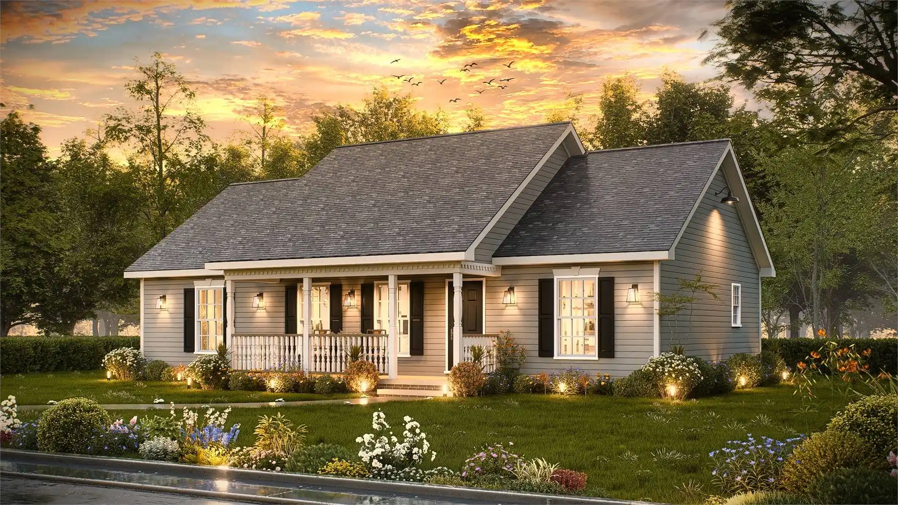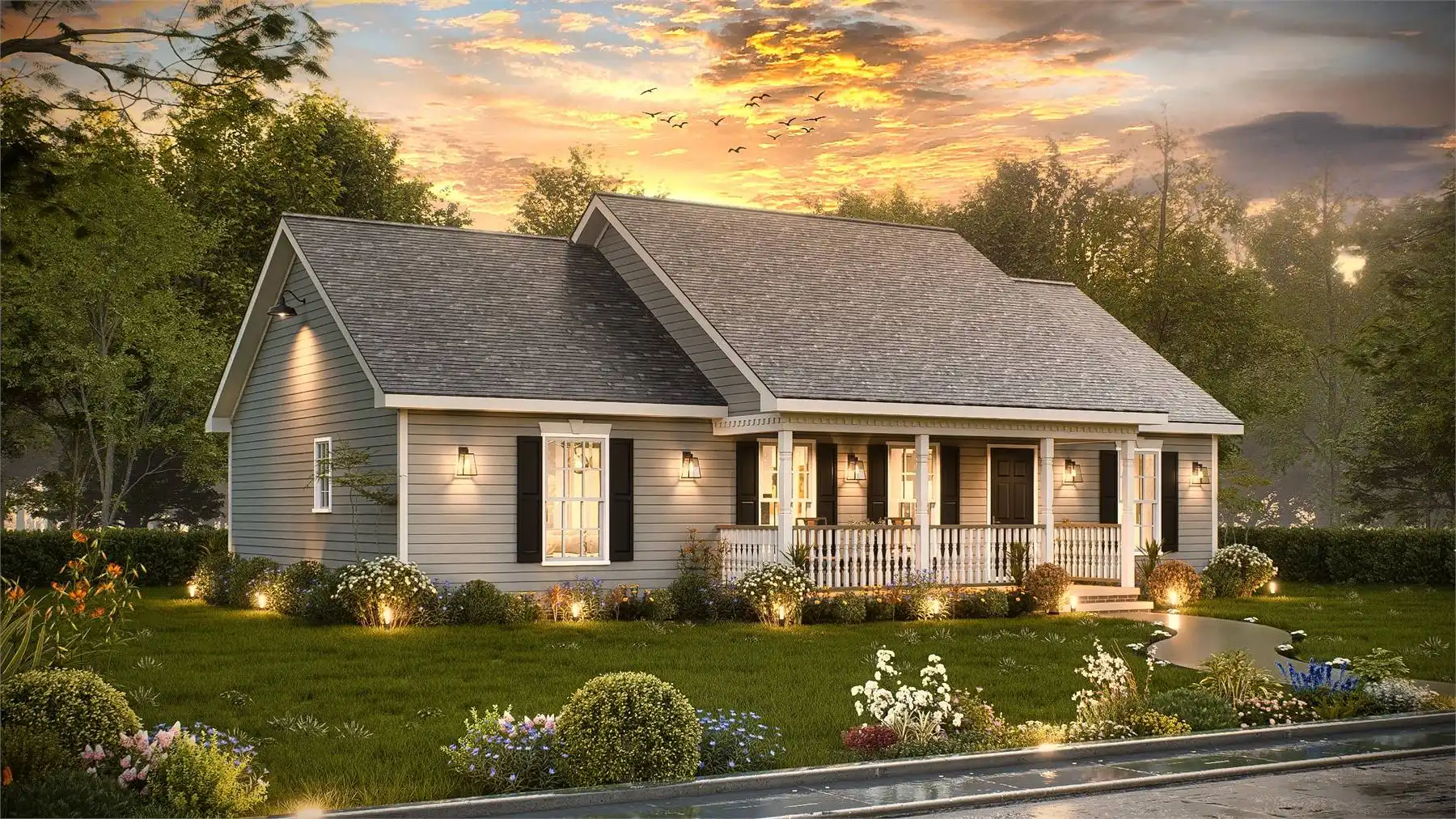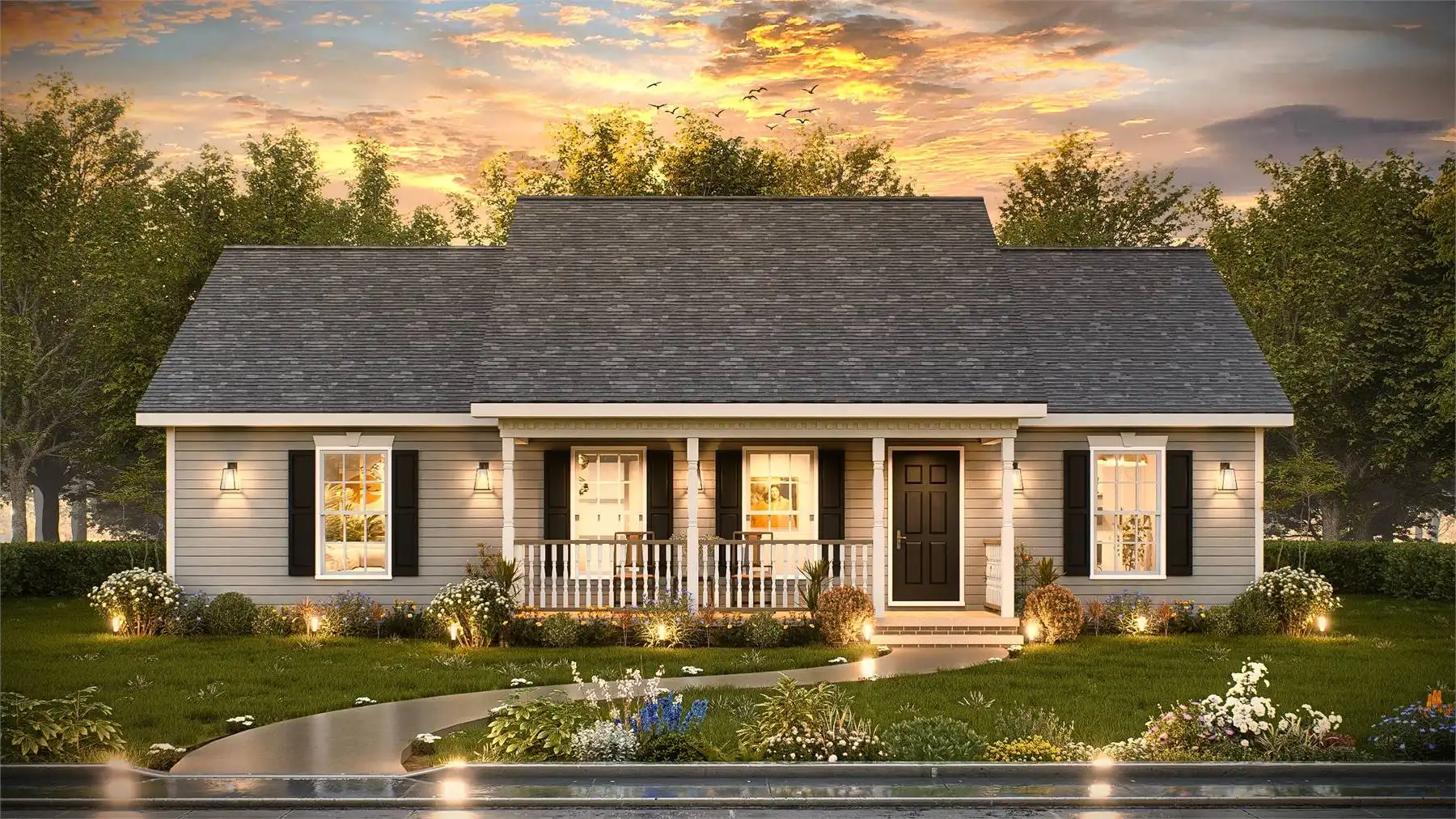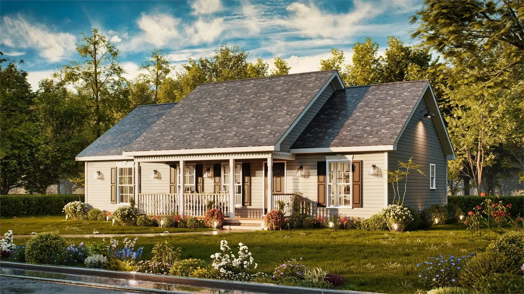 House Plan 10766 is a beautifully designed ranch home offering 1,248 square feet of easy, stylish living. With 3 bedrooms and 2.5 bathrooms, this split-bedroom plan ensures privacy for the primary suite, complete with walk-in closet and private bath. The heart of the home is the vaulted family room with a cozy fireplace, open to a functional kitchen and sunny dining area. A covered front porch and rear deck invite outdoor living, while a first-floor laundry adds convenience. Built with traditional stick-frame construction on a crawl space foundation, this plan is a perfect choice for a forever home or peaceful retreat.
