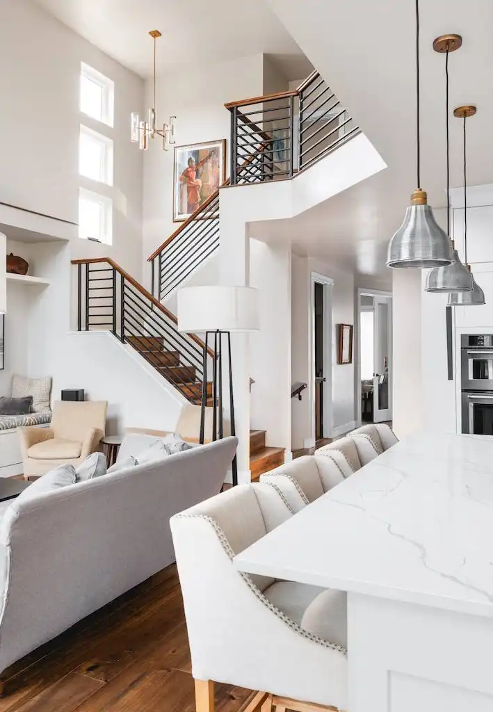 House Plan 10780 offers 2,413 square feet of versatile two-story living with up to 5 bedrooms and 4.5 bathrooms. The main level includes an inviting covered entry, cozy fireplace in the living room, and a stylish L-shaped kitchen with a spacious island, perfect for everyday use or entertaining. A rear covered deck extends the living space outdoors, and a guest bedroom with full bath provides comfort and privacy. Upstairs, the primary suite is a luxurious retreat with its own deck access, sitting area, ensuite, and walk-in closet. Two additional bedrooms and laundry complete the upper level. The optional lower floor brings added flexibility with a potential fifth bedroom, another full bathroom, and a large open flex space for whatever your lifestyle demands.