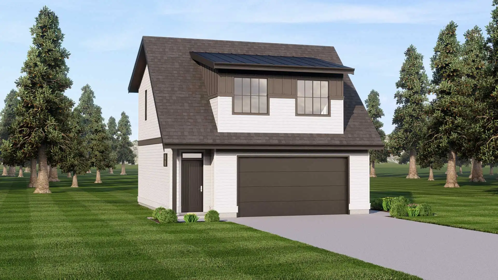House Plan 10792 combines functional design with charming farmhouse details in a compact two-story layout. The lower level features a large front-entry double garage with 648 sq. ft. of parking and storage, making it ideal for homeowners needing both vehicle space and an upper-level suite. The living area above is thoughtfully arranged, showcasing an open kitchen, bright eating area, and a comfortable living room designed for relaxed everyday use. A full bath, linen storage, and convenient second-floor laundry are located just outside the private bedroom. With 9' ceilings throughout, the interior feels open and inviting despite its modest square footage. The 28' x 28' footprint makes this design an excellent fit for narrow lots, lake properties, or backyard builds. Whether used as a guest suite, rental unit, or personal getaway, House Plan 10792 delivers efficiency and style in one well-crafted package.
