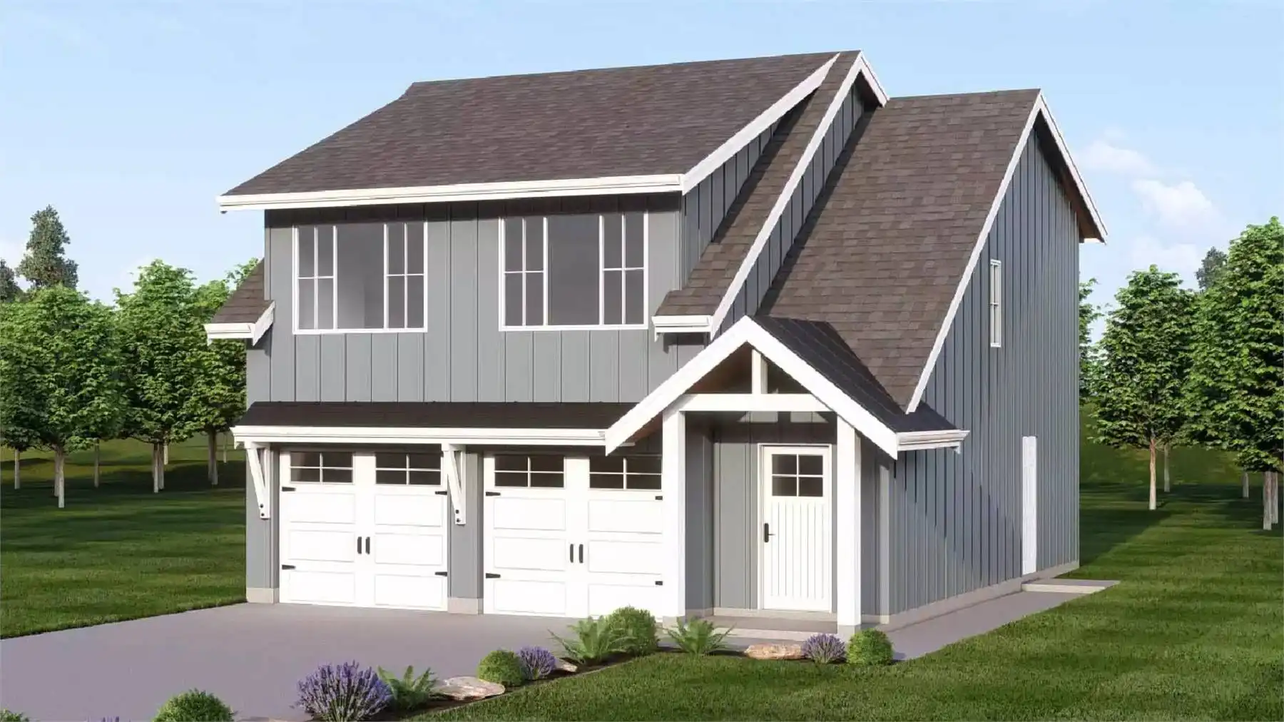 With 1,037 square feet of heated space, this two-story home plan balances smart design with comfortable everyday living. The great room features a fireplace and soaring ceiling that brings light and visual interest into the heart of the home. The kitchen is efficiently arranged with an island and L-shaped layout that supports both daily meals and casual gatherings. Both bedrooms are located upstairs, offering privacy and a quiet retreat from the main living areas. Second-floor laundry placement adds convenience and keeps household tasks close to the bedrooms. An oversized front-entry garage provides generous space for vehicles, storage, or seasonal equipment, making this plan both practical and inviting.