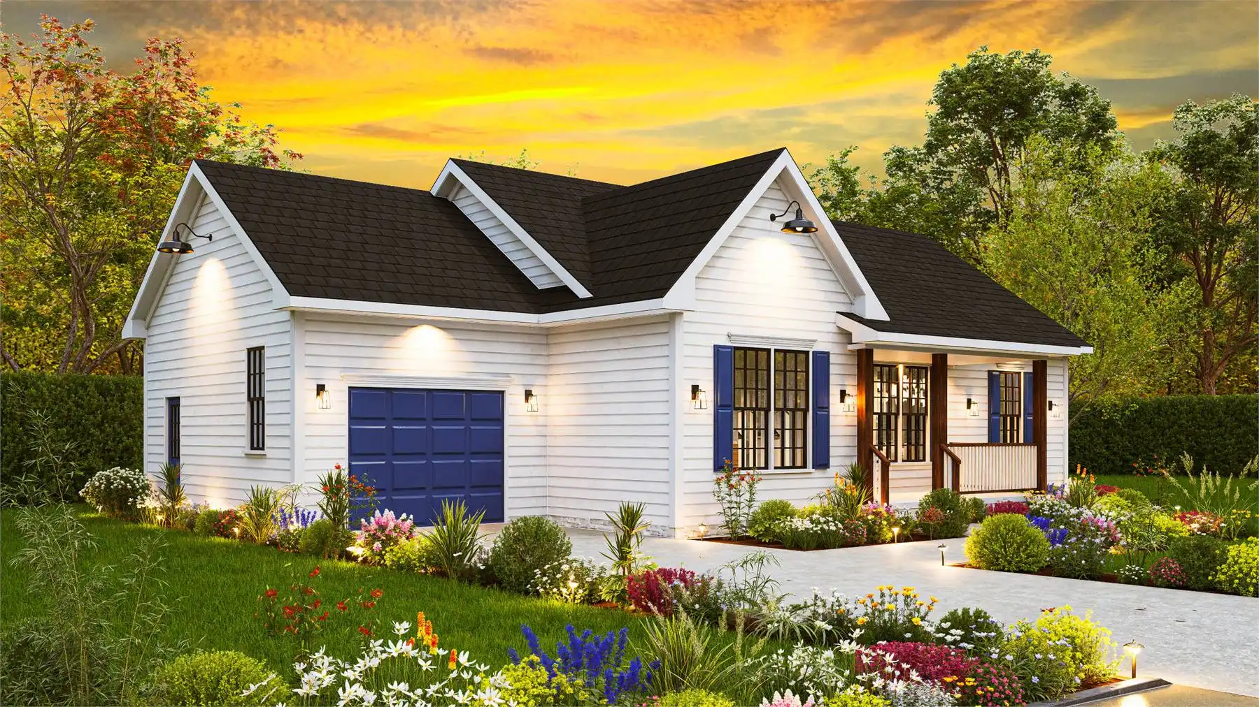 House Plan 10813 presents a well-designed traditional home offering 3 bedrooms and 2 bathrooms in just 1,220 square feet. Its closed-concept floor plan creates cozy, well-defined living areas perfect for those who prefer separate spaces. The kitchen includes efficient cabinetry and adjoins a designated dining space, while the living room is perfect for family time. The primary suite is tucked at the rear of the home for added privacy and includes an en-suite bathroom and walk-in closet. Two additional bedrooms are located near the front and share a full bathroom. A 1-car attached garage adds everyday convenience. This compact layout blends functionality and charm, making it an excellent choice for small families, retirees, or investment properties.