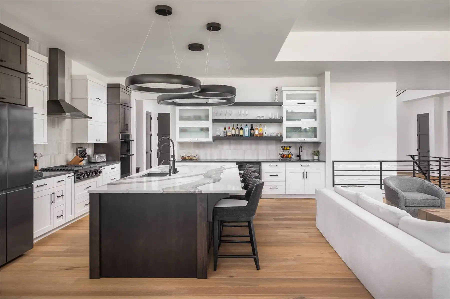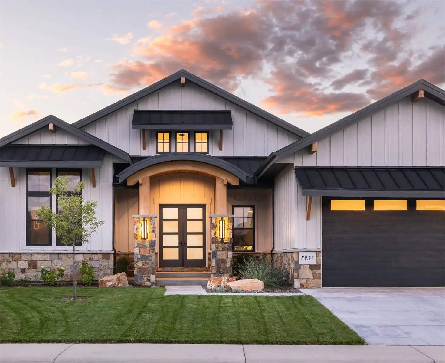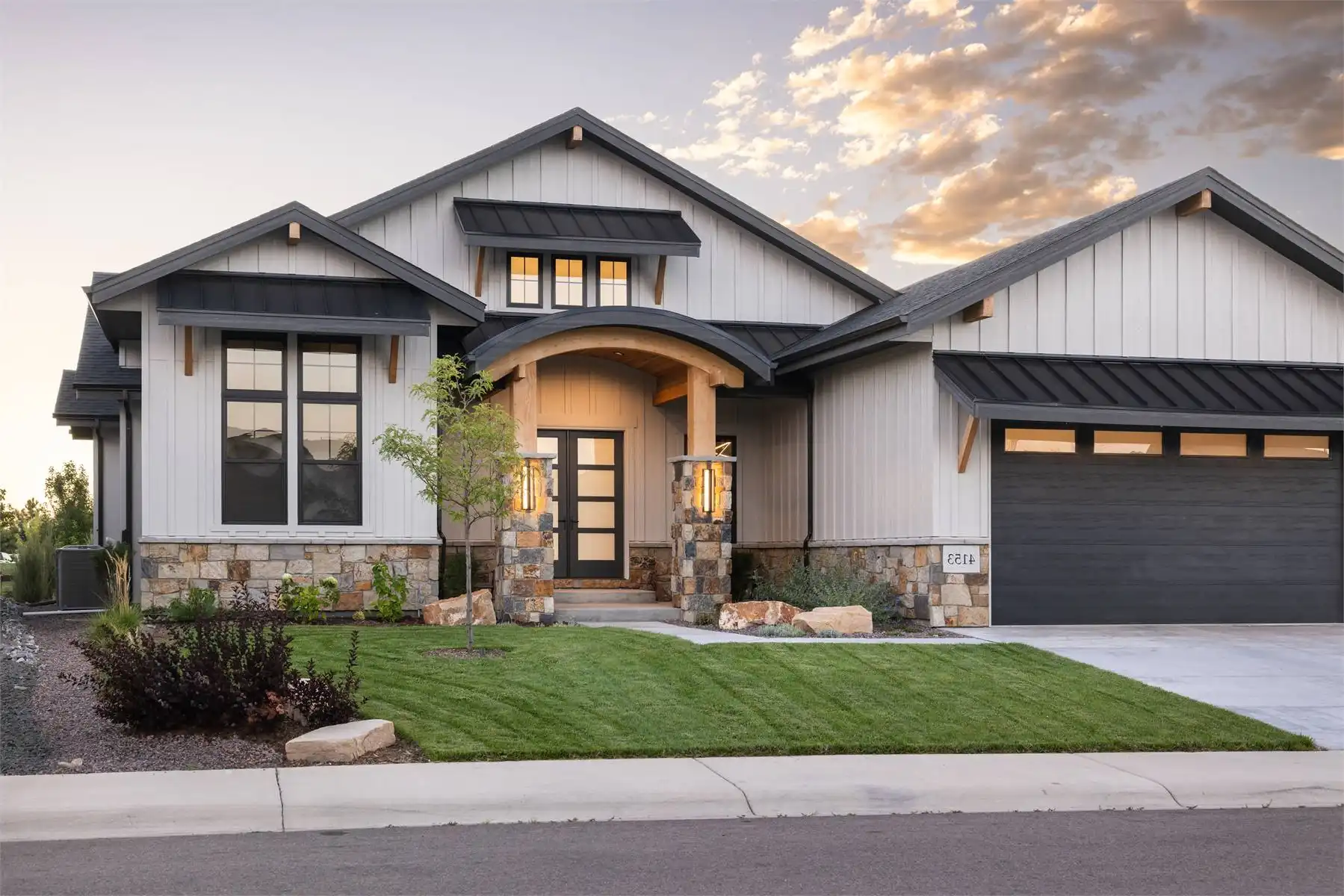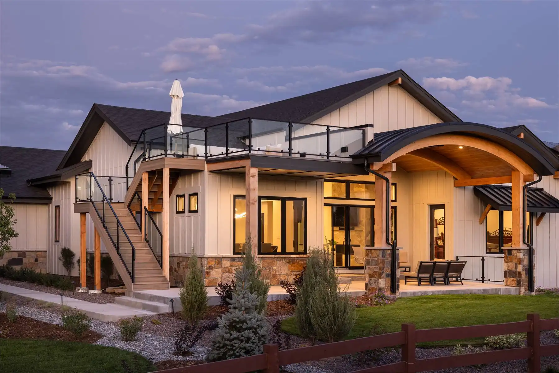 House Plan 10831 delivers 2,608 square feet of stylish one-level living with standout features like a rooftop deck and spacious three-car garage. The home welcomes you with a covered front porch and large foyer, where an office and stairs to the optional basement sit just off the entry. The open layout flows from the great room with fireplace to a covered patio and rooftop access, with a dining area and L-shaped kitchen featuring a large island and walk-in pantry. On the right wing, the primary suite offers a luxurious retreat with a private ensuite and walk-in closet, while the second bedroom includes its own full bath. A generously sized mudroom/utility room adds convenience and connects to the garage. Optional lower level includes two more bedrooms and expansive flexible space for future needs.