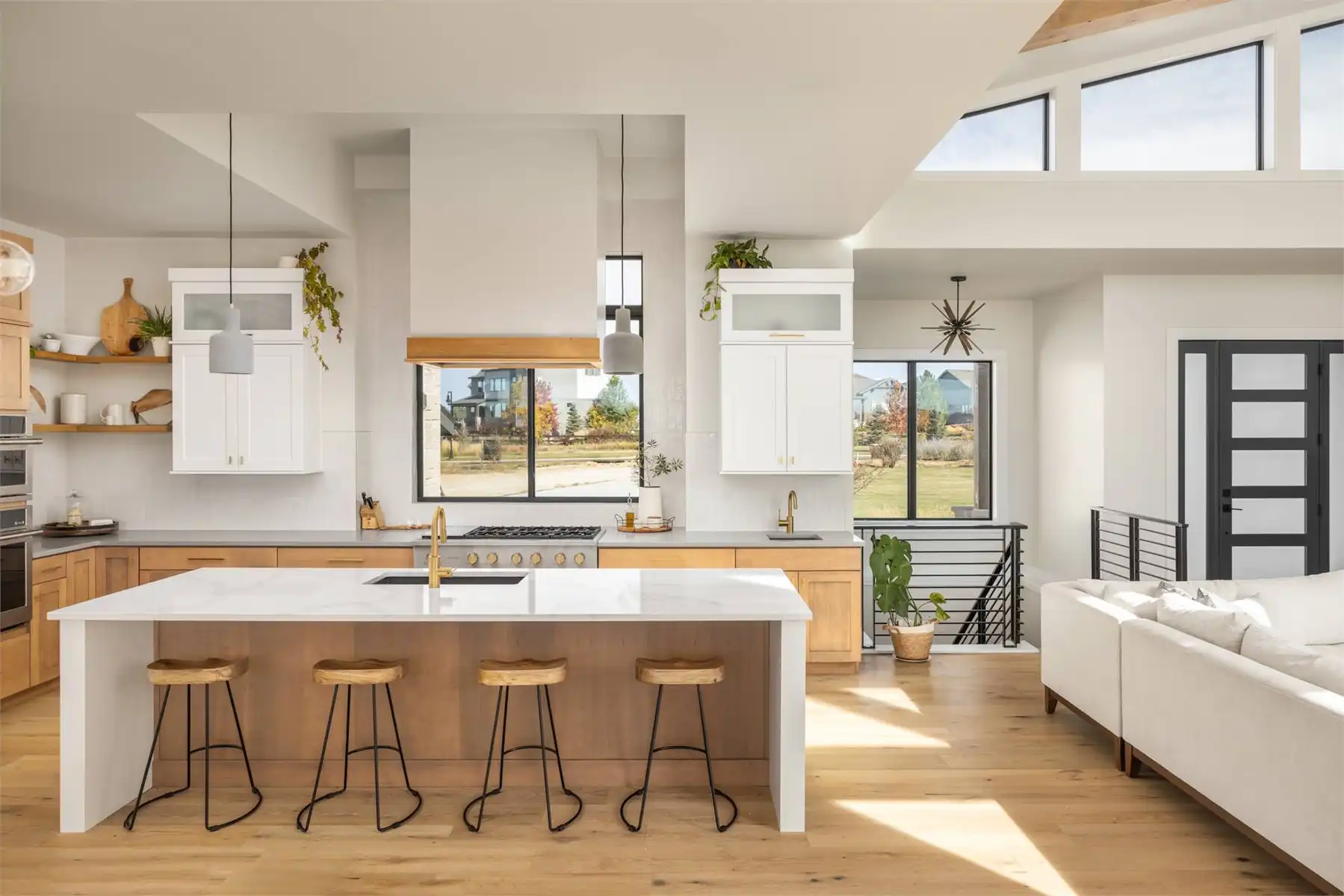 House Plan 10833 delivers striking contemporary mountain style in a thoughtfully designed 2,730-square-foot layout. A beautiful private courtyard sets a welcoming tone, leading to a bright entry and a central great room with fireplace that anchors the open-concept living area. The L-shaped kitchen features a large island and flows into the dining area, all oriented to maximize natural light and views, with easy access to the expansive rear covered deck for outdoor living. The right wing includes three bedrooms, two sharing a Jack-and-Jill bath and a third with its own full bathroom—ideal for family or guests. The left side of the home is reserved for the serene primary suite, featuring a cozy fireplace, spa-style ensuite, large walk-in closet with direct laundry access, and private seclusion. The 3-car garage adds everyday convenience, making House Plan 10833 perfect for those seeking a stylish, view-focused retreat with modern amenities and a smart, functional layout.