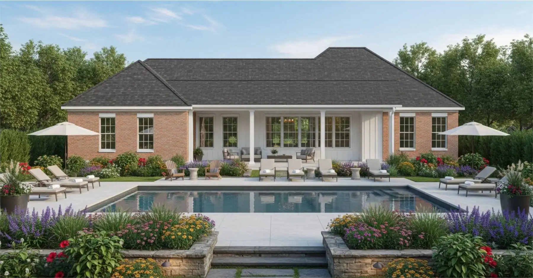 House Plan 10866 offers 1,928 square feet of smart, single-level living with a clean and efficient layout designed for modern families. Enter from the covered front porch into a foyer that leads to a bright and airy great room with access to the rear outdoor living area. The open layout includes an L-shaped kitchen with a large island, walk-in pantry, and adjacent dining area. The right side of the home features the spacious primary suite, complete with a luxurious ensuite and walk-in closet. On the opposite side, two secondary bedrooms share a full bathroom, and a large utility room adds functionality and storage. The two-car garage is positioned at the rear of the home and connects directly to the interior for everyday convenience. This home strikes the perfect balance of style, comfort, and livability.