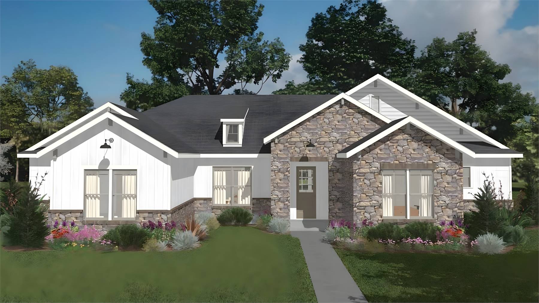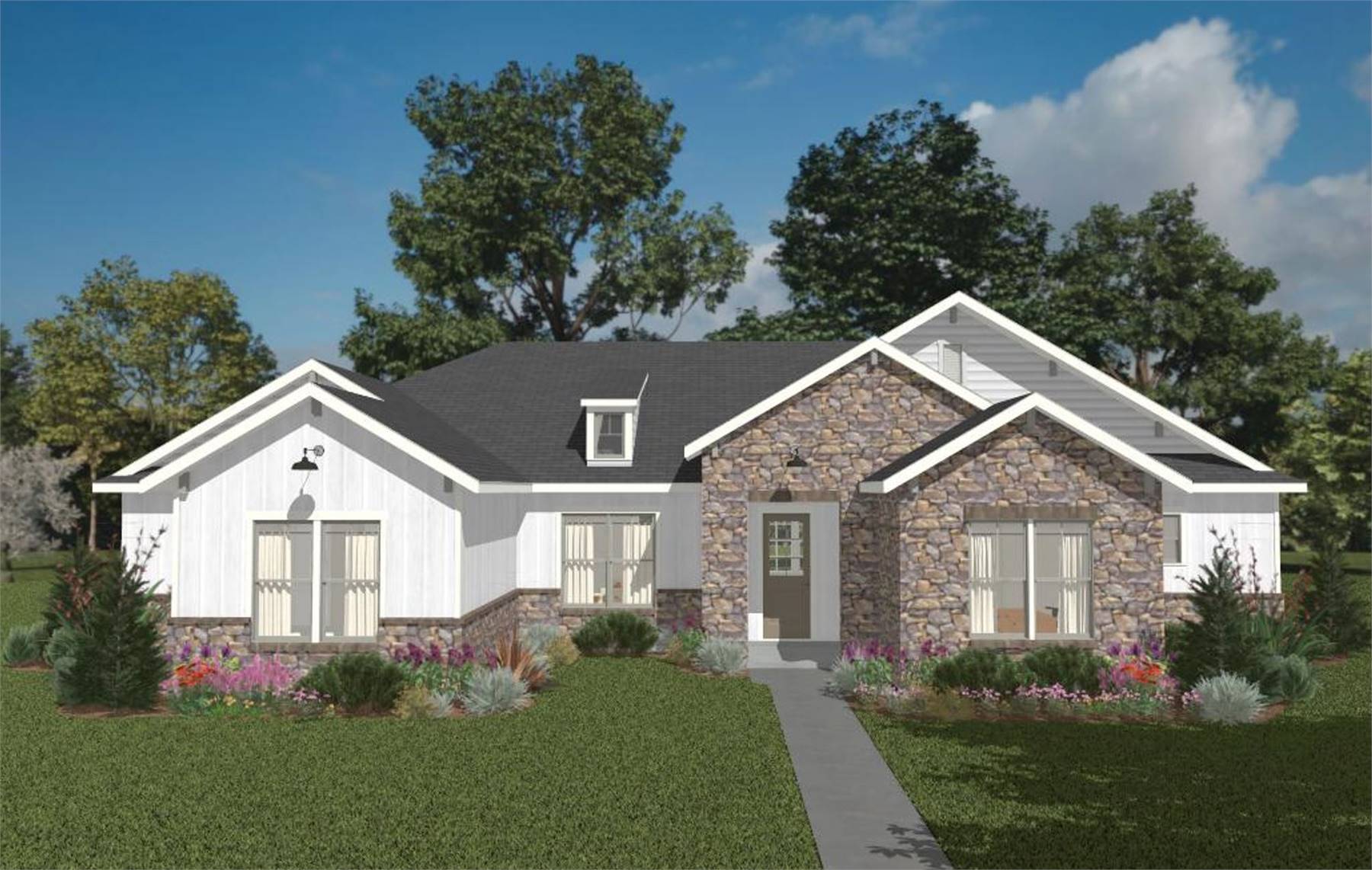 Take a look at House Plan 10877 if you need a great country-style home for a family! This ranch offers an ample 2,285-square-foot floor plan with three split bedrooms and two bathrooms. The great room at the center of the layout has a vaulted living area with a fireplace, an L-shaped island kitchen, and a casual dining area with a tray ceiling above. There's also a flex room off the foyer in front that's yours for the customizing! The primary suite enjoys privacy with a lovely four-piece bath while the other two bedrooms on the opposite side of the house share a four-piece hall bath. A laundry room off the mudroom and a two-car garage complete this thoughtful design!