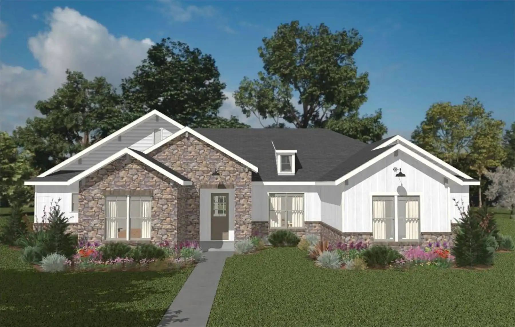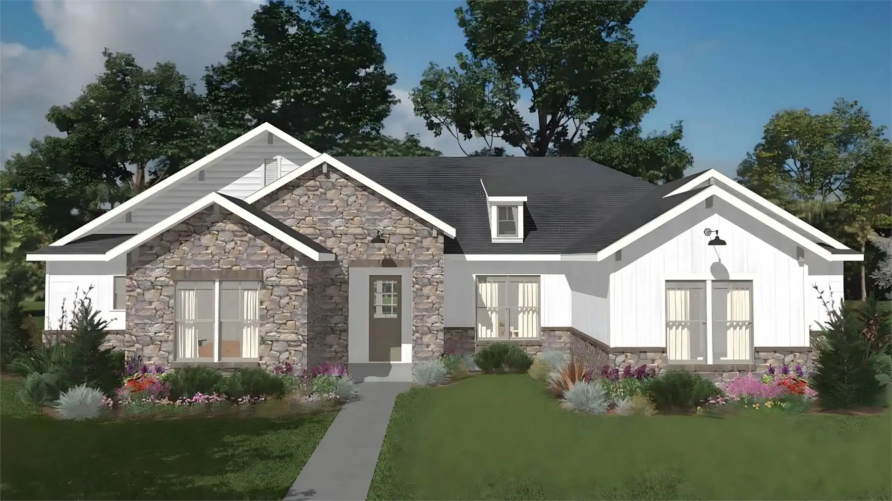 Take a look at House Plan 10877 if you need a great country-style home for a family! This ranch offers an ample 2,285-square-foot floor plan with three split bedrooms and two bathrooms. The great room at the center of the layout has a vaulted living area with a fireplace, an L-shaped island kitchen, and a casual dining area with a tray ceiling above. There's also a flex room off the foyer in front that's yours for the customizing! The primary suite enjoys privacy with a lovely four-piece bath while the other two bedrooms on the opposite side of the house share a four-piece hall bath. A laundry room off the mudroom and a two-car garage complete this thoughtful design!