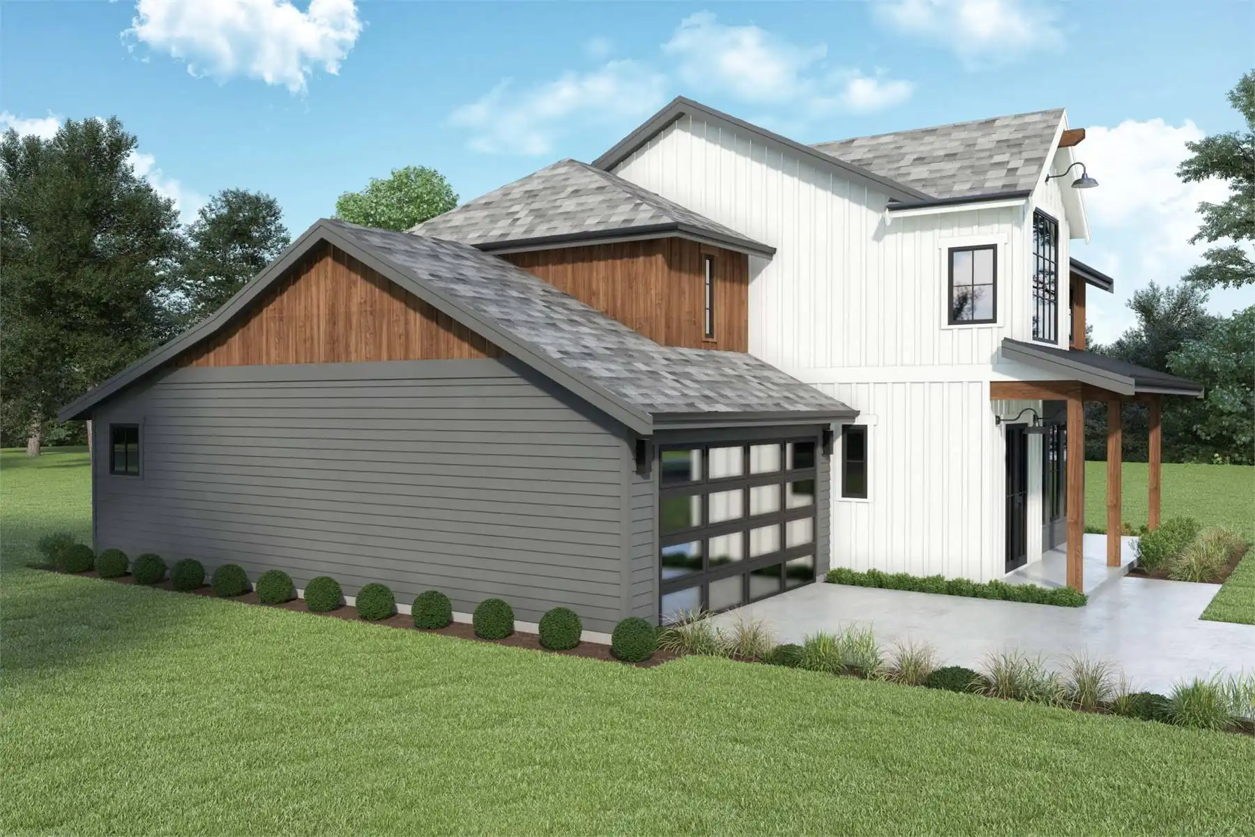 House Plan 10902 has so much to offer today's families with 1,951 square feet, three bedrooms, two-a-half bathrooms, and a two-car garage. This striking modern farmhouse boasts a voluminous great room beside an island kitchen, an office off the foyer, and a luxe primary suite on the main level. Upstairs, two bedrooms share a hall bath, and there's also a sizeable loft overlooking the great room. You're sure to love this chic design!