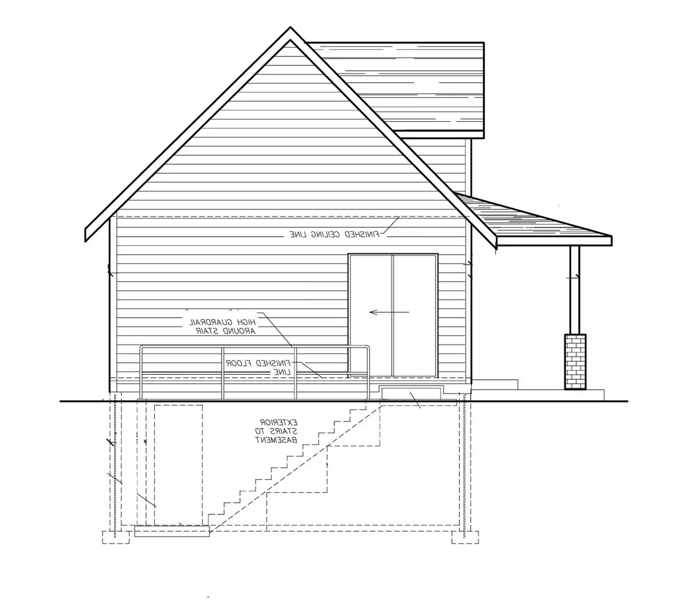 The basement foundation with interior stairs increases the main level to 680 square feet and increases the width to 34', with 2' additional on each side.
