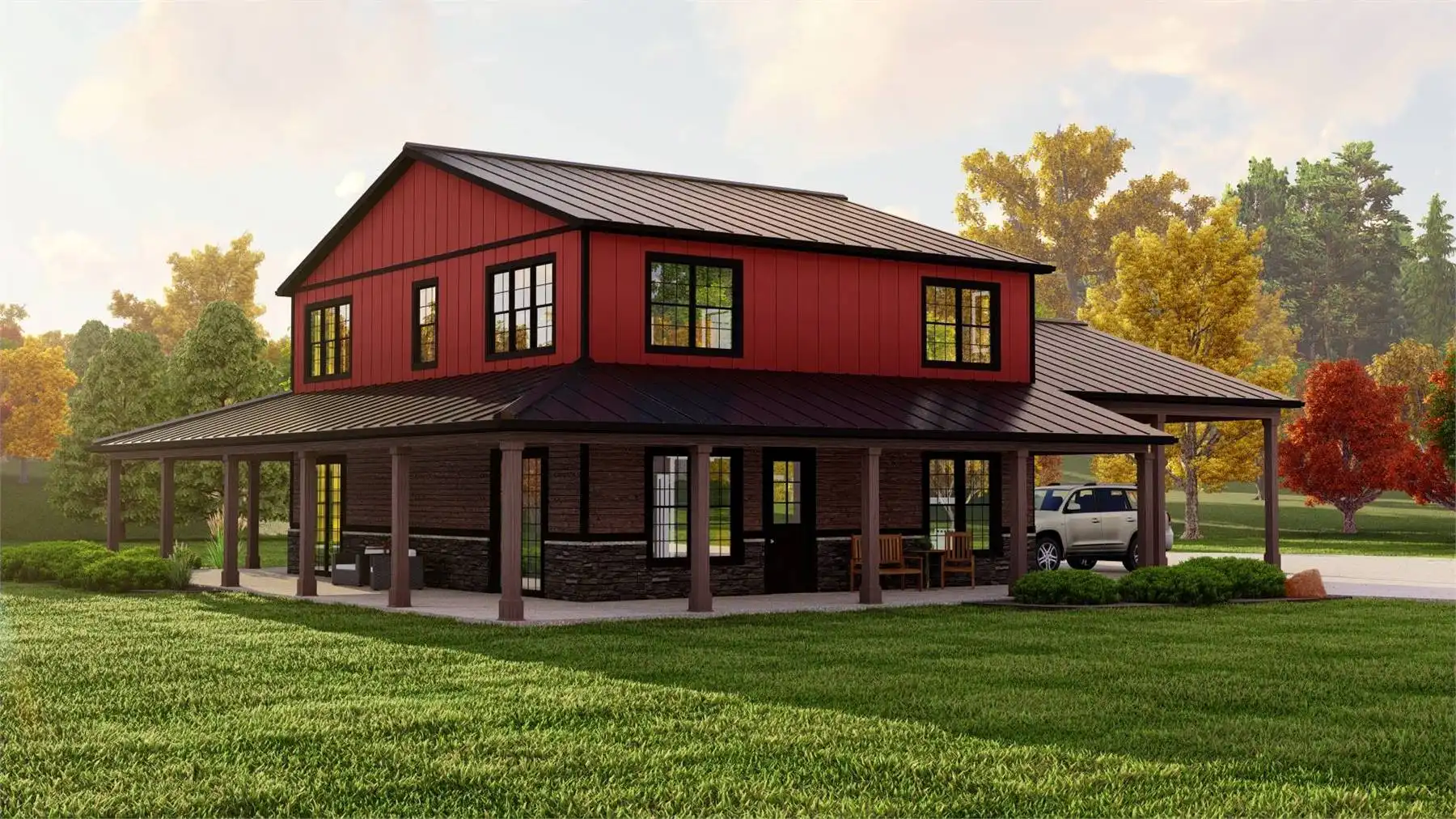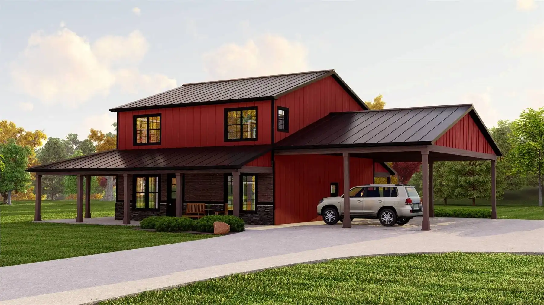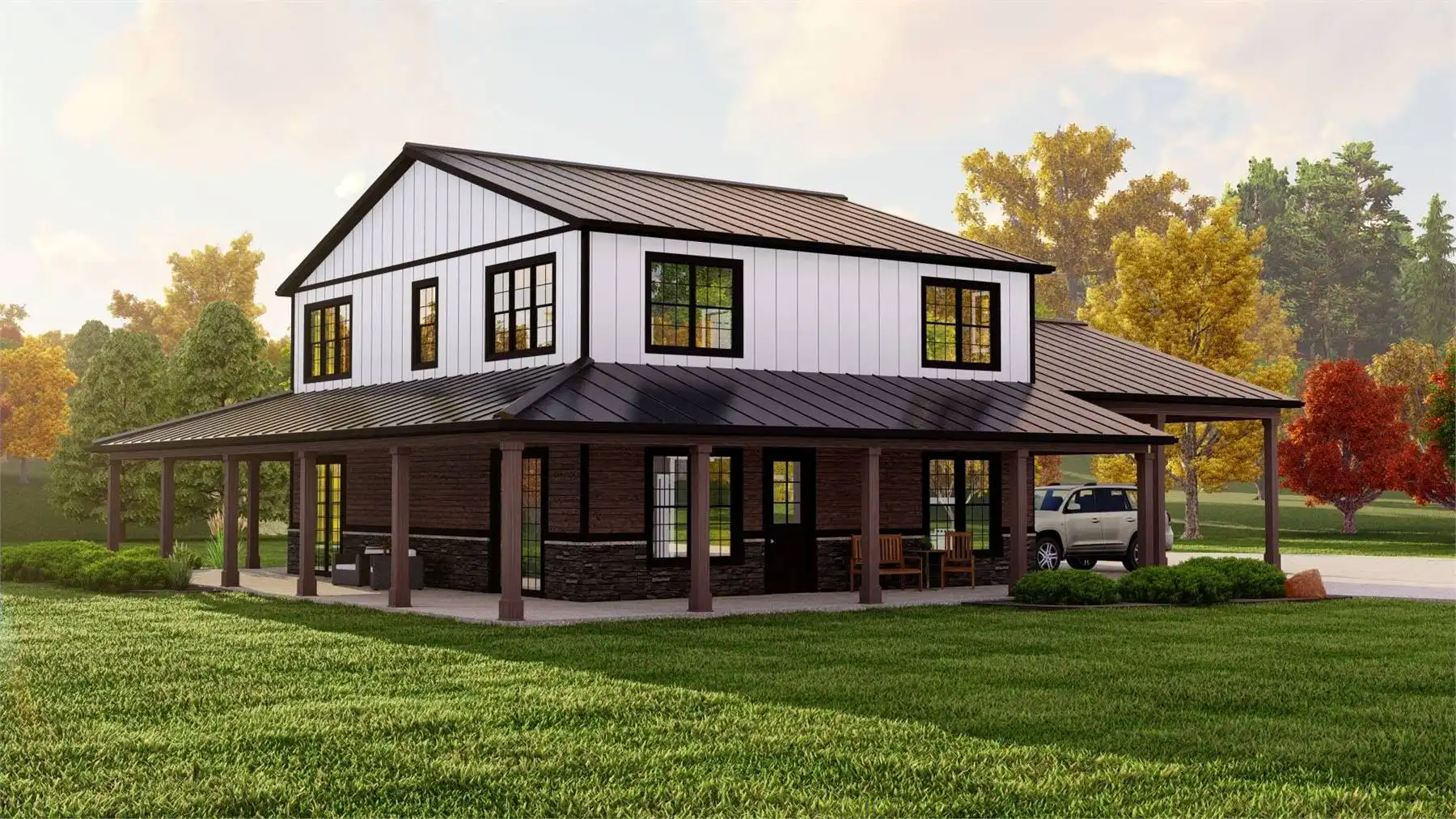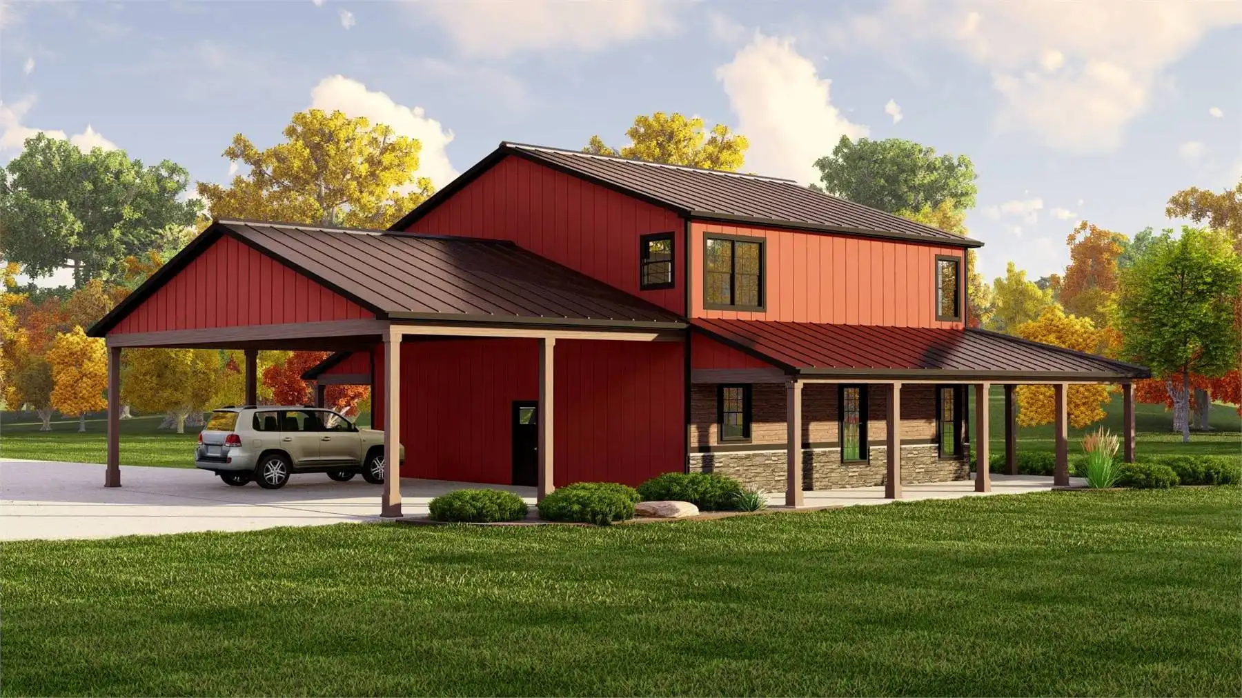 House Plan 10952 is a 3-bedroom, 2,300-square-foot modern farmhouse perfect for families who love open, functional spaces. The main floor features a seamless flow between the great room, kitchen, and dining area, all opening to a covered rear porch ideal for outdoor living. A front-facing home office adds flexibility for working from home or quiet study. Upstairs, all bedrooms are thoughtfully arranged for privacy, with the primary suite offering a private retreat complete with a walk-in closet and spa-like bath. The 2-car carport includes a handy storage room for lawn tools or seasonal décor. With its balanced layout and farmhouse charm, this home fits beautifully on suburban or rural lots.