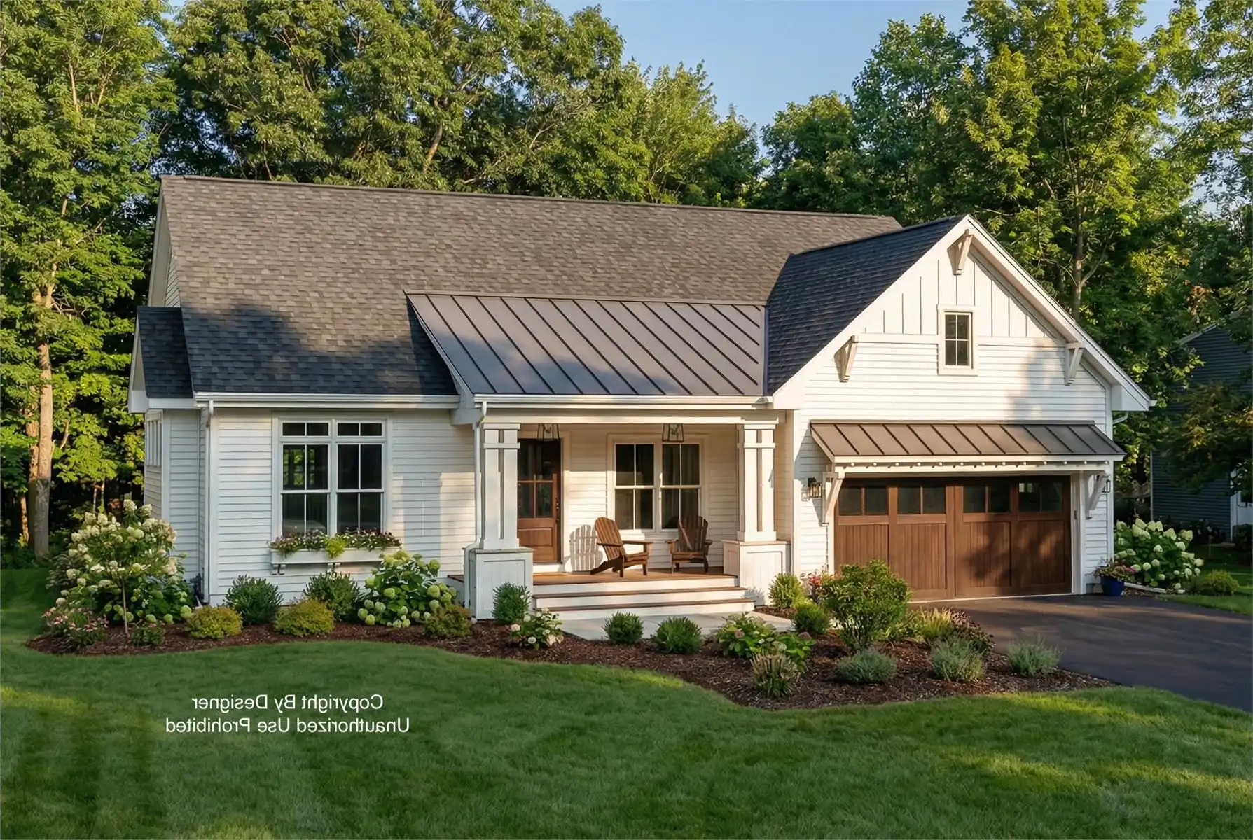 House Plan 11003 is a 1,673 square foot Modern Farmhouse that blends cozy charm with practical design, offering 3 bedrooms, 2 baths, and a 2-car garage. The welcoming front porch opens to a spacious great room with built-ins and a fireplace, seamlessly connected to a dining area and a kitchen with a large island and walk-in pantry. The primary suite is a serene retreat featuring dual vanities, a step-in shower, private toilet, and a large walk-in closet. Additional features include a flexible home office with barn doors, a mudroom with built-ins, and laundry with direct garage access. The optional 1,065 square foot lower level provides space for two more bedrooms, a full bath, and an entertainer’s dream with a game area, rec room, wet bar, and fireplace—plus ample storage space.
