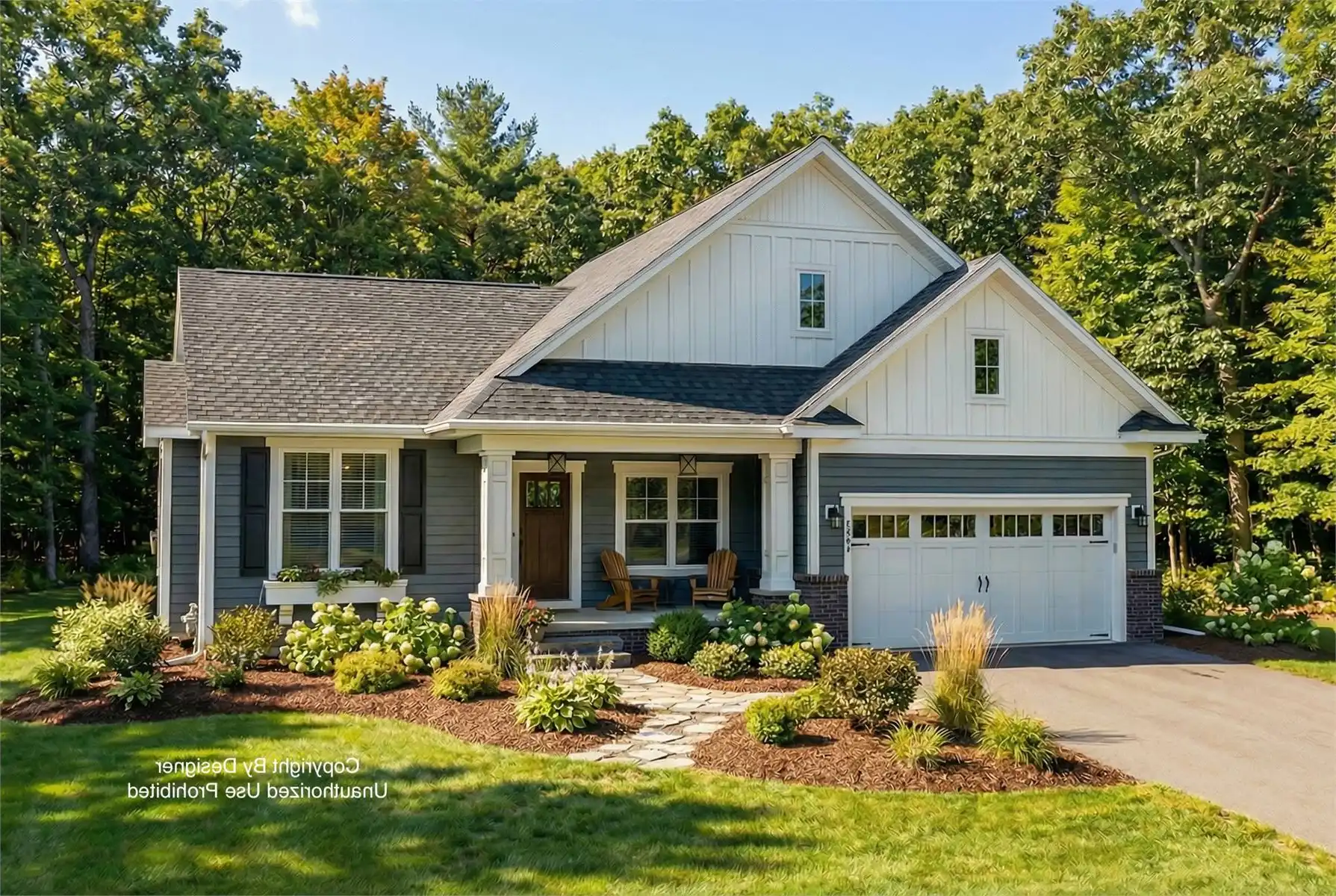 House Plan 11019 delivers 1,673 square feet of charming Traditional design with 3 bedrooms, 2 bathrooms, and a 2-car garage, perfectly balanced for comfort and function. A covered front porch leads into a spacious open layout that features a great room with fireplace and built-ins, a generous dining area, and a kitchen with a large island, walk-in pantry, and seating for four. The primary suite offers a bright, relaxing space with dual vanities, a walk-in shower, private toilet room, and a large walk-in closet. Thoughtful extras like a home office with barn doors, mud/laundry room with garage access, and a future lower level with 1,065 square feet of potential—including two bedrooms, a full bath, rec room, wet bar, and storage—make this home both stylish and highly livable.