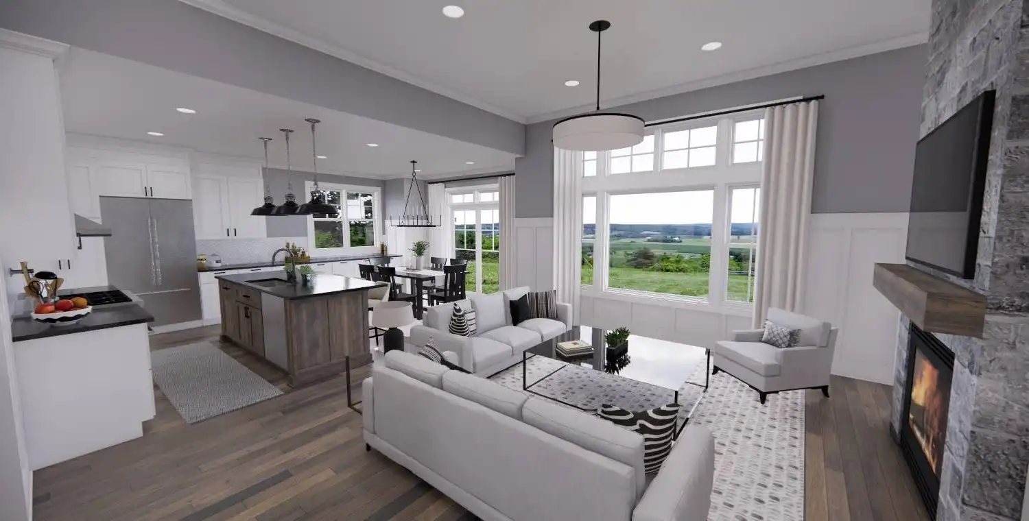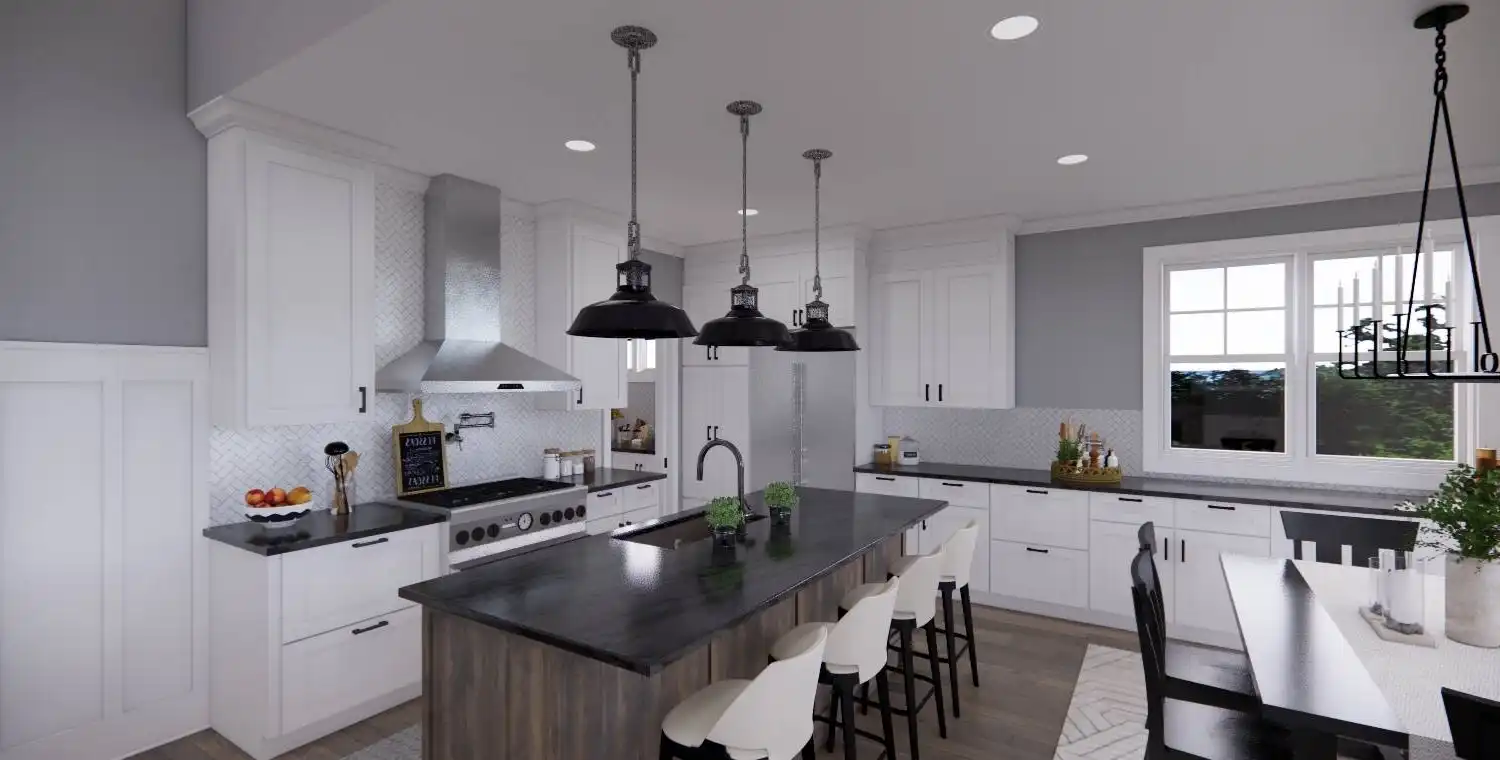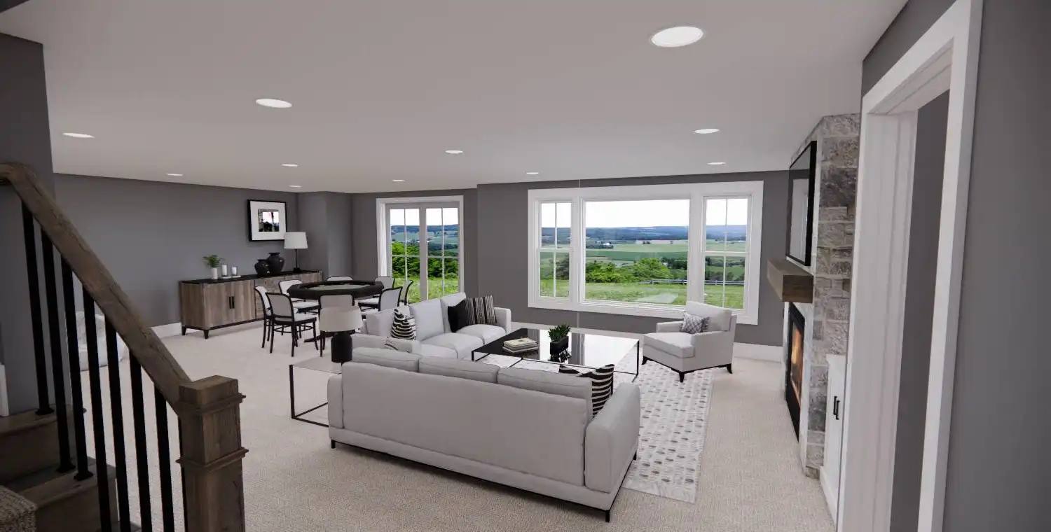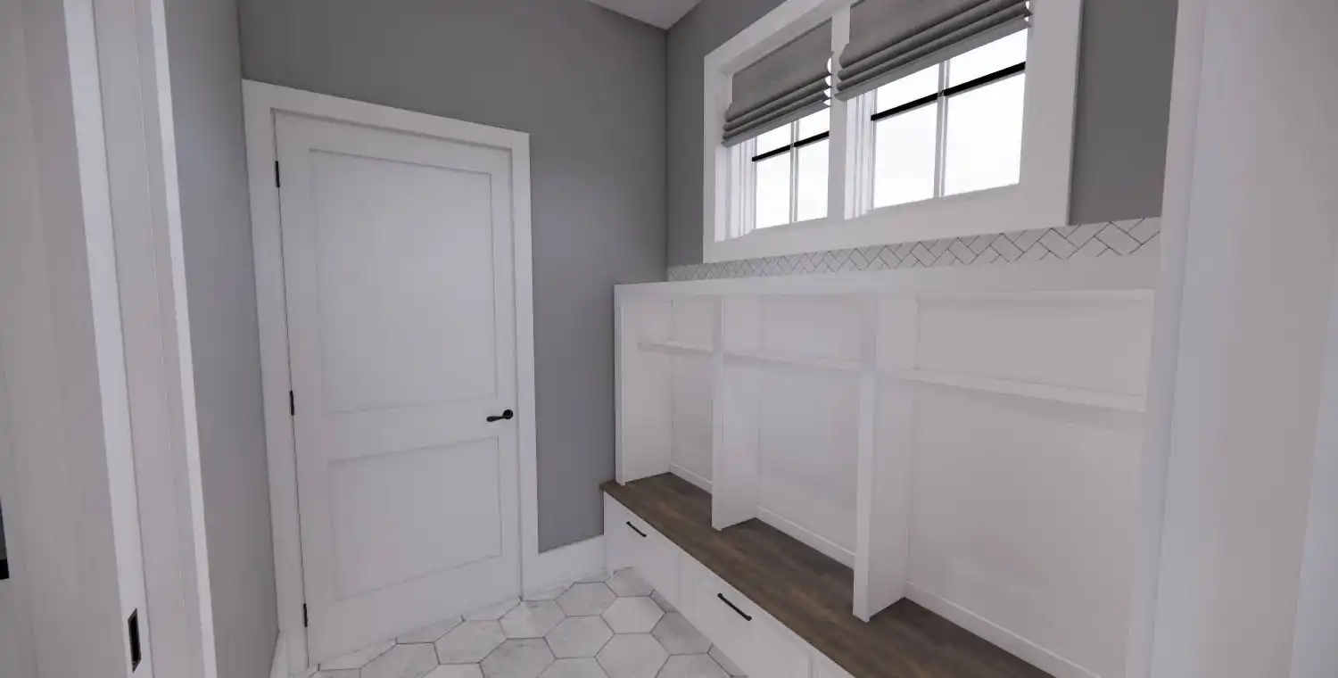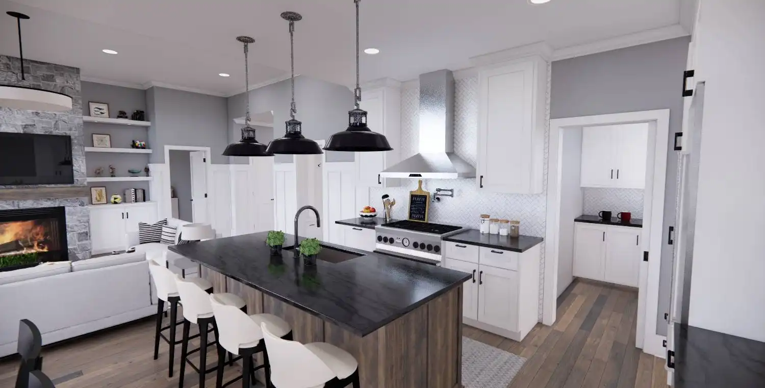 House Plan 11022 delivers 1,762 square feet of Traditional charm, offering 3 bedrooms, 2 bathrooms, and a 2-car garage in a family-friendly design perfect for modest lots. From the covered porch, step into a formal entryway that opens to a bright and airy living space with vaulted ceilings, a picture window, and a fireplace surrounded by built-ins. The kitchen features an oversized island with bar seating, plentiful storage, and sliding door access to the backyard from the adjacent dining area. A barn-doored office, mudroom, and dedicated laundry add convenience, while the private primary suite includes a serene bedroom with reading nook potential, a walk-in closet, and a well-appointed bath with step-in shower and linen storage. Expand your living space with the optional 1,027-square-foot basement featuring two bedrooms, a bath, storage areas, and a family/game room with built-ins and a fireplace—ideal for entertaining or multi-generational living.