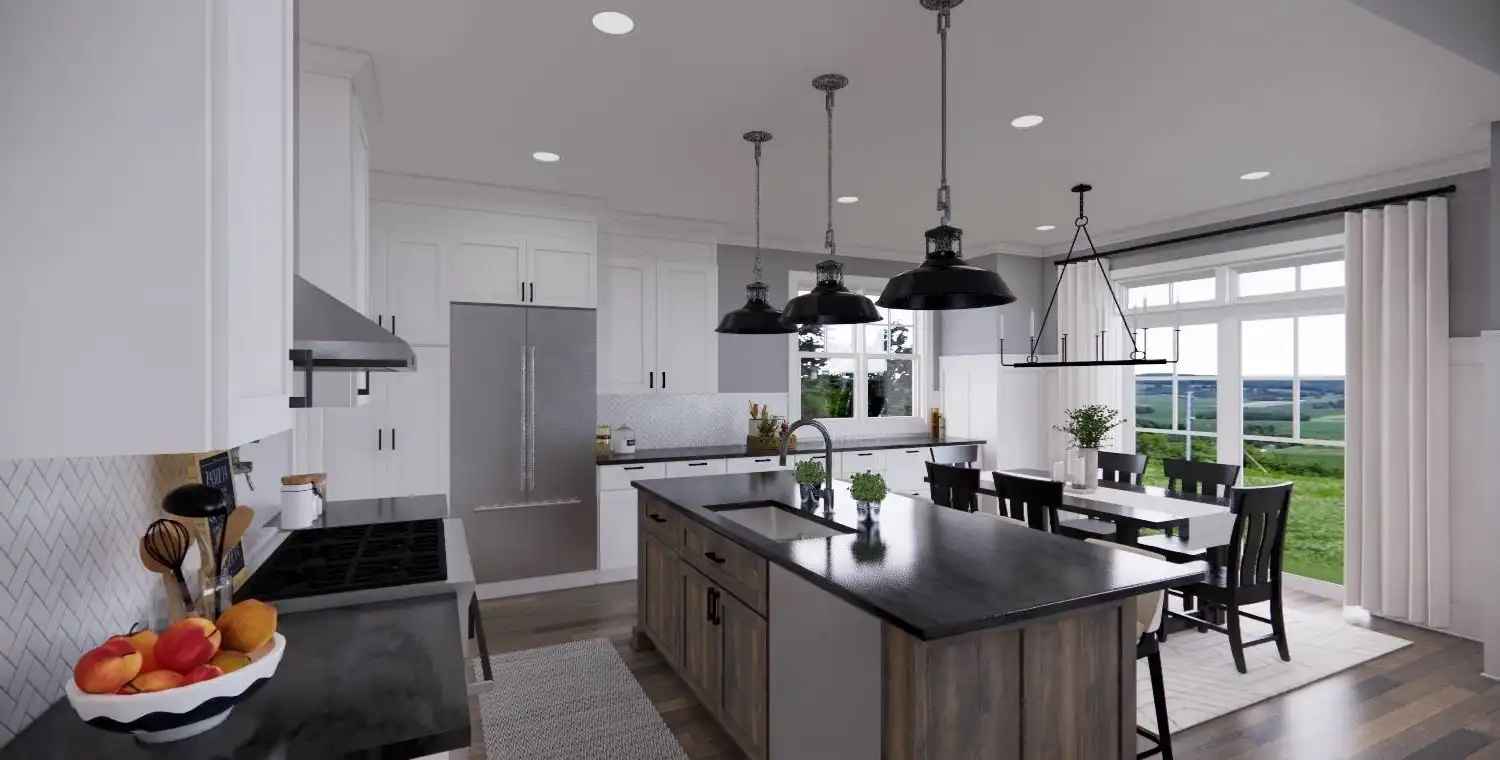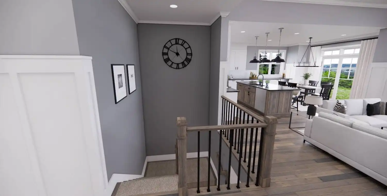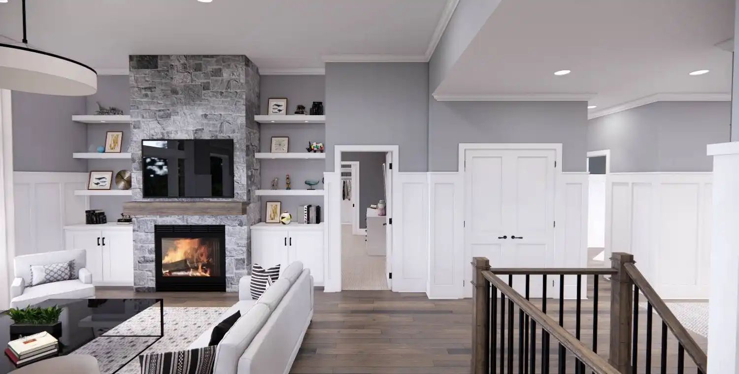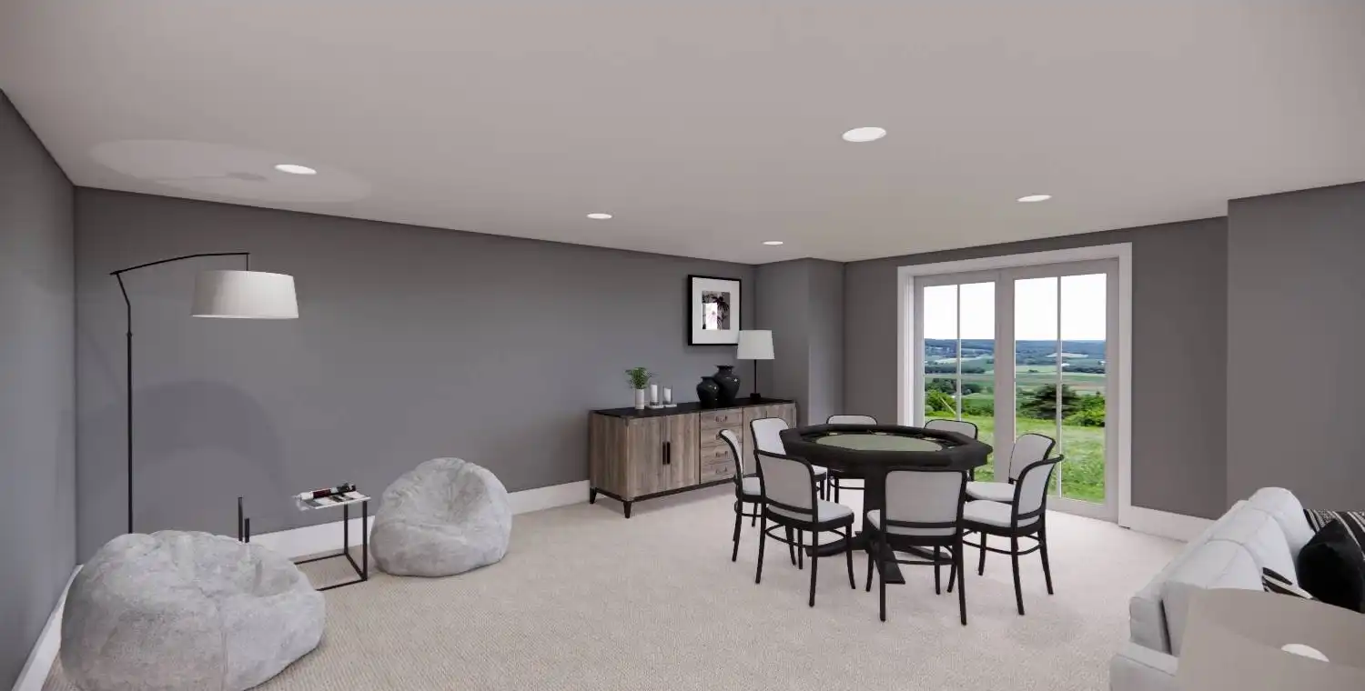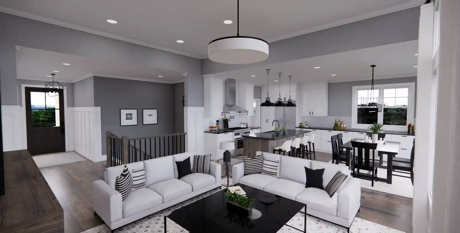 House Plan 11022 delivers 1,762 square feet of Traditional charm, offering 3 bedrooms, 2 bathrooms, and a 2-car garage in a family-friendly design perfect for modest lots. From the covered porch, step into a formal entryway that opens to a bright and airy living space with vaulted ceilings, a picture window, and a fireplace surrounded by built-ins. The kitchen features an oversized island with bar seating, plentiful storage, and sliding door access to the backyard from the adjacent dining area. A barn-doored office, mudroom, and dedicated laundry add convenience, while the private primary suite includes a serene bedroom with reading nook potential, a walk-in closet, and a well-appointed bath with step-in shower and linen storage. Expand your living space with the optional 1,027-square-foot basement featuring two bedrooms, a bath, storage areas, and a family/game room with built-ins and a fireplace—ideal for entertaining or multi-generational living.