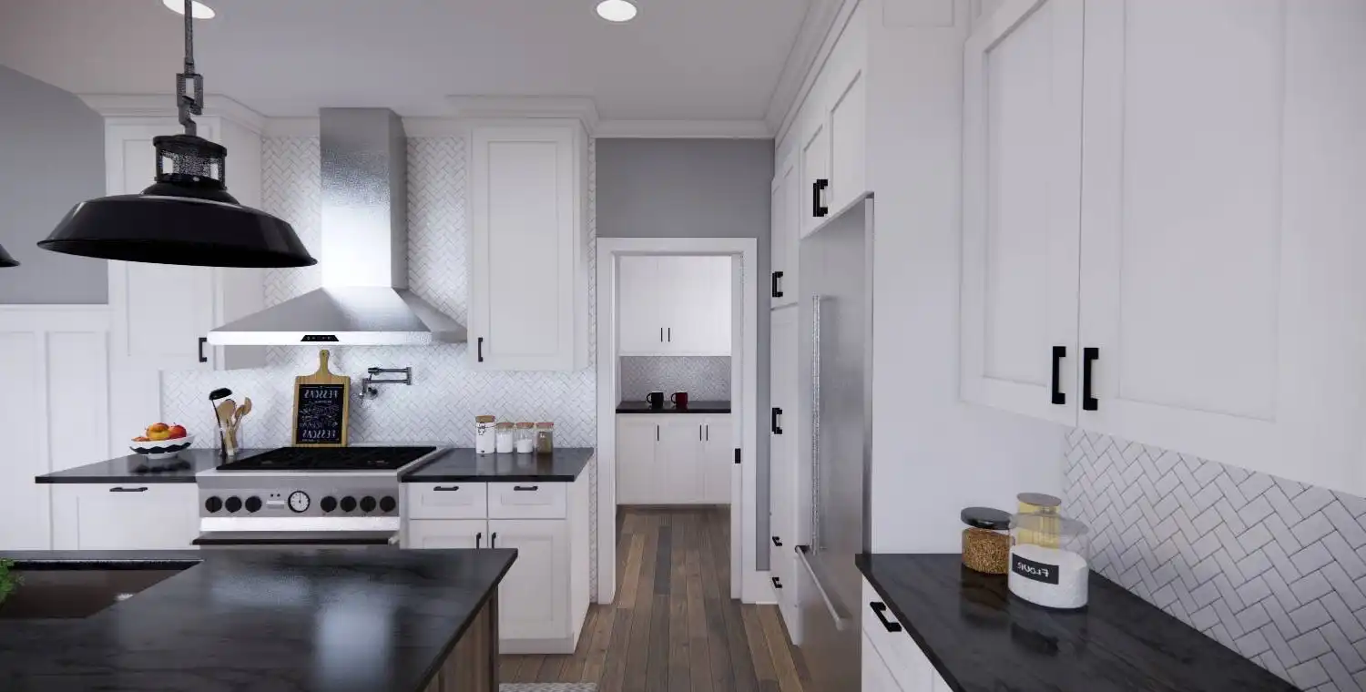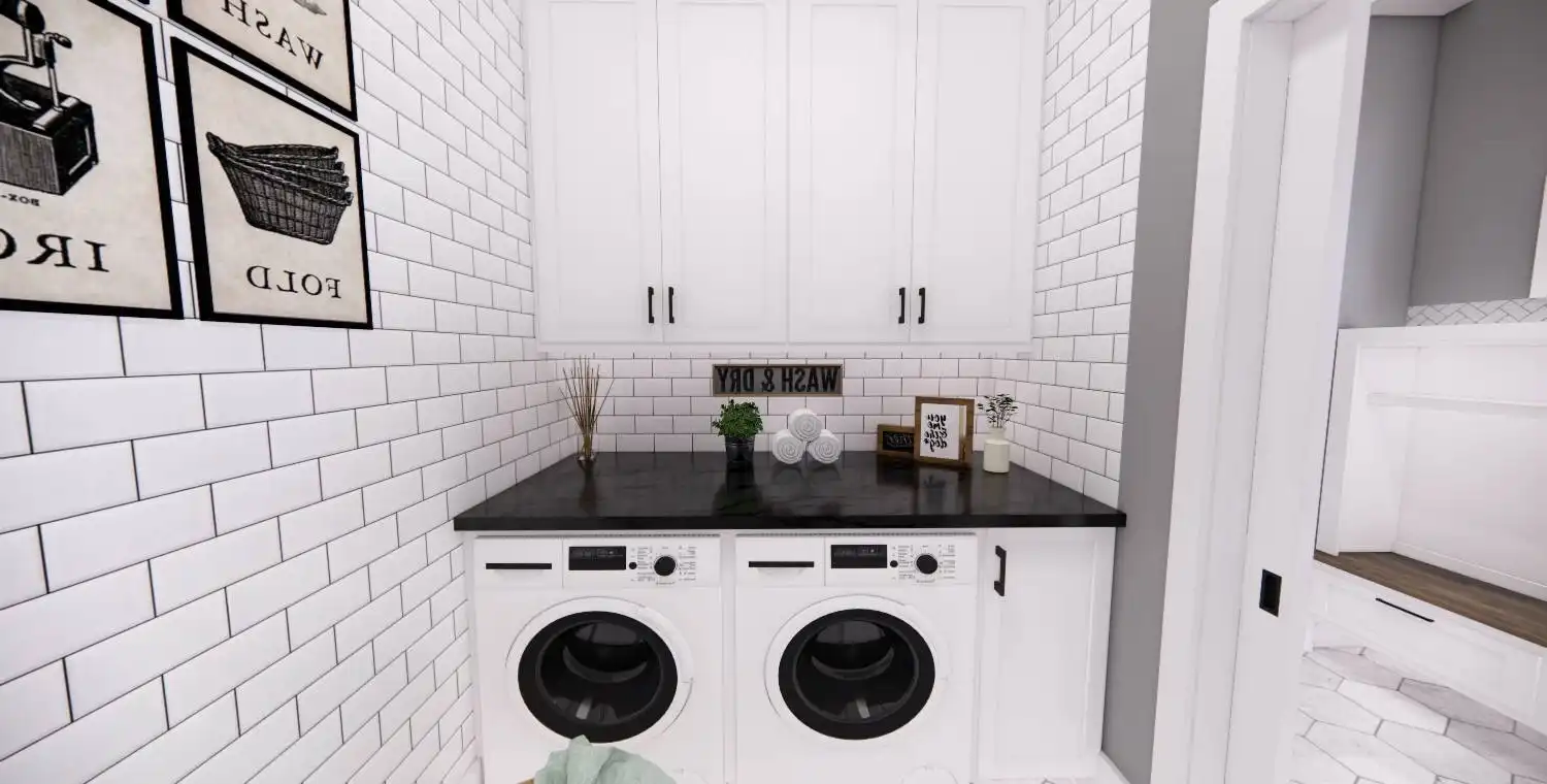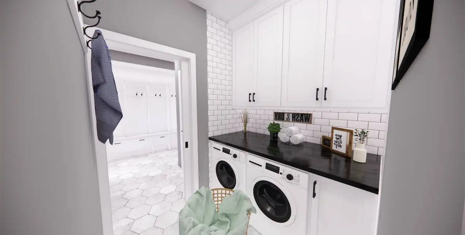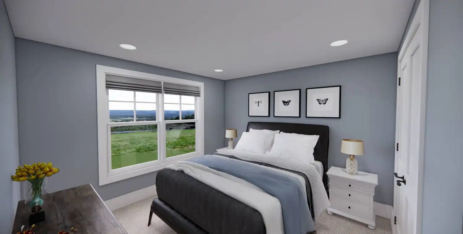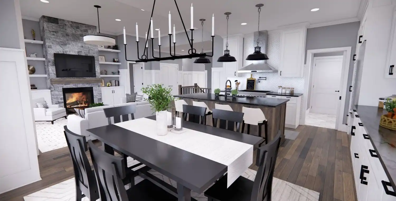 House Plan 11022 delivers 1,762 square feet of Traditional charm, offering 3 bedrooms, 2 bathrooms, and a 2-car garage in a family-friendly design perfect for modest lots. From the covered porch, step into a formal entryway that opens to a bright and airy living space with vaulted ceilings, a picture window, and a fireplace surrounded by built-ins. The kitchen features an oversized island with bar seating, plentiful storage, and sliding door access to the backyard from the adjacent dining area. A barn-doored office, mudroom, and dedicated laundry add convenience, while the private primary suite includes a serene bedroom with reading nook potential, a walk-in closet, and a well-appointed bath with step-in shower and linen storage. Expand your living space with the optional 1,027-square-foot basement featuring two bedrooms, a bath, storage areas, and a family/game room with built-ins and a fireplace—ideal for entertaining or multi-generational living.