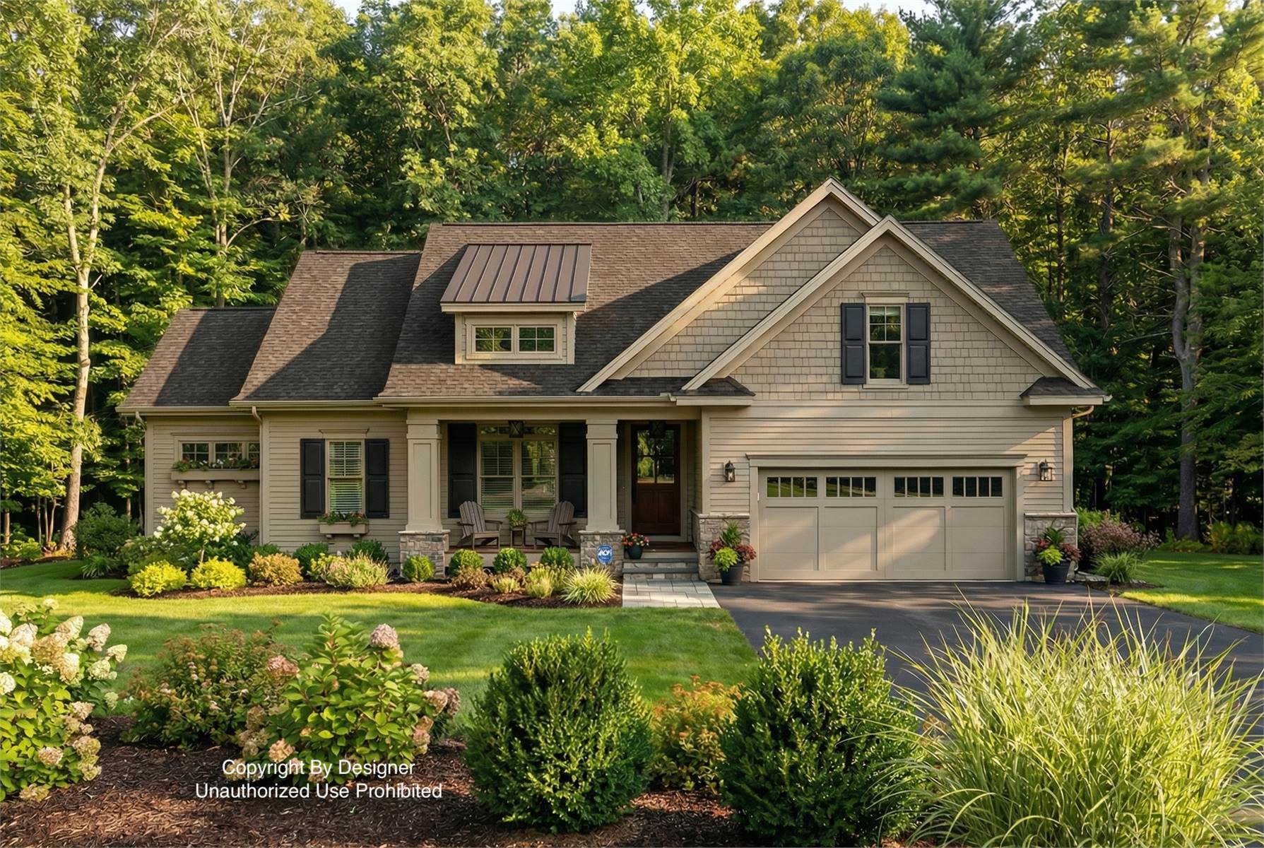 House Plan 11027 blends classic curb appeal with modern comfort, offering 2,082 square feet of thoughtfully designed living space. A charming pillared front porch leads into an airy open-concept layout with an 11-foot ceiling great room featuring a cozy fireplace, built-ins, and a stylish wine bar. The kitchen impresses with a large island, walk-in pantry, ample cabinetry, and a seamless connection to the dining area with sliding door access to the rear patio. The private primary suite offers a relaxing retreat complete with a sitting area, built-in coffee bar, spa-inspired bath with dual vanities, large step-in shower, private toilet, and spacious walk-in closet. Additional highlights include an office with sliding barn doors, a mudroom with walk-in closet, laundry area, and an attached 2-car garage. The optional 1,242-square-foot lower level adds even more versatility with a large family room, game area with fireplace, two extra bedrooms, a full bath, and ample storage. House Plan 11027 is perfect for families who appreciate timeless style paired with modern conveniences.