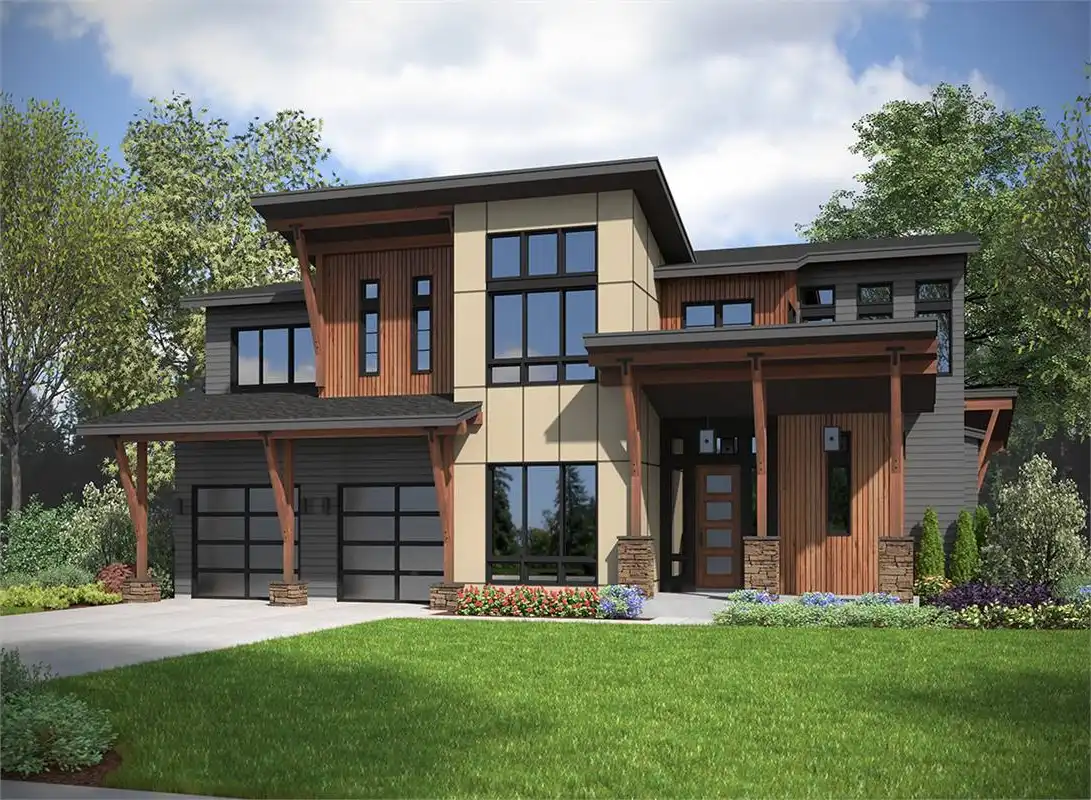 A marvelous modern masterpiece is the only way to describe this special home. With its steep roofline, tall columns and picturesque statement windows like no other, the 4,070 square foot plan is one that will surely stick out to everyone who sees it. Inside awaits a 2-story floor plan with 5 bedrooms and 4.5 bathrooms. There is also a ton of entertainment potential too. From the totally open great room and kitchen to the dining area and dual covered porches, if you can dream it chances are this home can do it. Also on the main level is a home office and a private guest suite, along with a garage and plenty of storage. Move upstairs to reveal a huge bonus room and the auxiliary bedrooms along with the special master suite. This room is totally focused on you, from the spa bath to the massive walk-in closet, every bit of space is there to make your life a bit more relaxing.