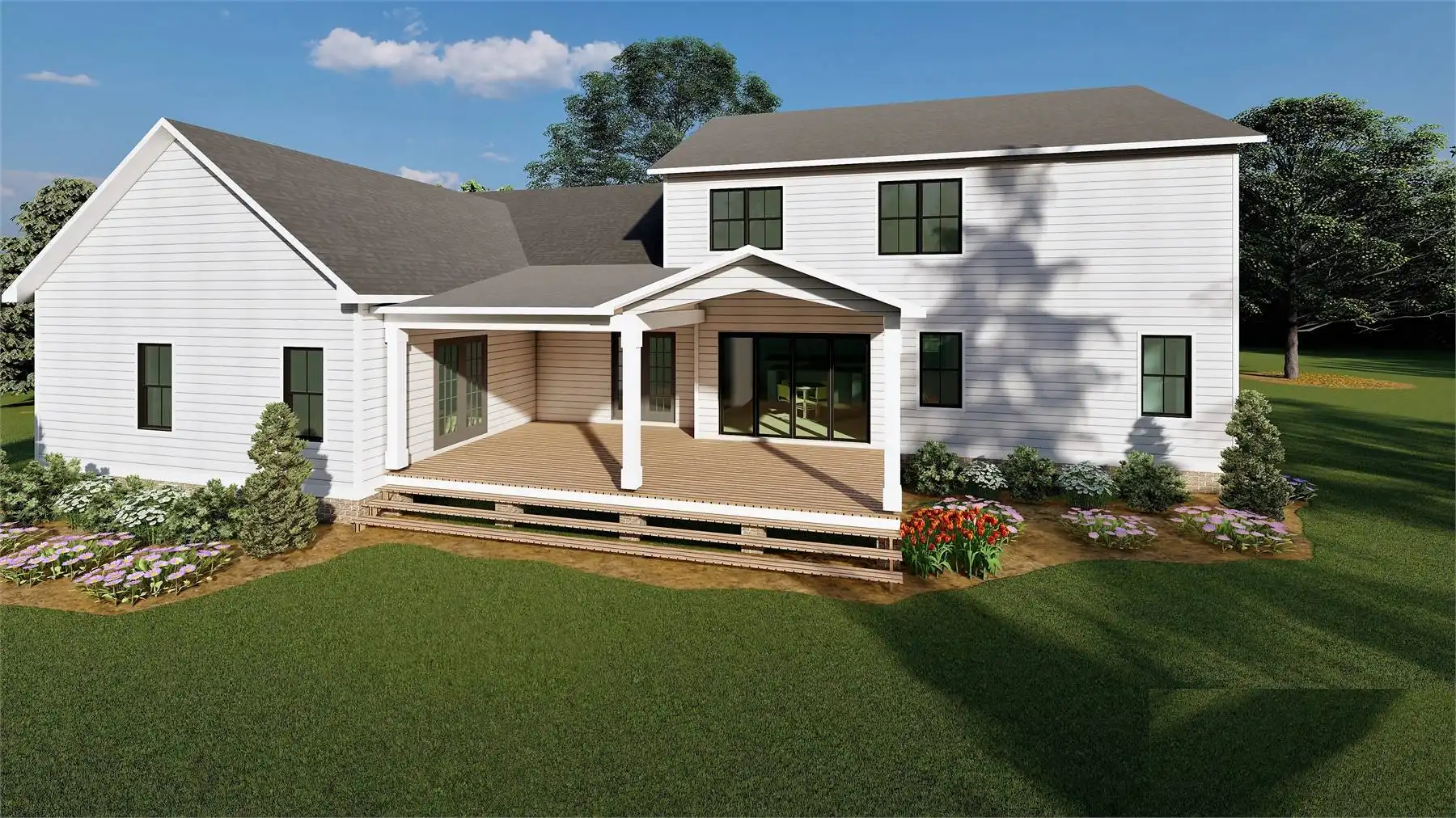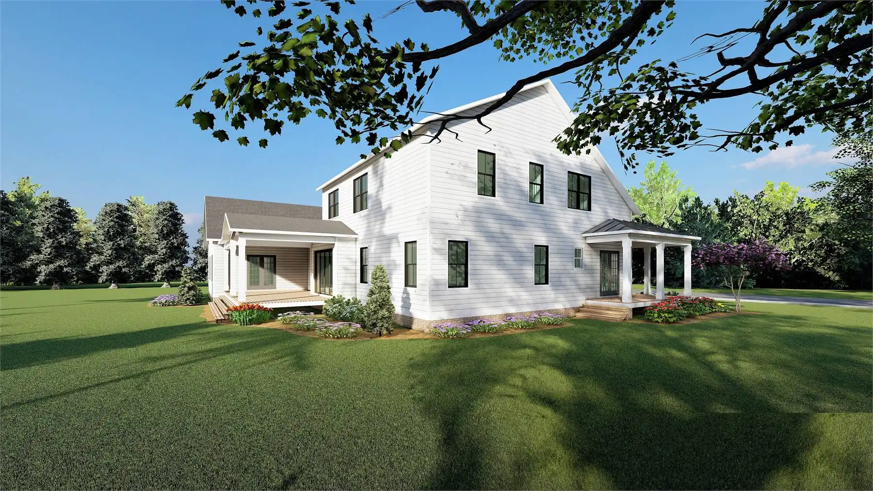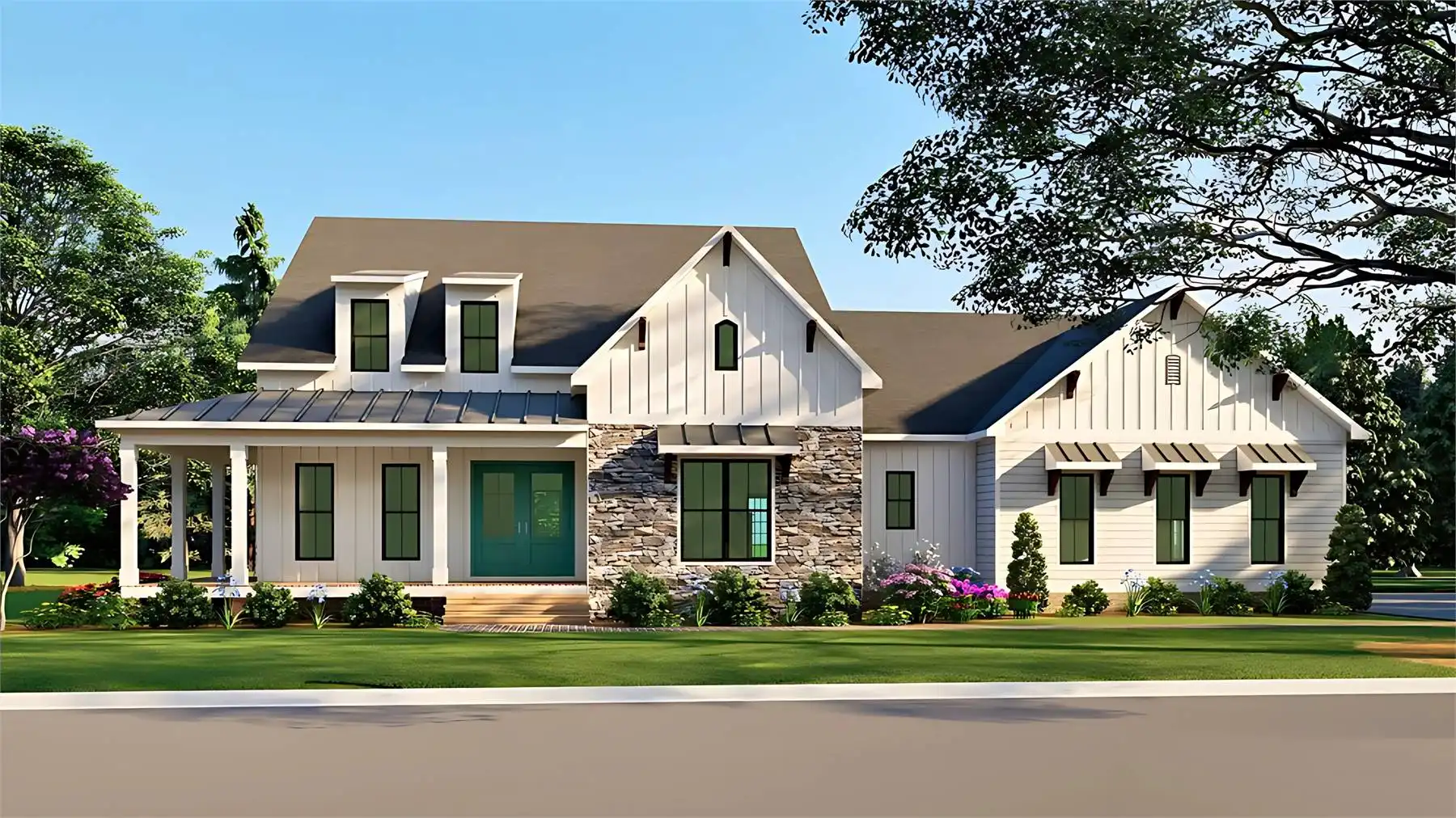 If you need a large and luxurious farmhouse, check out House Plan 11040! This spacious home packs four bedrooms and two-and-a-half baths across 3,732 square feet. The main level offers an open-concept great room in back, an office and formal dining room in front, and a luxe primary suite off to the side, behind the two-car garage. Make sure not to miss the bar by the dining room or the walk-through laundry room that connects to the mudroom! Upstairs, three bedrooms and a divided four-piece hall bath are located off a loft. You could make this a playroom, a game room, or whatever else you need!