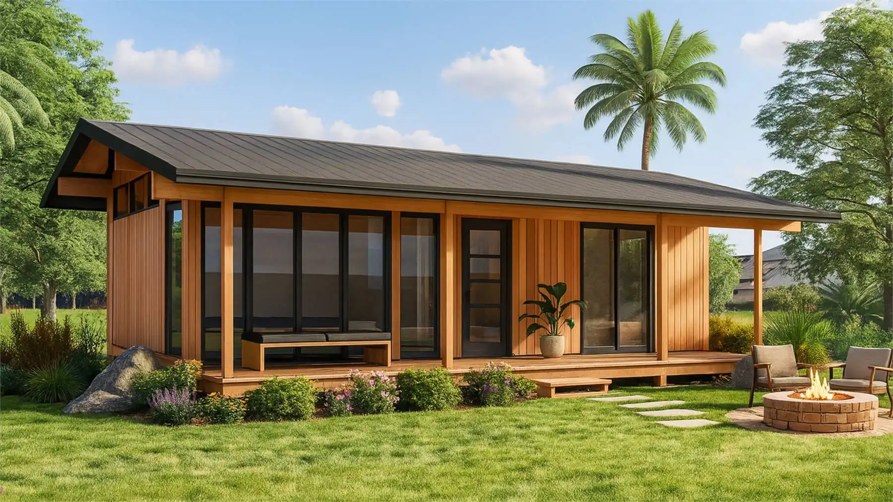 House Plan 11048 is a lovely little vacation home with tropical vibes! It offers 507 square feet with one bedroom and one bathroom. The rectangular footprint and simple gable roof keep costs down while a vaulted and beamed ceiling that spans the whole interior adds drama. The living space has a one-wall kitchen and the bedroom enjoys a three-piece bath and easy access to the laundry closet. Don't overlook that covered porch!