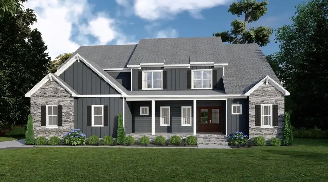 Perfect for large families in need of a large house, House Plan 11057 offers an ample 4,236 square feet with five bedrooms and four-and-a-half baths. The main level includes open-concept living with an island kitchen, an office off the foyer, a private guest bedroom suite, a mudroom that connects to the three-car garage, and outdoor living with a screened porch and open deck. Upstairs, family bedrooms and the laundry room are spread around a central loft area. The primary suite boasts a luxe five-piece bath and a walk-in closet. There's also another bedroom suite and two bedrooms that share a Jack-and-Jill bath. If you need more than all this, the basement foundation will allow you to expand!