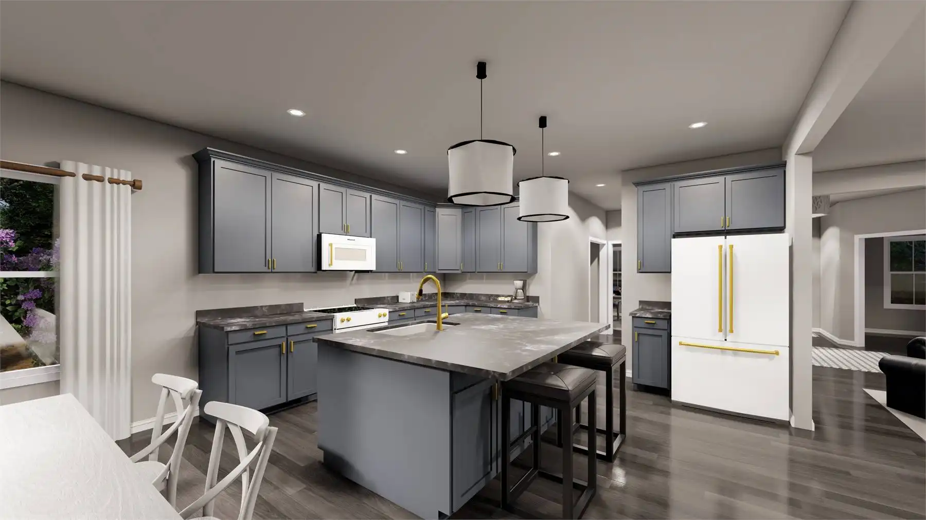 Like a traditional home inside and out? Check out House Plan 11058! This two-story design offers 2,695 square feet with four bedrooms and two-and-a-half bathrooms in a classic layout. The main floor places the formal dining and den across the foyer while the family room, island kitchen, and breakfast nook are in back. The garage on the side connects through the mudroom to the butler's pantry between the dining room and kitchen. Upstairs, all the bedrooms are grouped together along with the laundry room. The primary suite is luxurious with a five-piece bath while the other bedrooms share a conveniently divided hall bath!