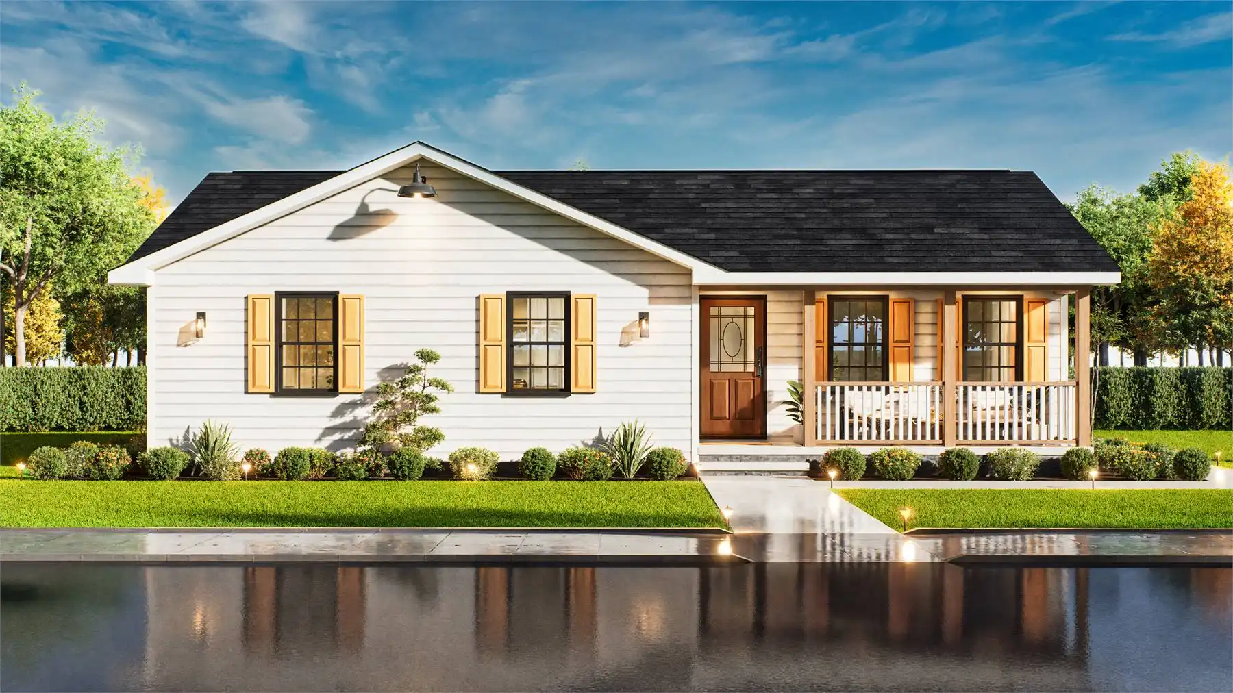 This 1,155 square foot single-story ranch offers 3 bedrooms and 2 bathrooms in a simple, efficient layout that balances comfort and convenience. The open family room welcomes you into the heart of the home, with easy access to the kitchen and a walk-in pantry for storage. The primary suite includes a private bathroom and walk-in closet, while two additional bedrooms share a full bath, making this design versatile for families, guests, or home office use. Classic exterior elements like a covered front porch and side stoop provide charm and practicality, while the compact footprint of 47'-4" wide by 30' deep makes it well-suited for narrow lots. Perfect as a starter home or for those seeking to downsize, this design delivers everyday comfort in a timeless package.